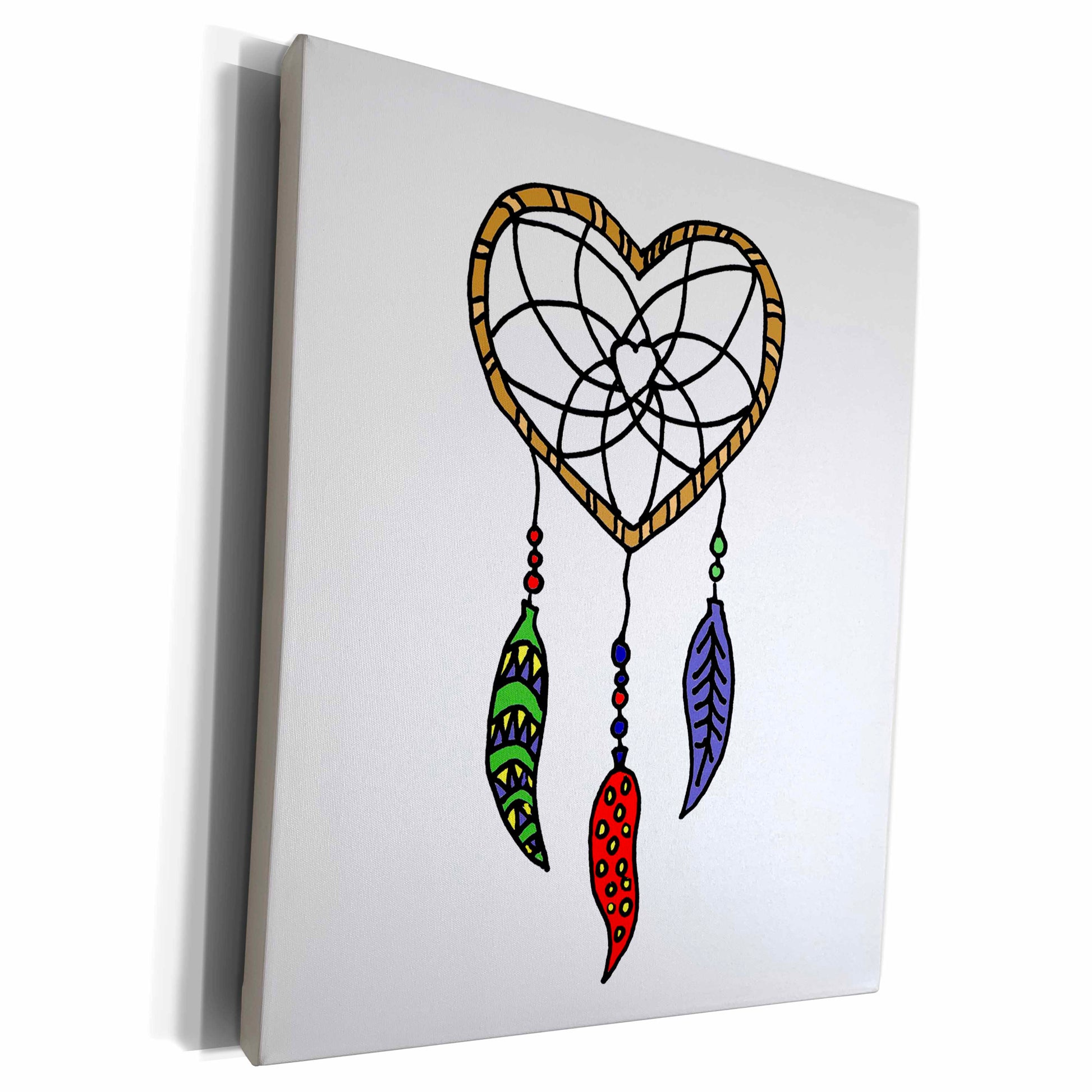 Fun Heart Shaped Dream Catcher with Beads and Feathers Museum Grade Canvas Wrap is taking the printmaking world by storm with visually stunning color reproduction and long lasting archival properties. Known industry-wide for its consistency, premium canvas wrap exhibits exceptional quality utilizing ultra-high definition printing. Professionally stretched over a sturdy 1.2" wooden frame this canvas wrap will last a lifetime. Canvas Wraps offer a beautiful addition to your wall art collection. Unlike traditional photographs and prints our high quality canvas material has a UVA-protected coating that prevents fading. 3dRose canvas wrap is well suited as a personal home decor, that can be used in your living room, bedroom, kitchen, bathroom, or office. Great as a personalized memories gift at a wedding, anniversary, birthday, or any other event worth remembering which will be cherished for a lifetime. 3dRose canvas wrap is proudly manufactured in USA offering unmatched quality.