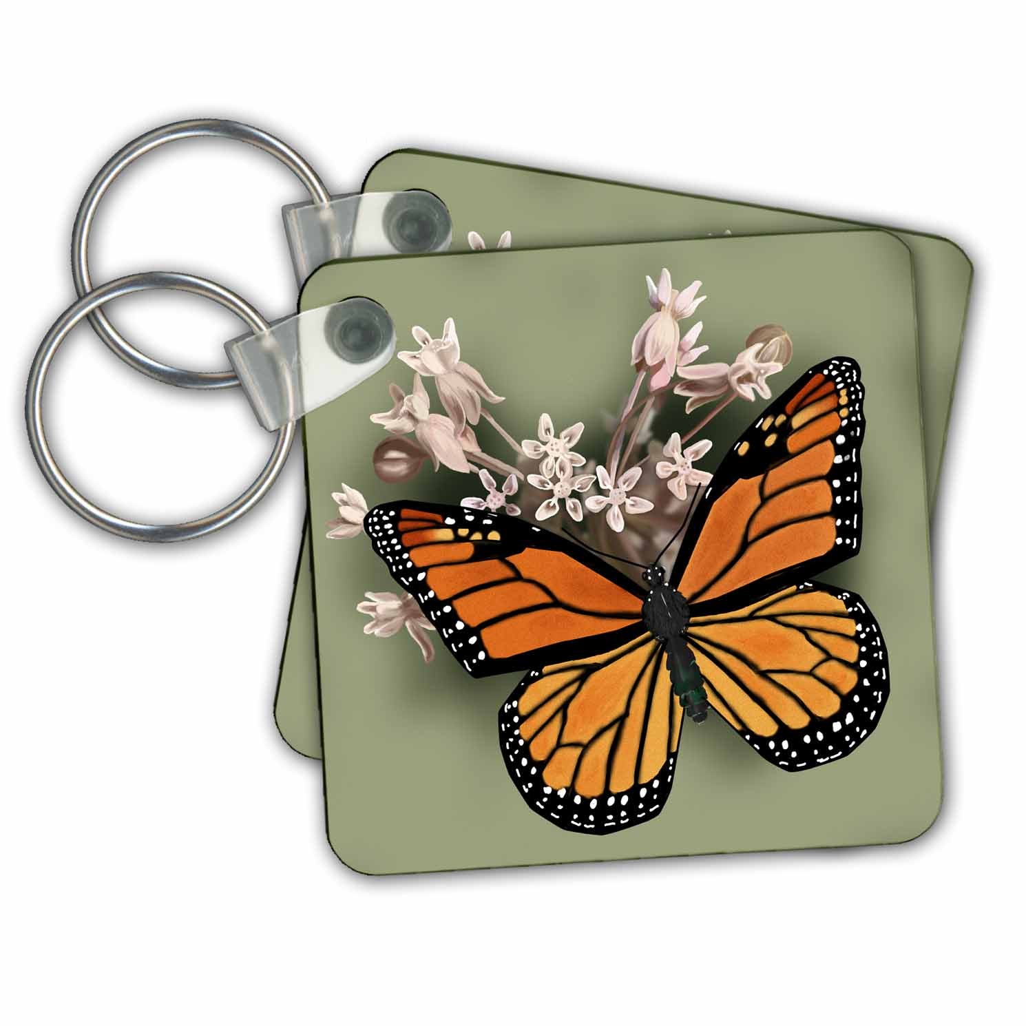 3dRose Key Chains Monarch Butterfly and Pink Milkweed (kc-212839-1)