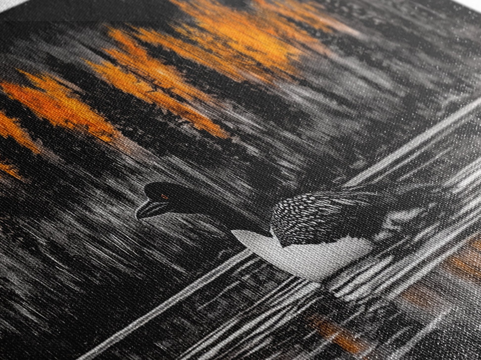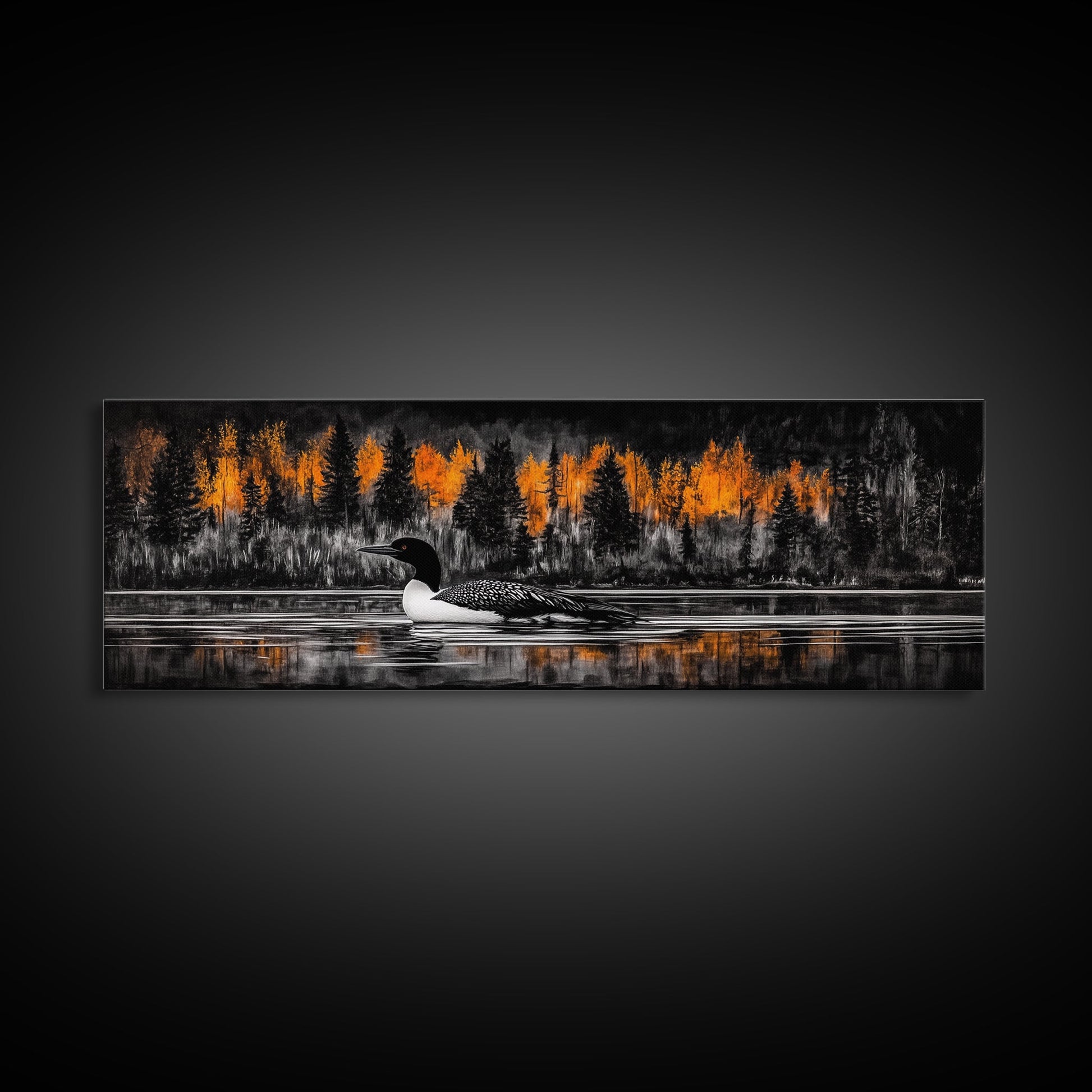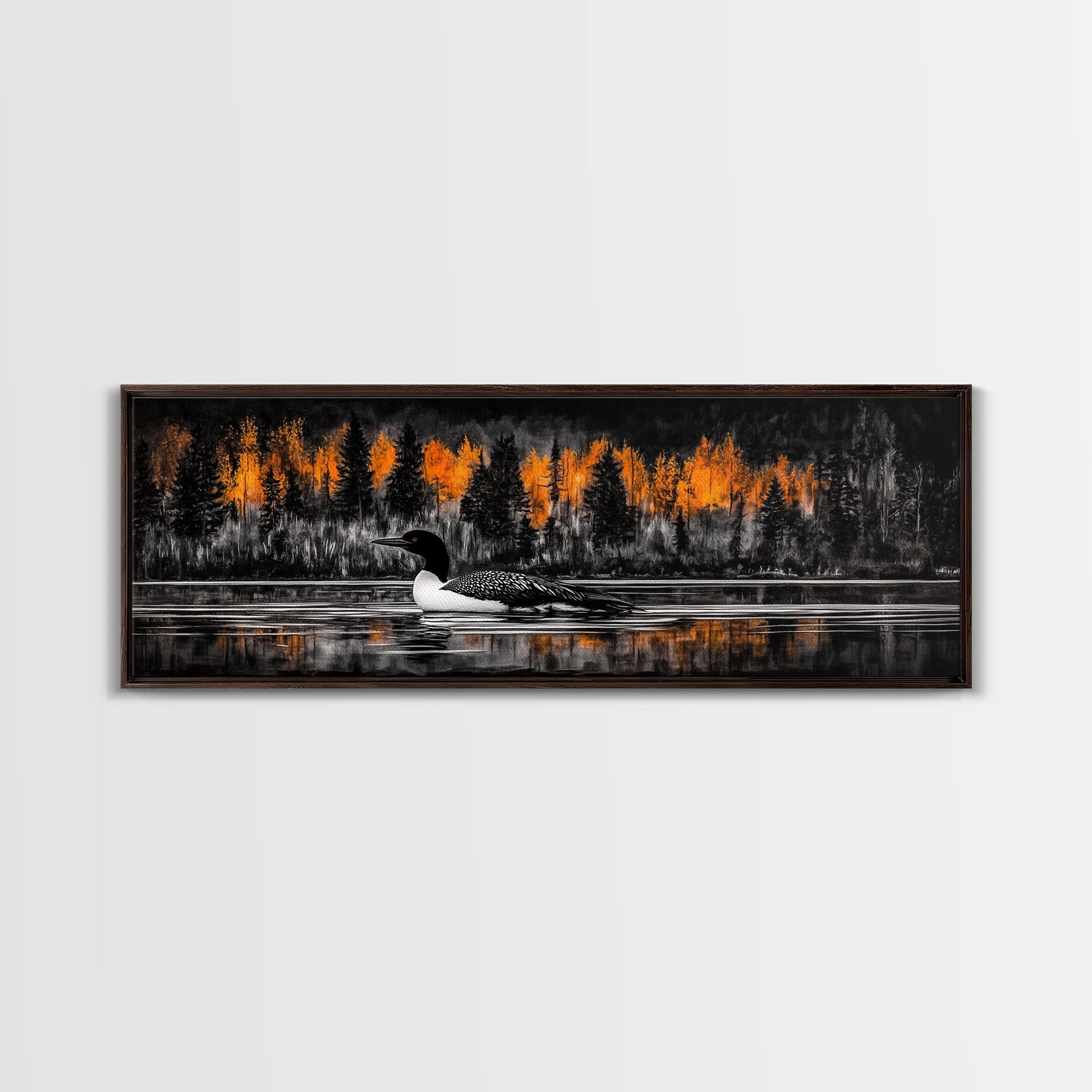 Autumn Lake, Wildlife Wall Art, Loon Bird Painting, Fall Nature Scene, Framed Canvas Print, Cabin Wall Art, Rustic Decor, Warm Fall Colors