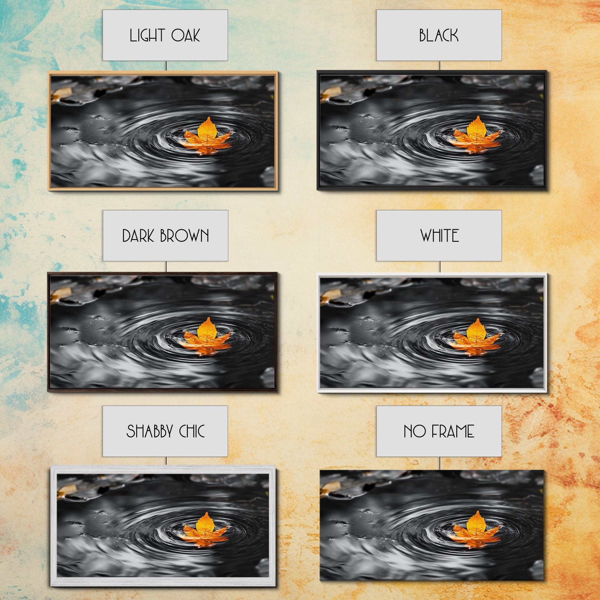 Autumn Leaf Ripple, Nature Zen Moment, Framed Canvas Print, Fall Wall Decor, Minimalist Art, Bathroom or Spa Wall Art, Peaceful Vibe