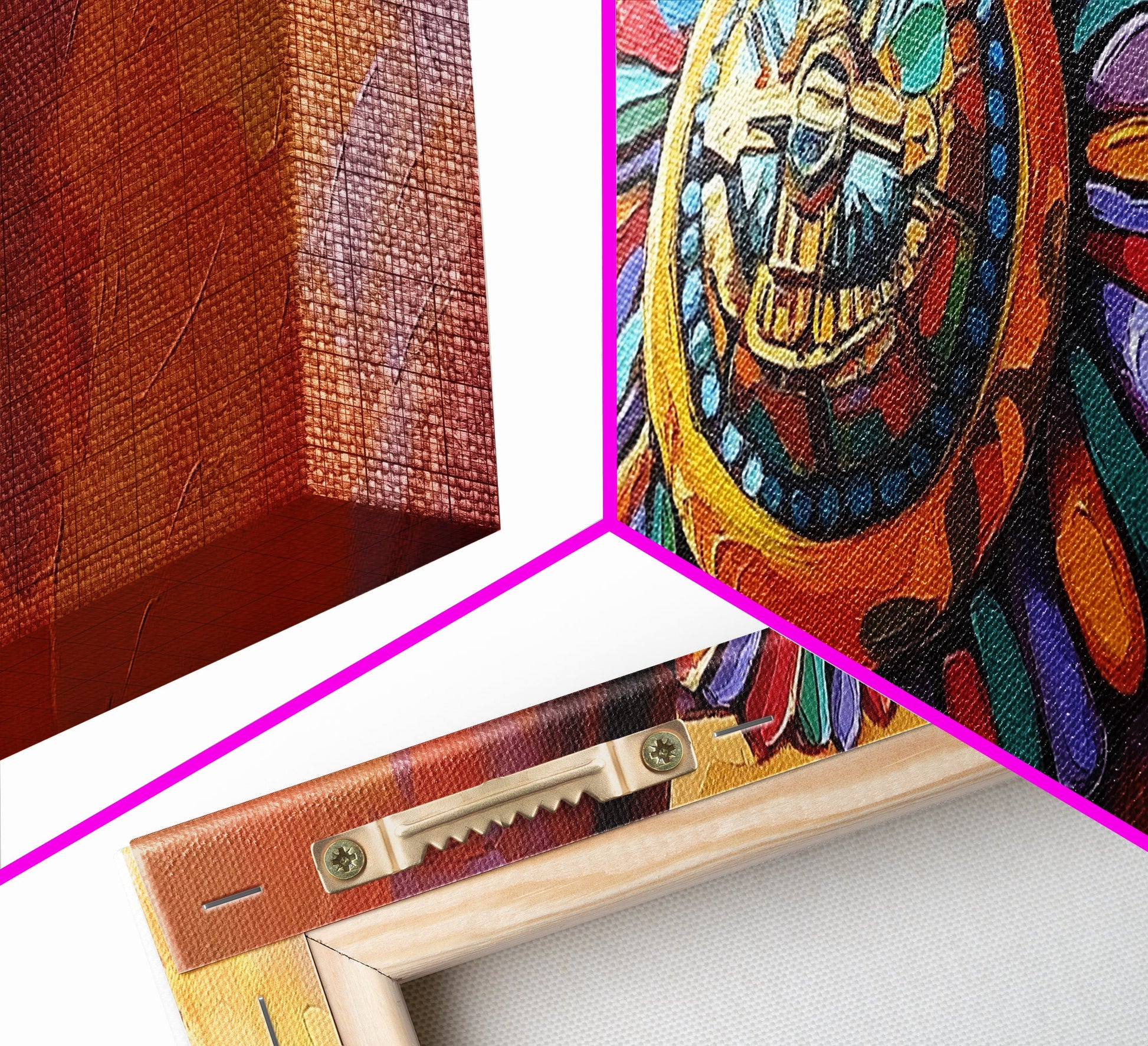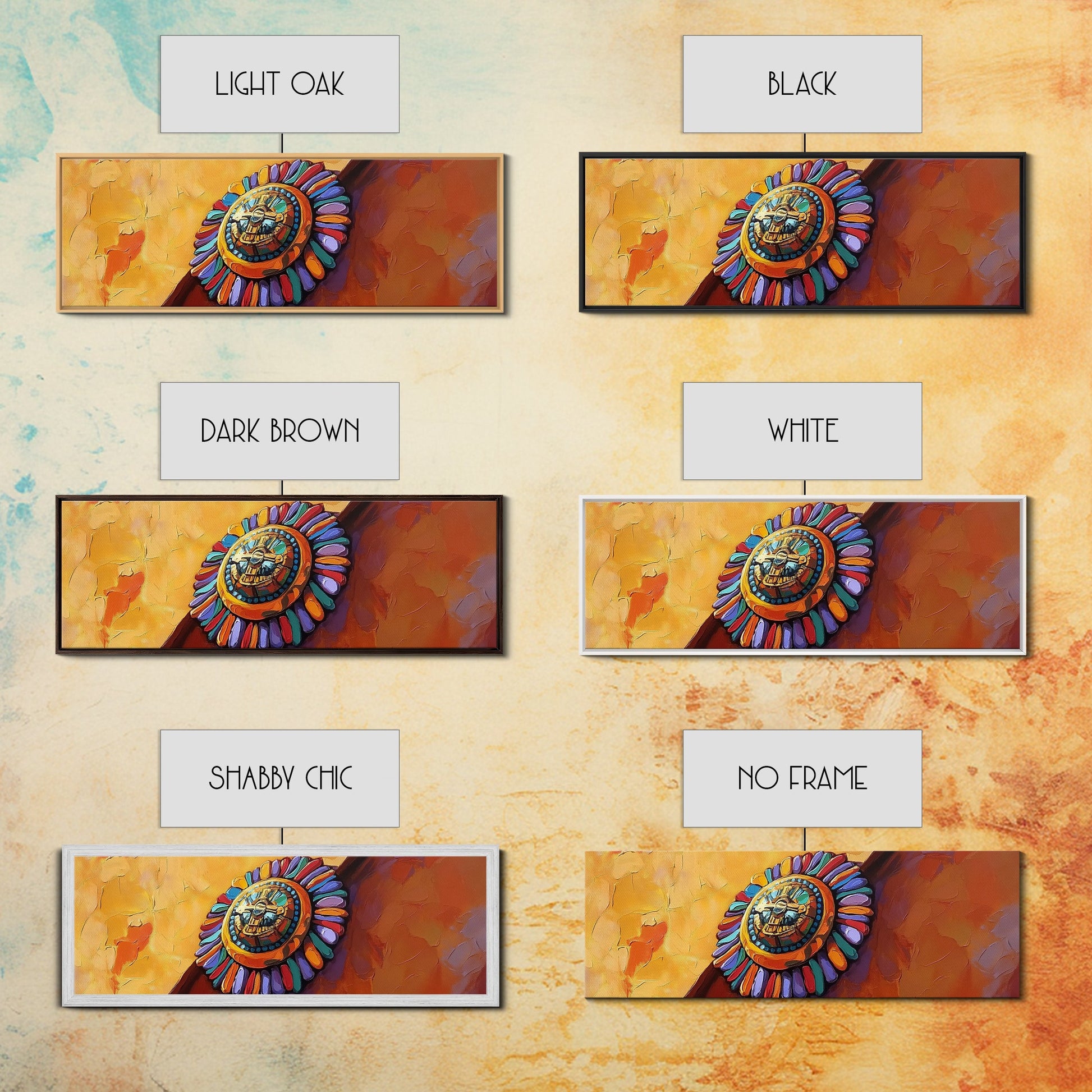 Aztec Sun Symbol, Bold Tribal Accent, Southwest Vibe Art, Native Motif Wall, Framed Canvas Print, Entryway Ethnic Boho Decor