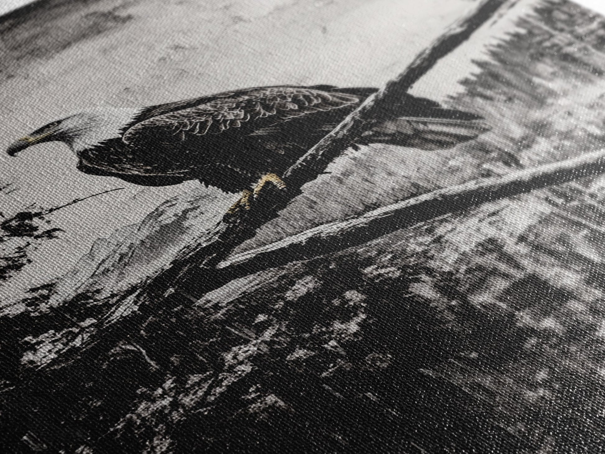 Bald Eagle, majestic bird, black and white, rustic decor, wildlife painting, nature art, framed canvas print, farmhouse wall art