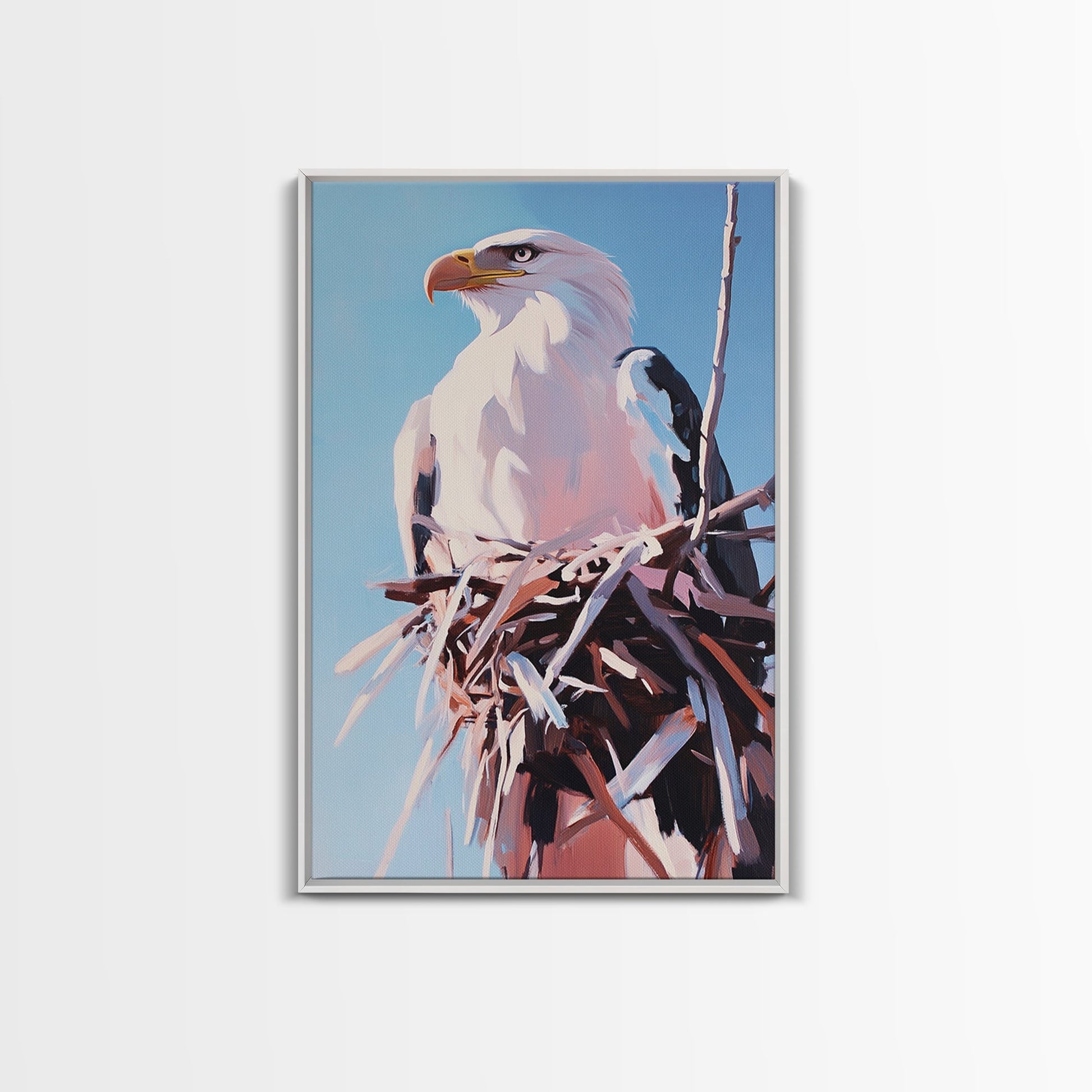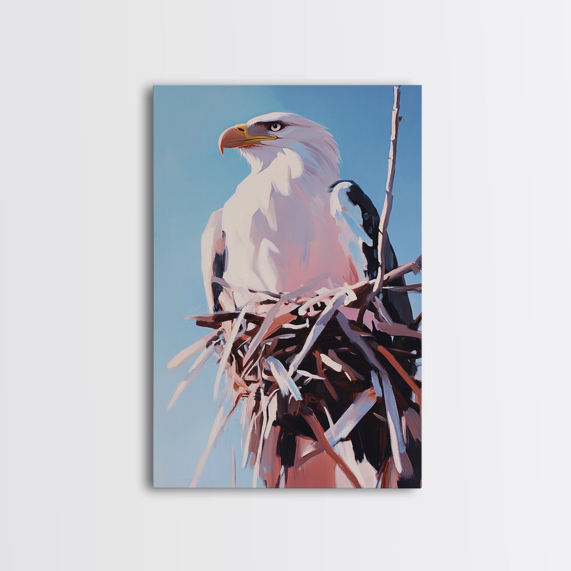 Bald Eagle Nest, bird art, wildlife painting, nature decor, rustic art, farmhouse art, gift idea for him, canvas print