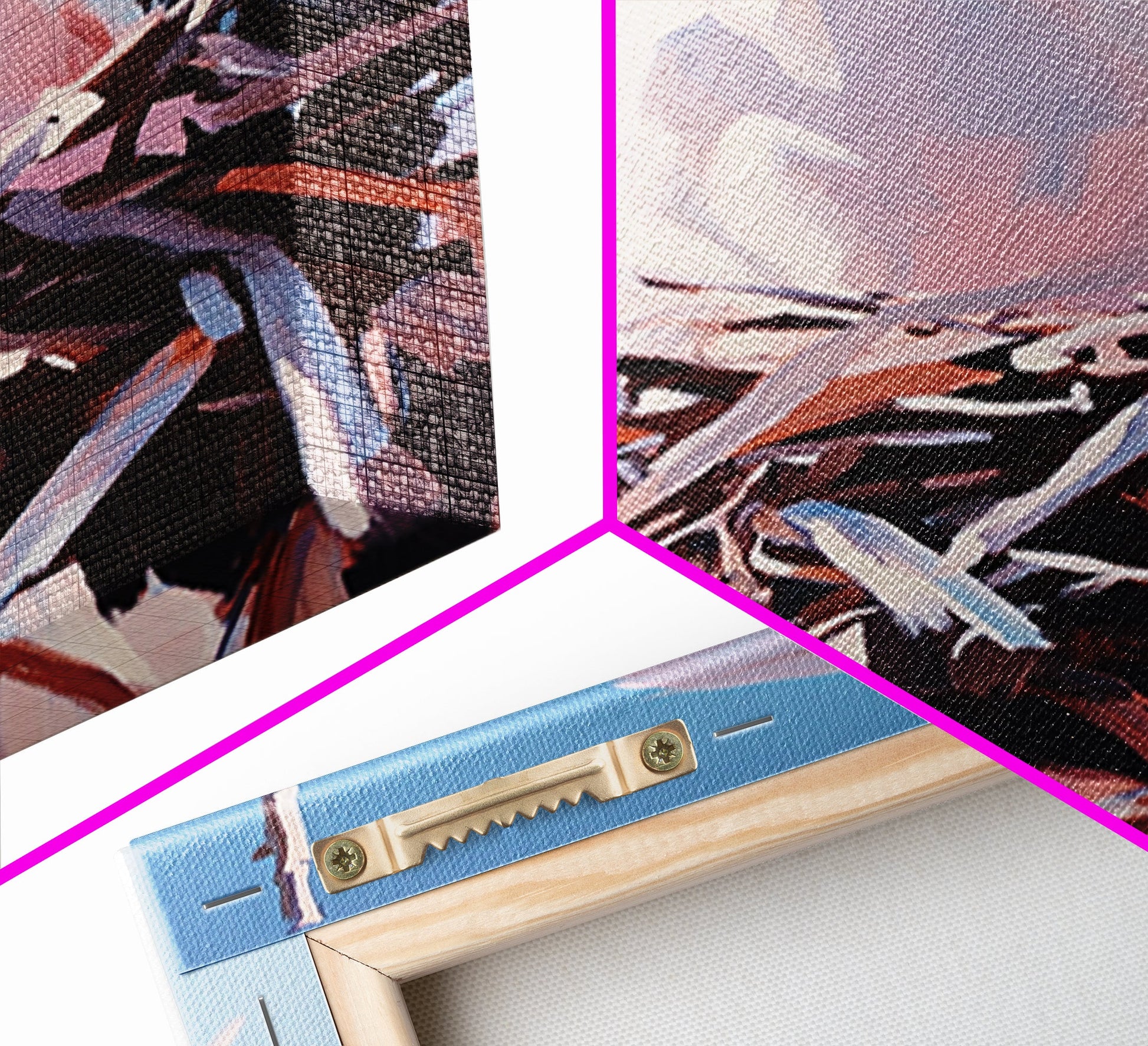 Hello and thank you for taking the time to view our modern high quality giclée artwork! We offer both posters and stretched canvas prints. Our posters are printed on Ultra Matte 60 lb / 230 GSM high quality photo paper, with a thickness of 10 mil. Our canvases are printed on museum grade 350 GSM canvas material with ECO friendly archival grade ink, then hand stretched and stapled over premium, FSC certified and shrink resistant frames. Designed and built to last a lifetime.