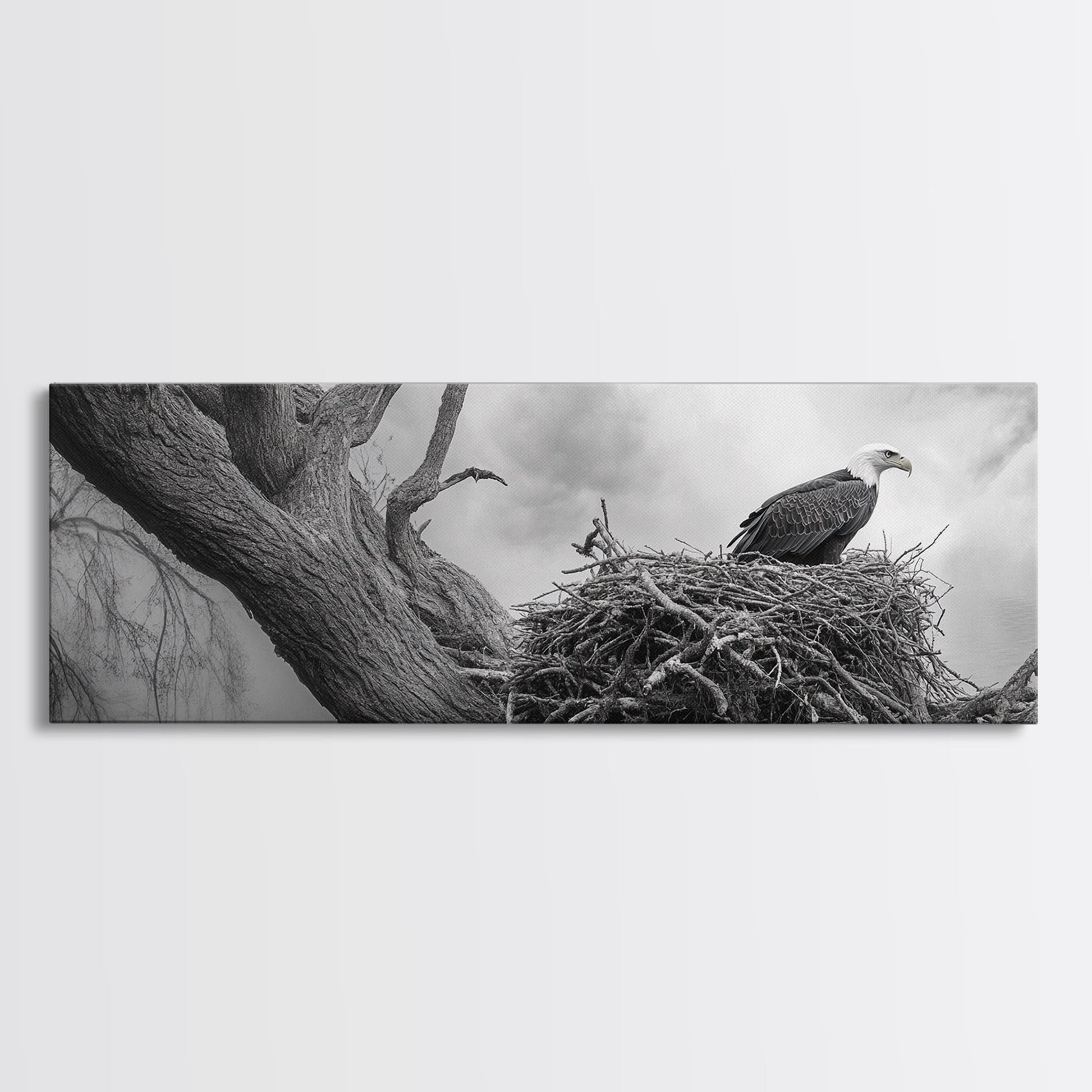 Bald Eagle Nest, Wildlife Art, Nature Photography, Moody Art, Rustic Decor, Horizontal Wall Art, Framed Canvas Print, Bedroom Art