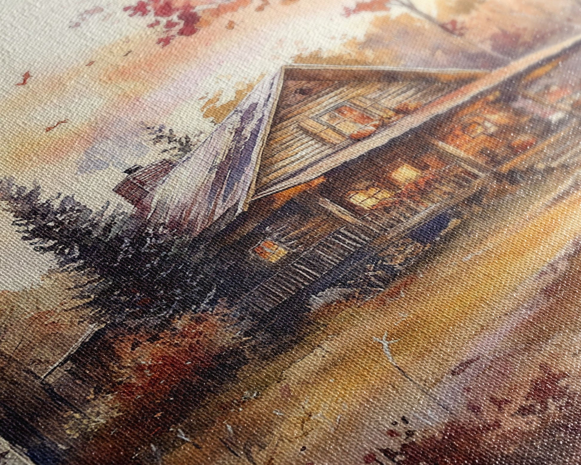 Beautiful Woods Cabin Framed Canvas Print, Extra Large Fall Decor, Mid Century Modern Autumn Wall Art, Modern Christmas
