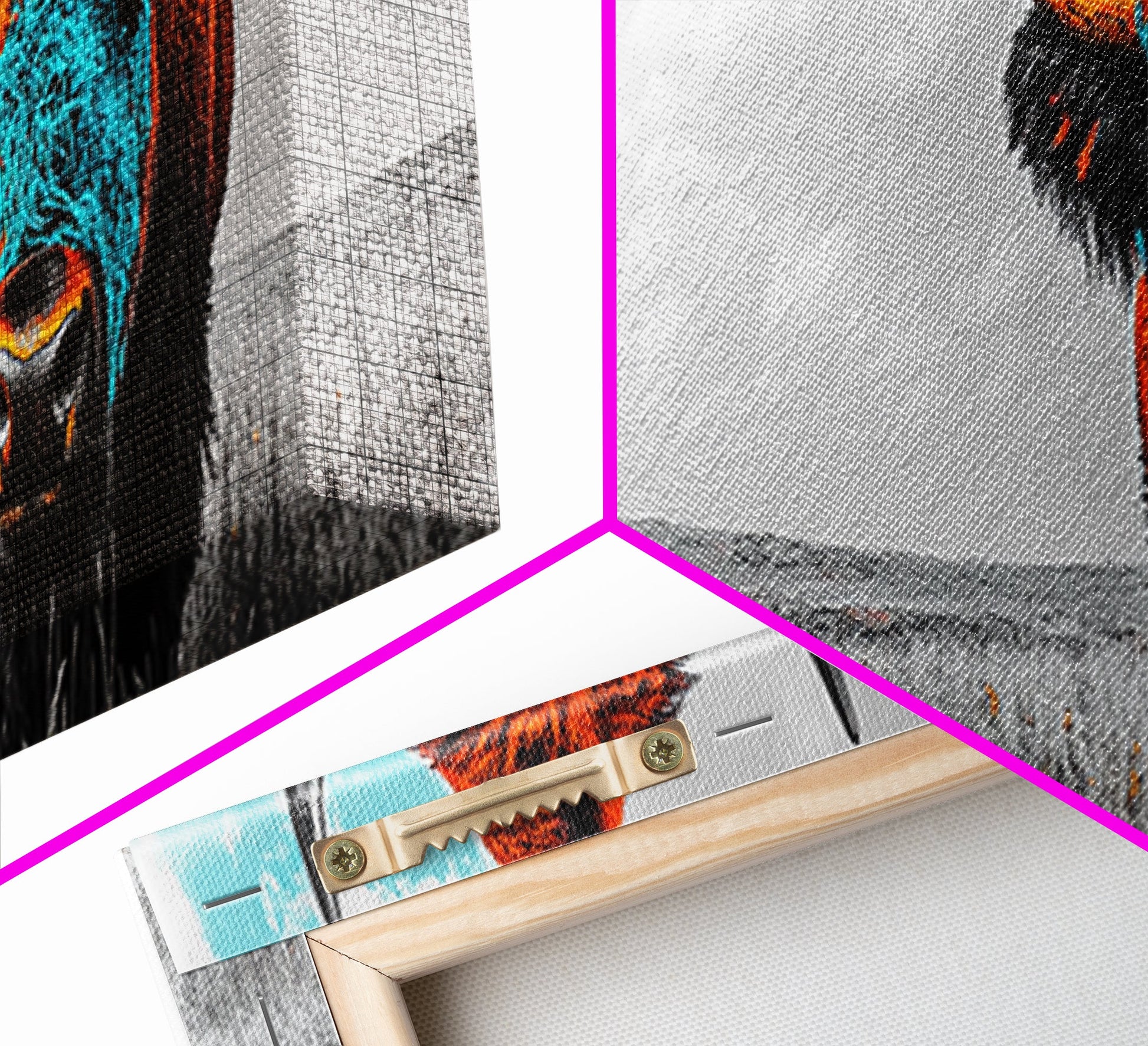 Hello and thank you for taking the time to view our modern high quality giclée artwork! We offer both posters and stretched canvas prints. Our posters are printed on Ultra Matte 60 lb / 230 GSM high quality photo paper, with a thickness of 10 mil. Our canvases are printed on museum grade 350 GSM canvas material with ECO friendly archival grade ink, then hand stretched and stapled over premium, FSC certified and shrink resistant frames. Designed and built to last a lifetime.