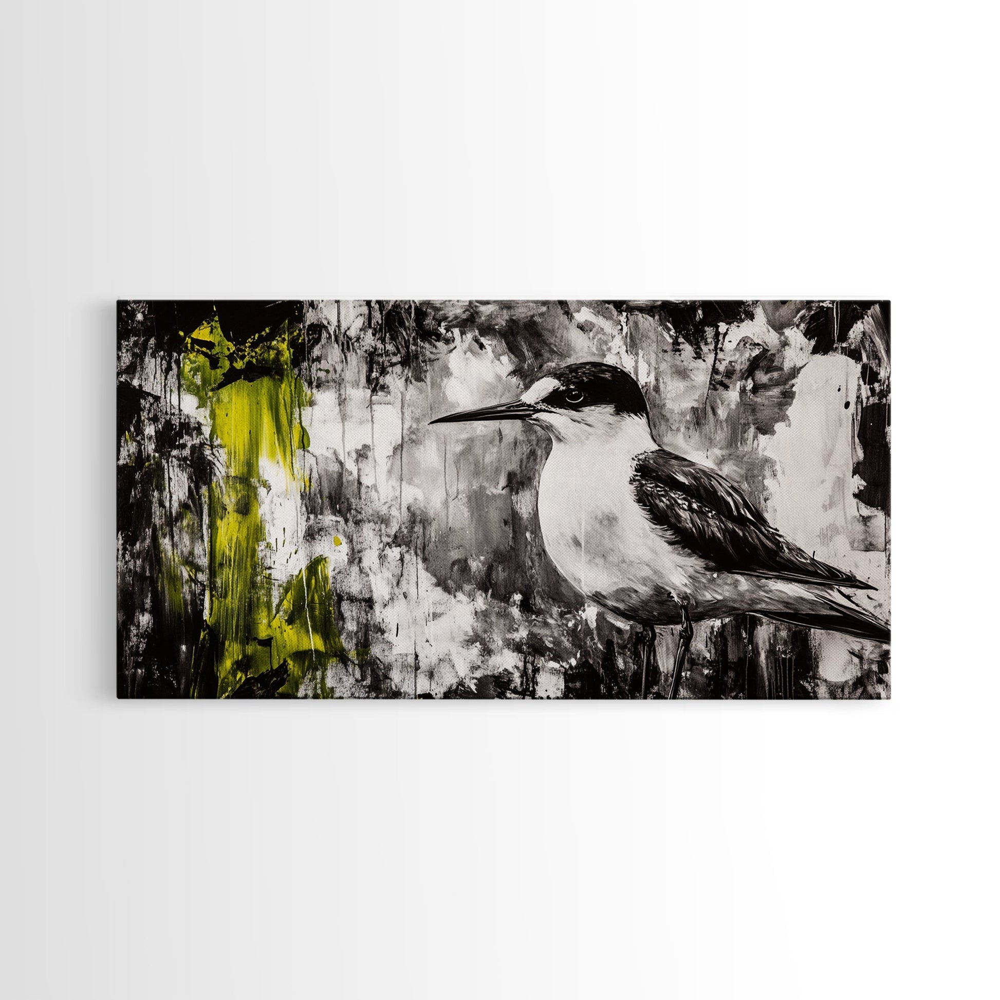 Black and White Bird, Modern Abstract, Minimalist Art, Canvas Print, Nature Wall Art, Office Wall Art, Boho Aesthetic Decor