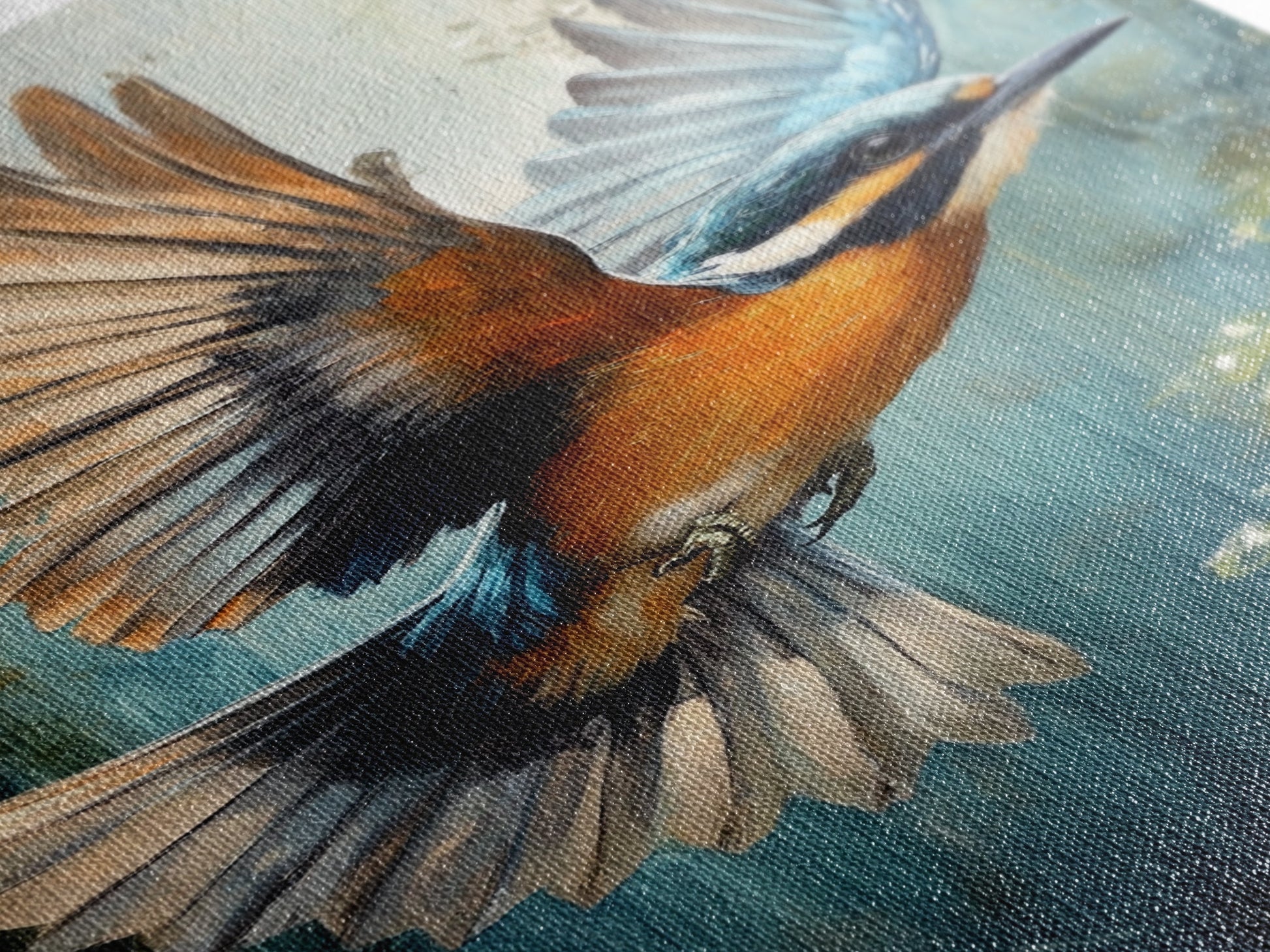 Blue Kingfisher Bird Canvas Print | Vibrant Nature Painting Wall Art | Wildlife Rustic Art Above Sofa | Whimsical Bird Original Artwork