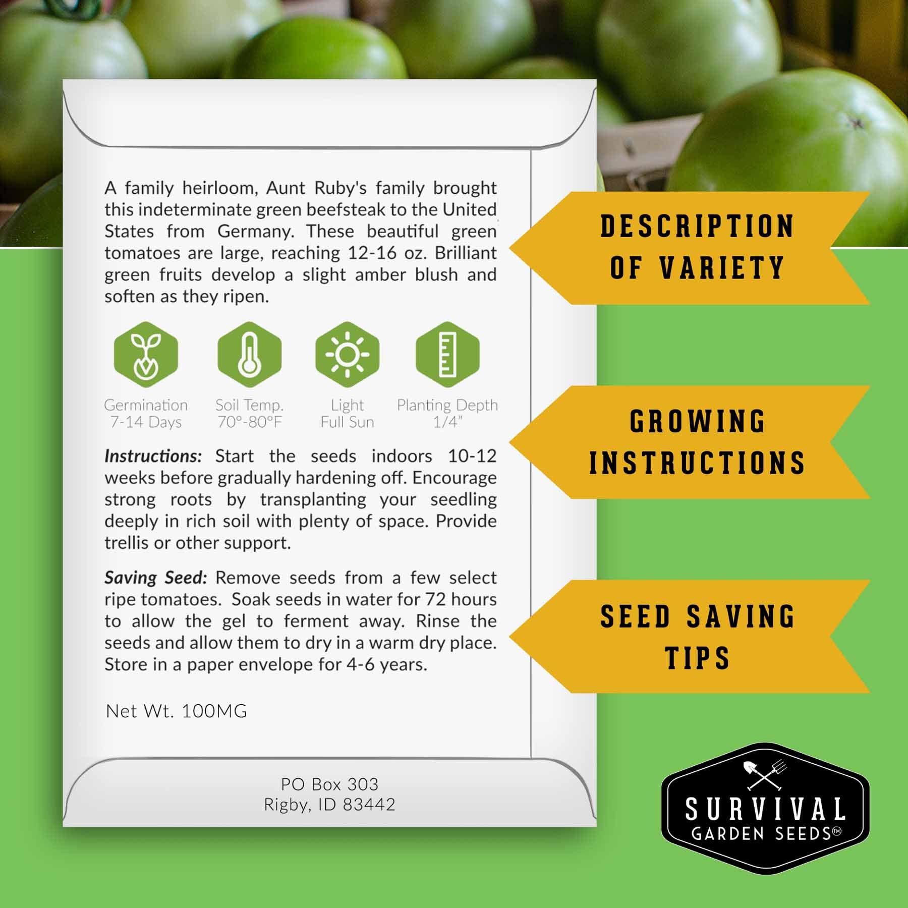 A beloved green heirloom with large beefsteak fruits and a tangy, slightly sweet flavor. Excellent for slicing and fresh eating.