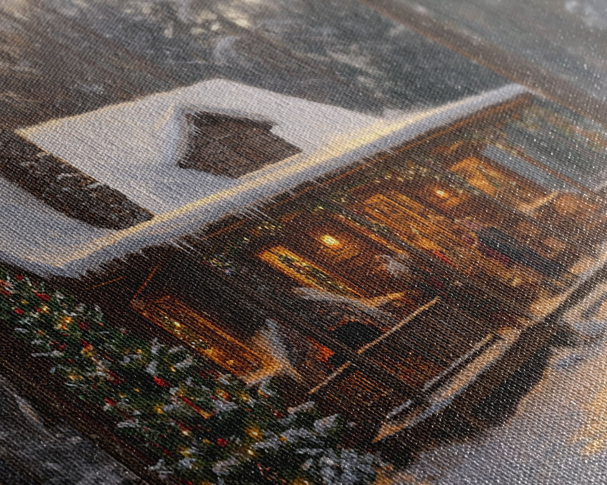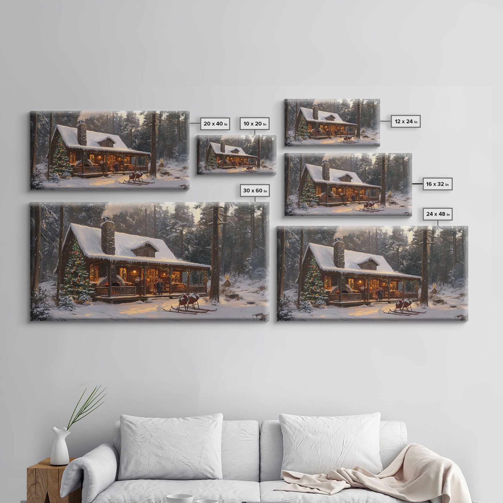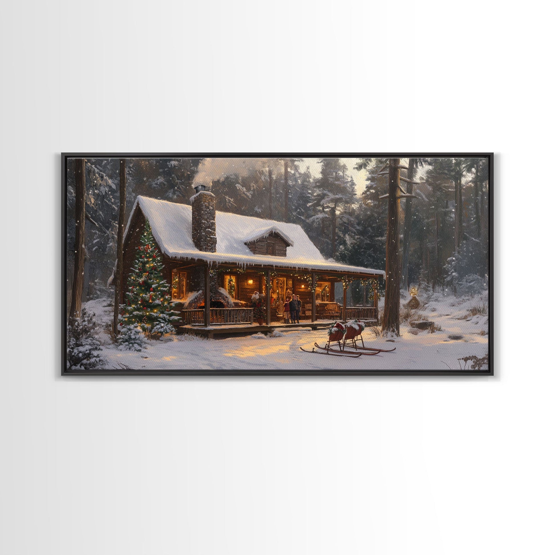 Cozy Christmas Cabin in Woods Framed Canvas Print - Rustic Christmas Decor and Winter Wonderland Scene with Holiday Wall Art