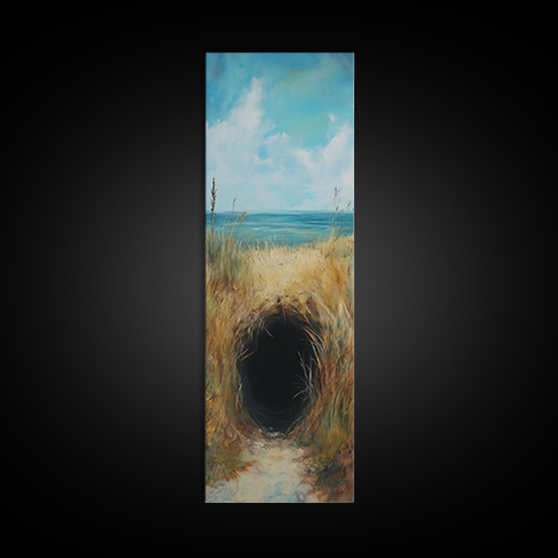 Dark Rabbit Hole Canvas Print, Wabi Sabi Art, Moody Art, Coastal Landscape Art, Minimalist Art, Living Room Art, Extra Wide Art