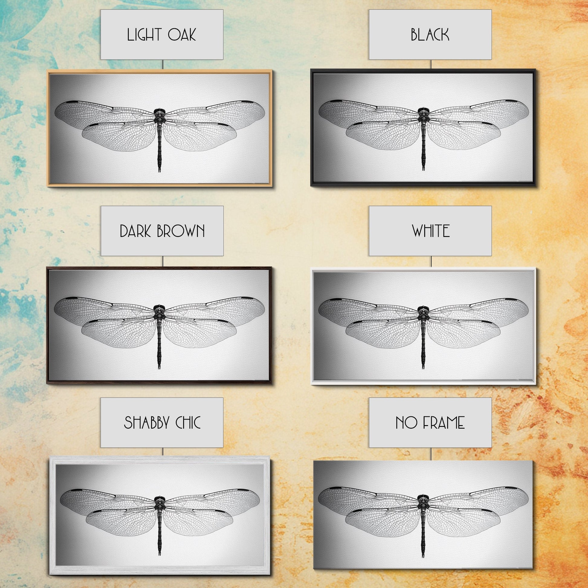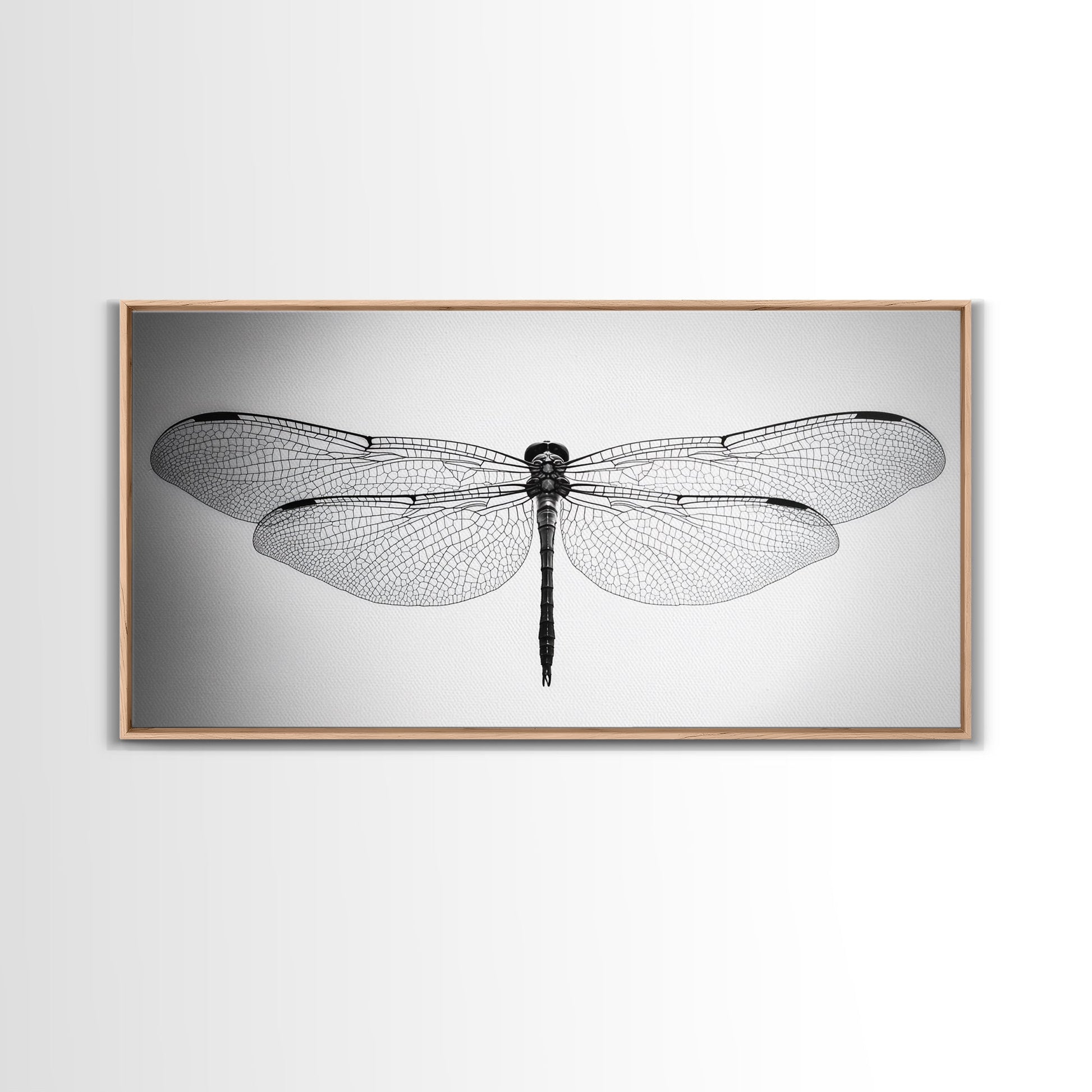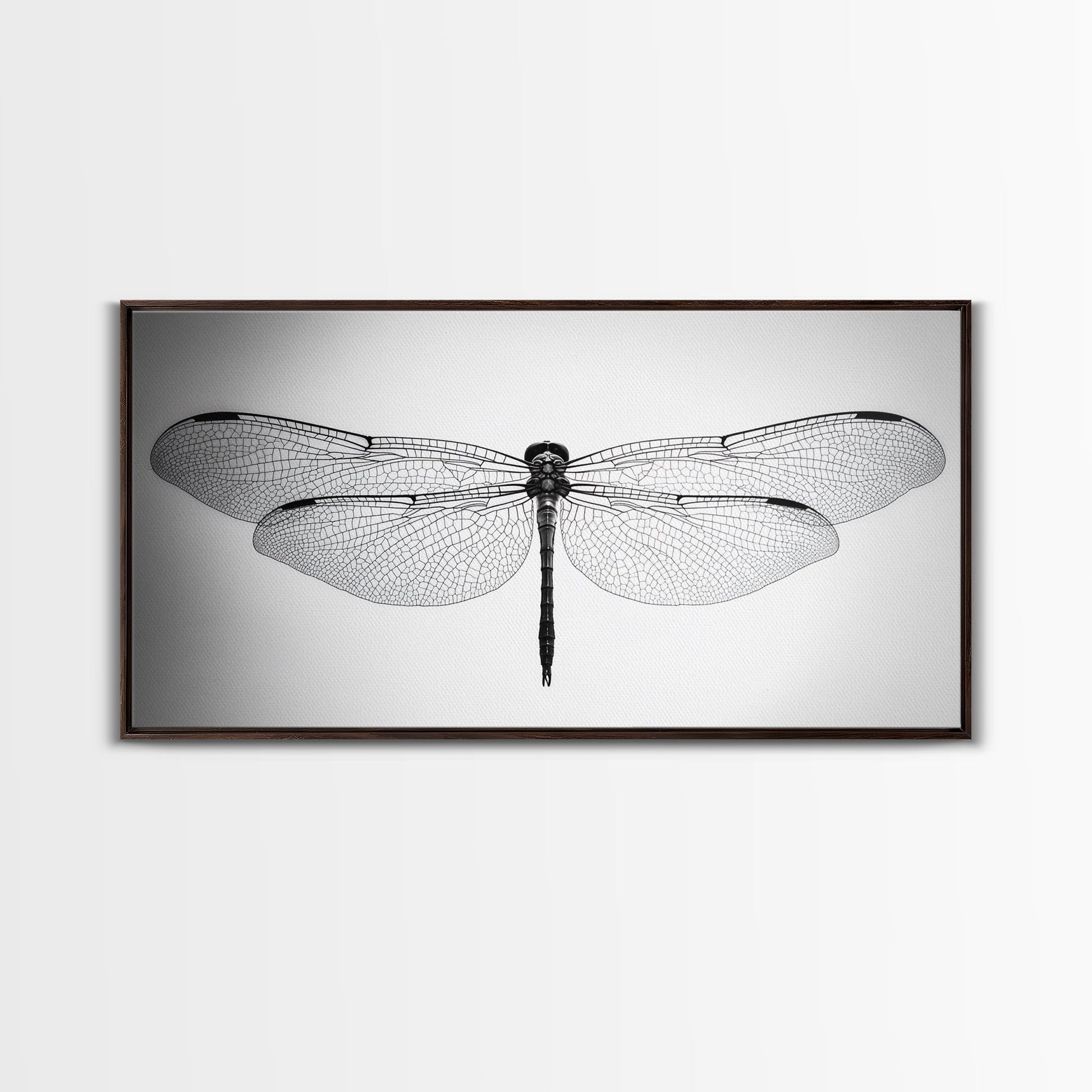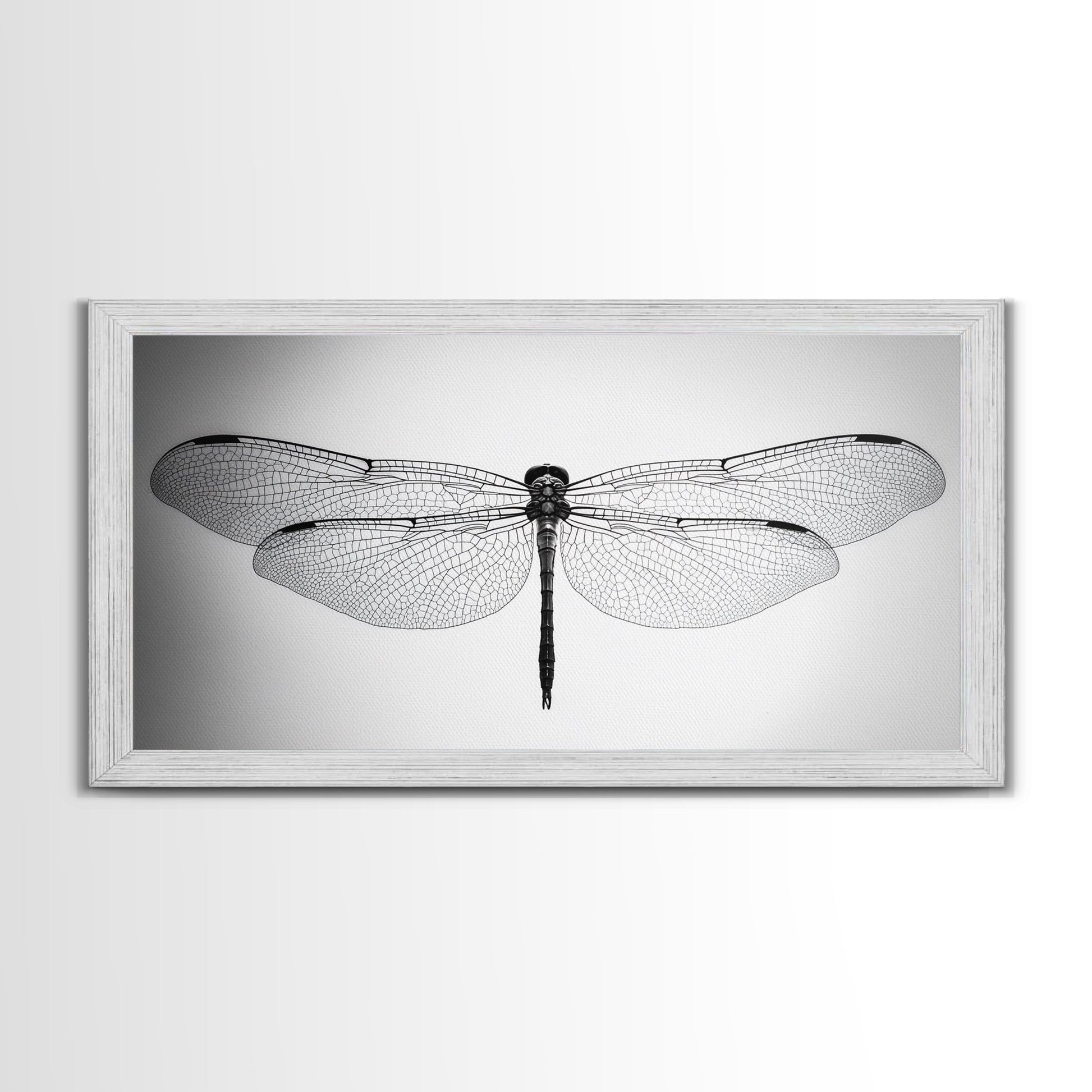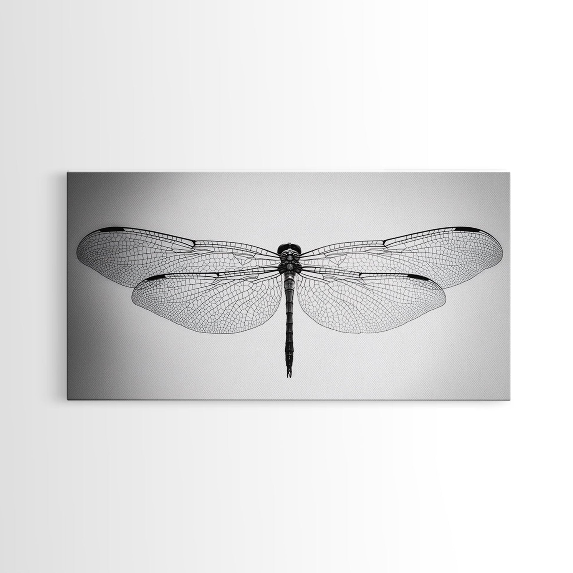 Dragonfly, line art, minimalist art, black and white art, nature painting, botanical prints, extra wide art, framed canvas print