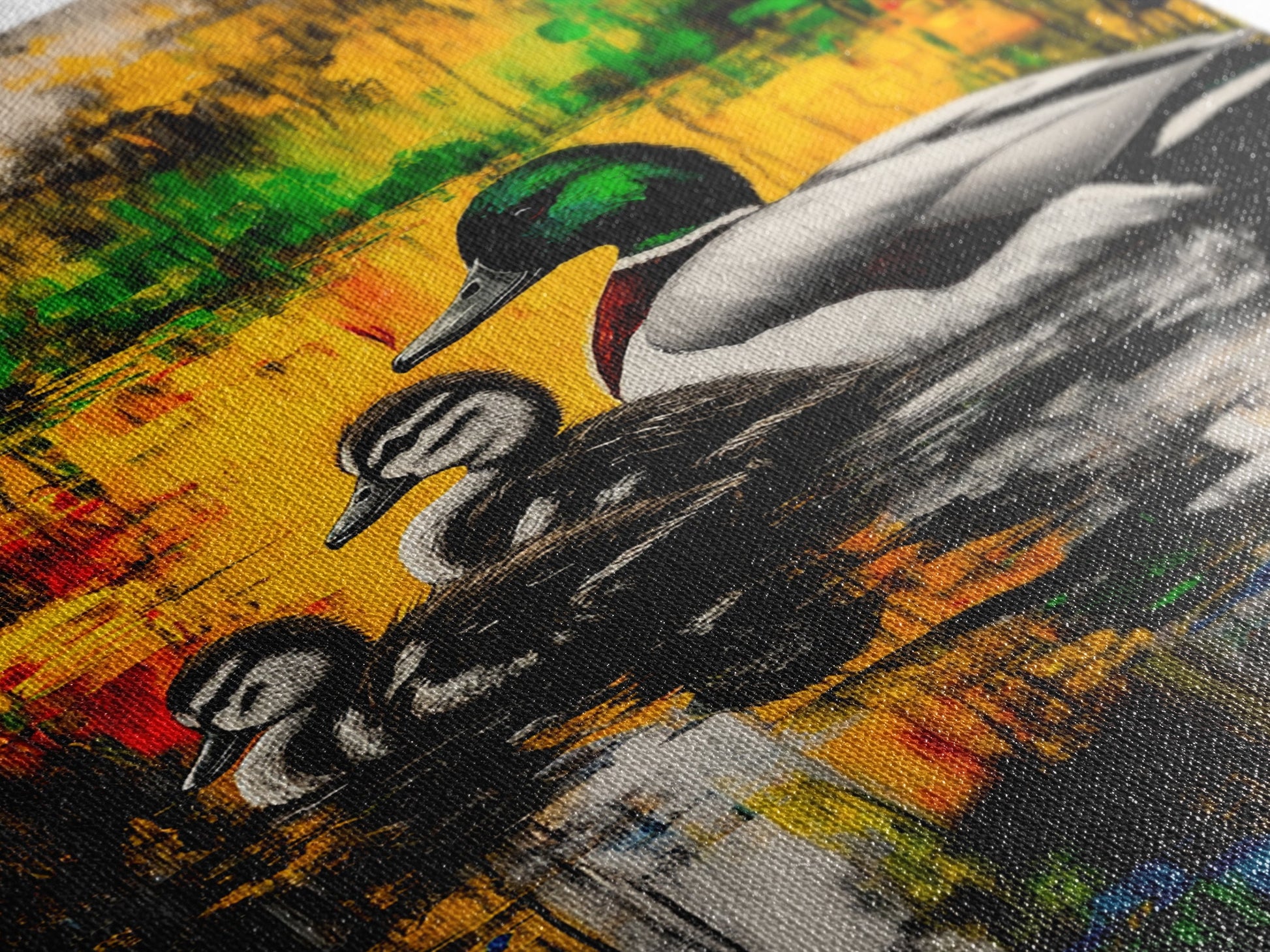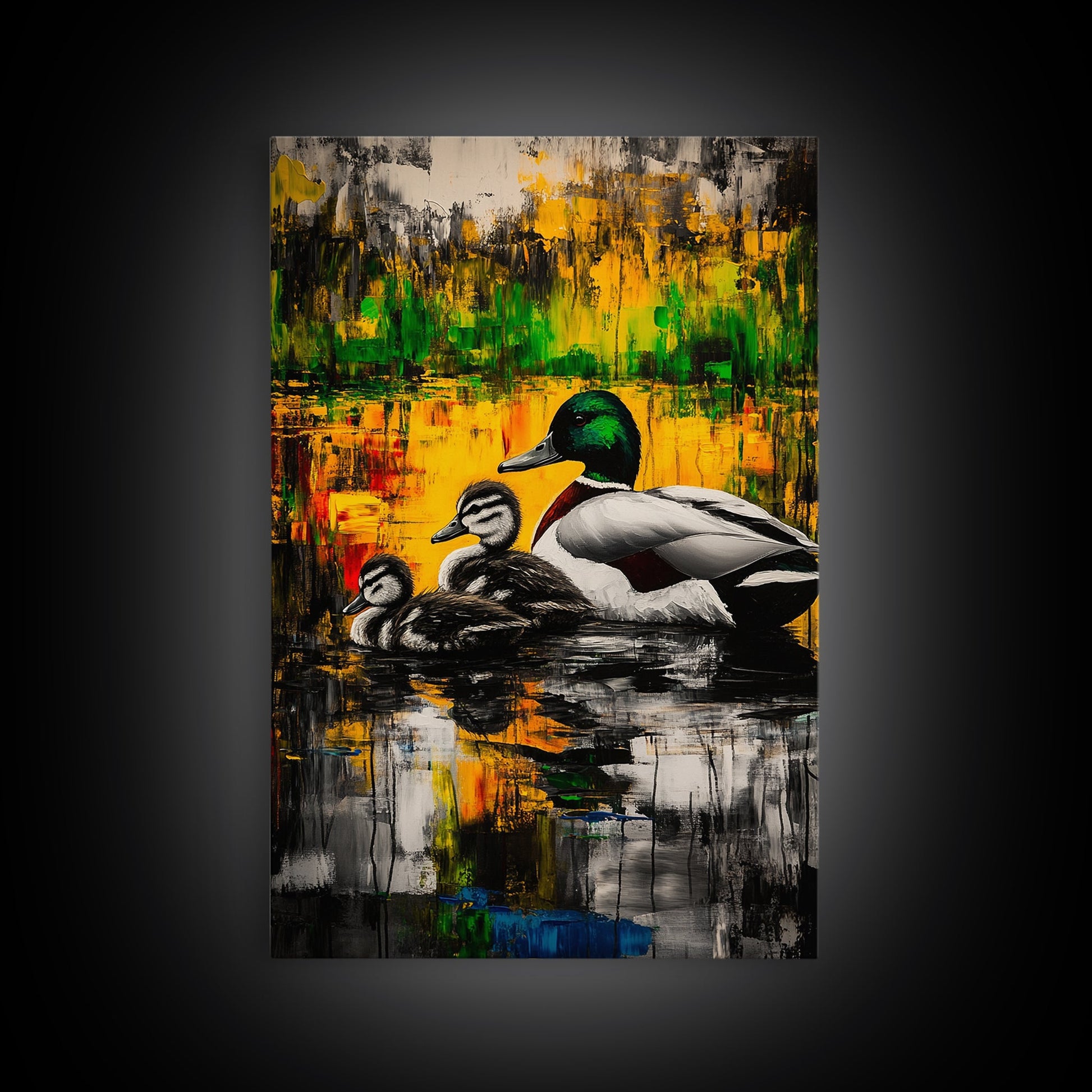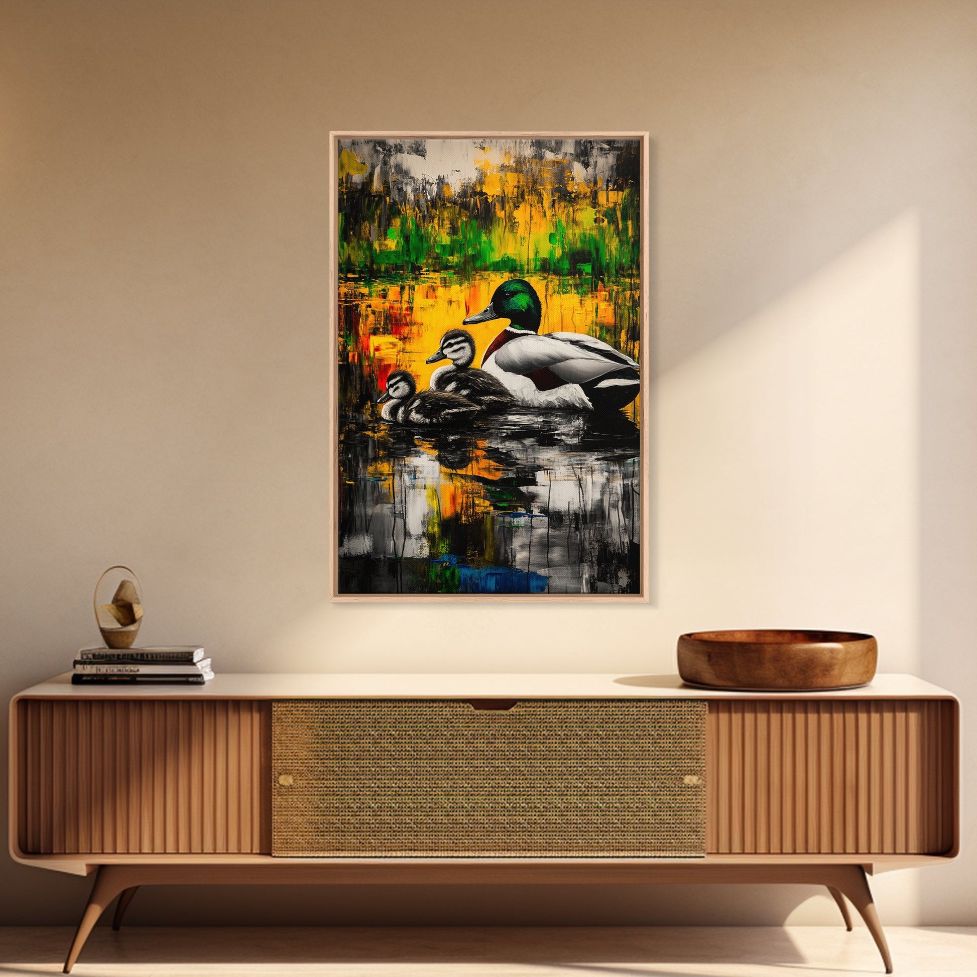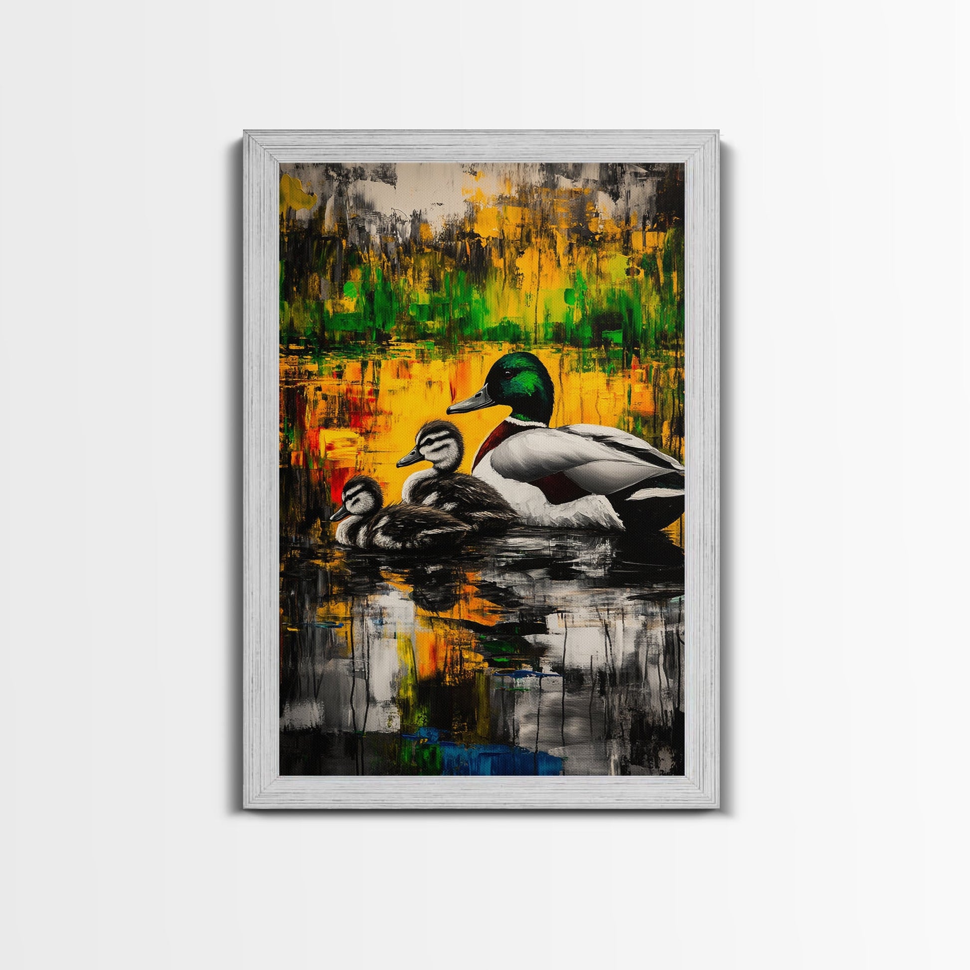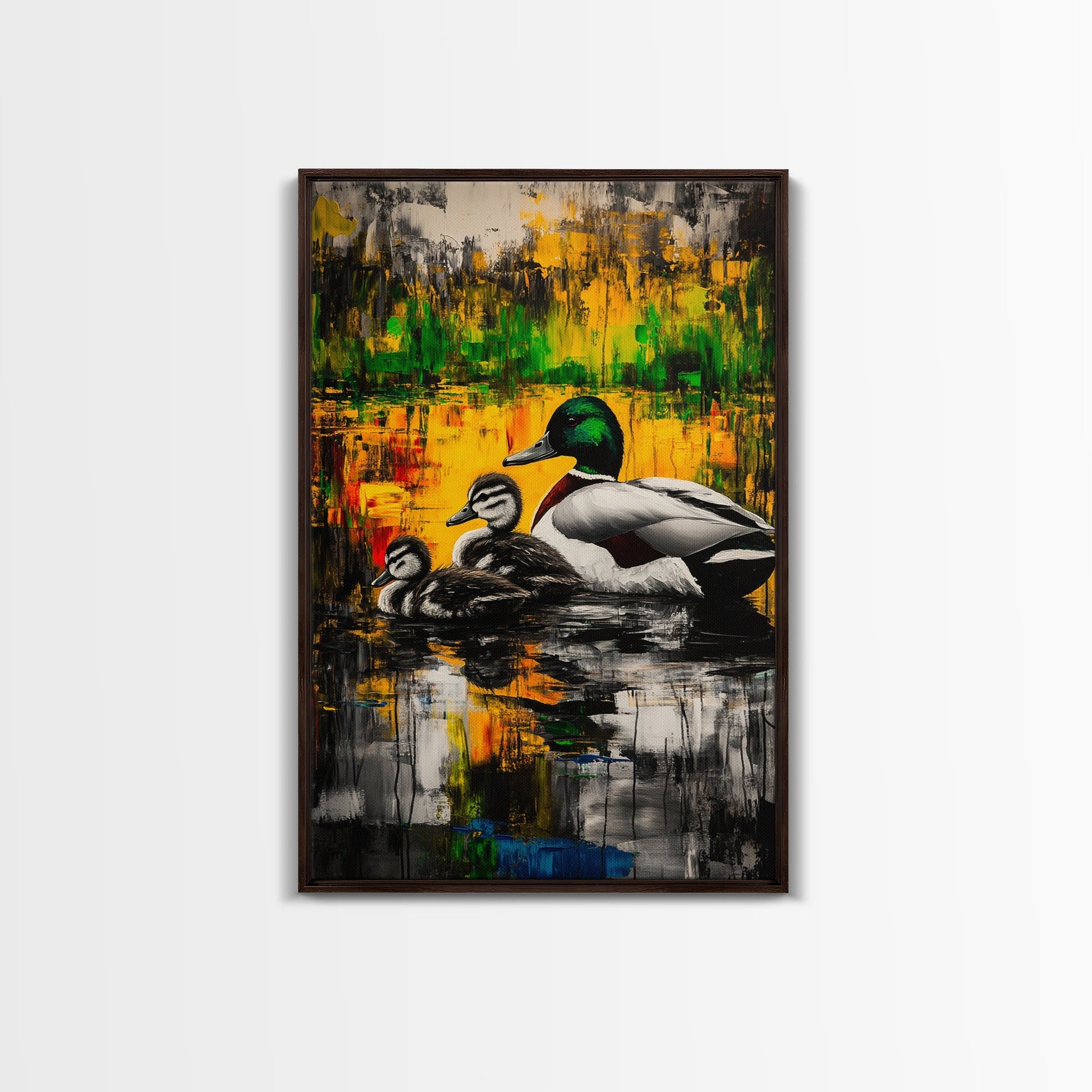 Ducks Pond Nature, Framed Canvas Print, Wildlife Art, Vibrant Watercolor Style, Rustic Wall Decor, Country Home Art, Gift Idea