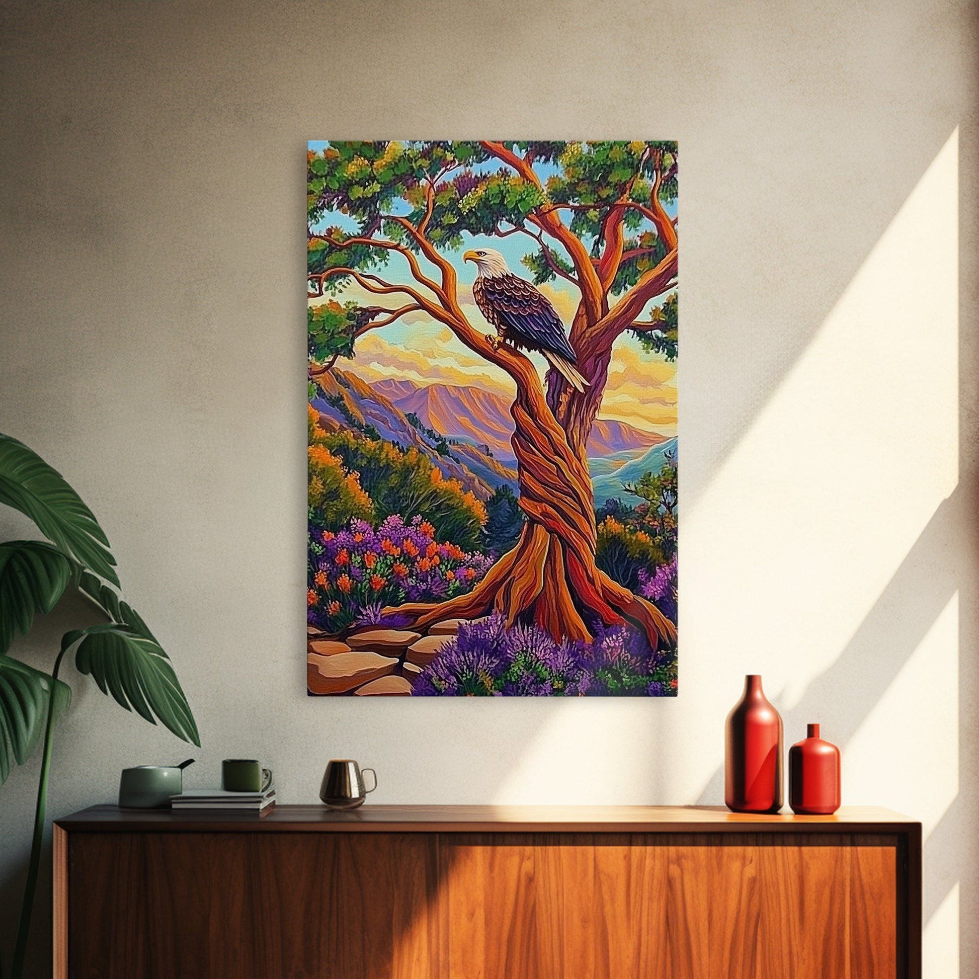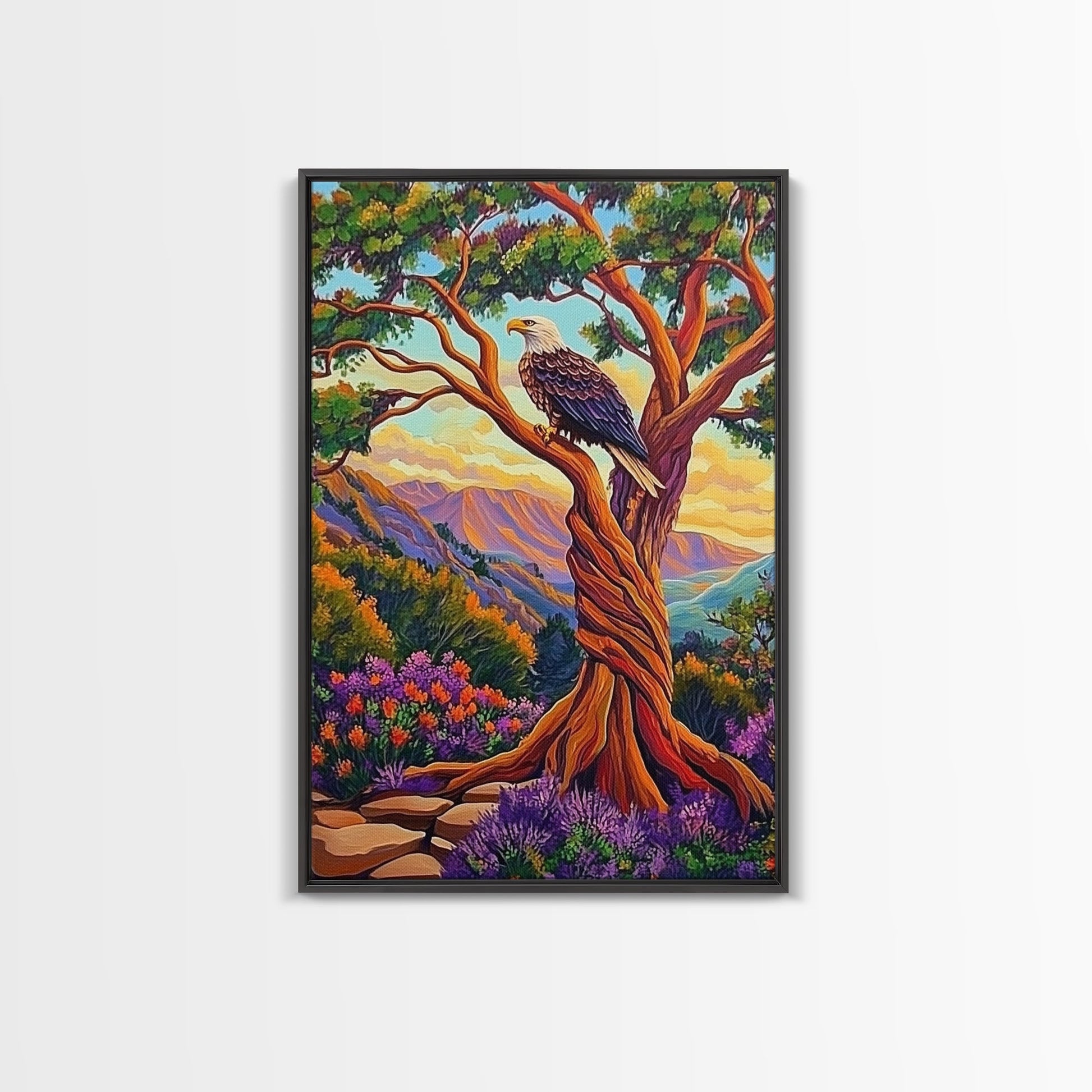 Eagle Mountain, Strength, Freedom, Framed Canvas Print, Patriotic wildlife art, rustic lodge wall decor, majestic nature artwork