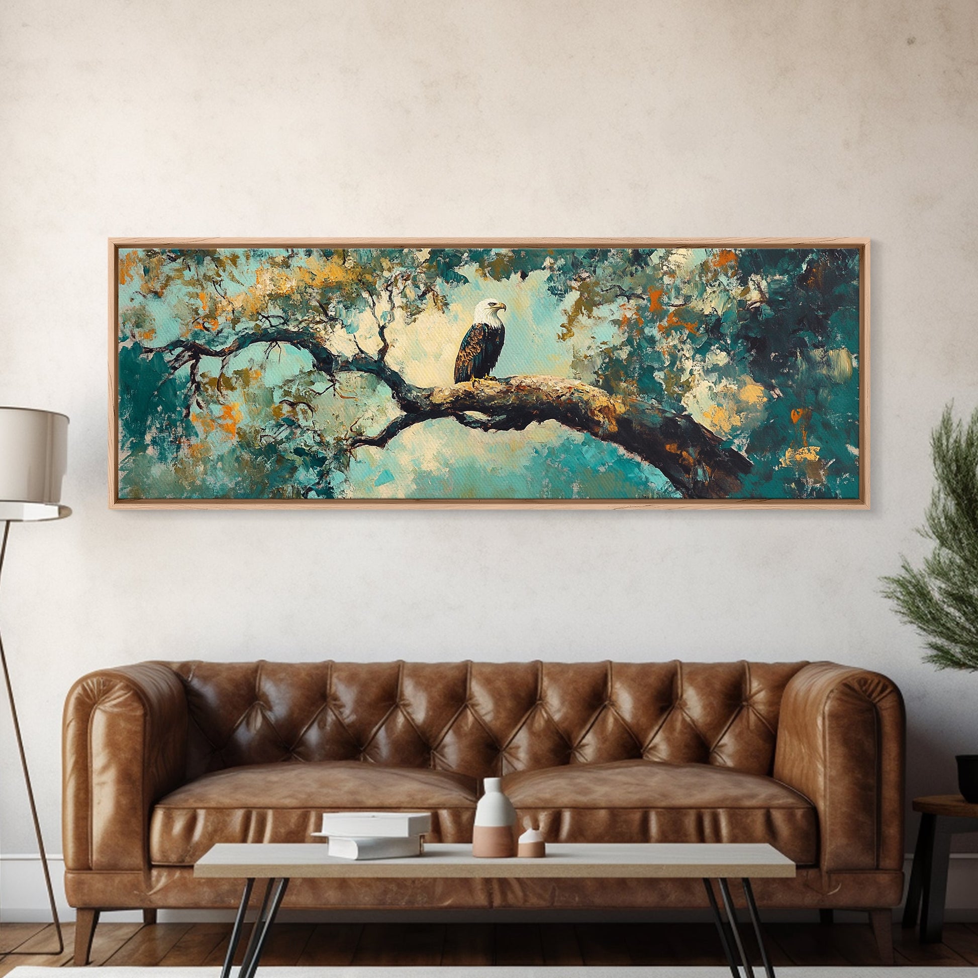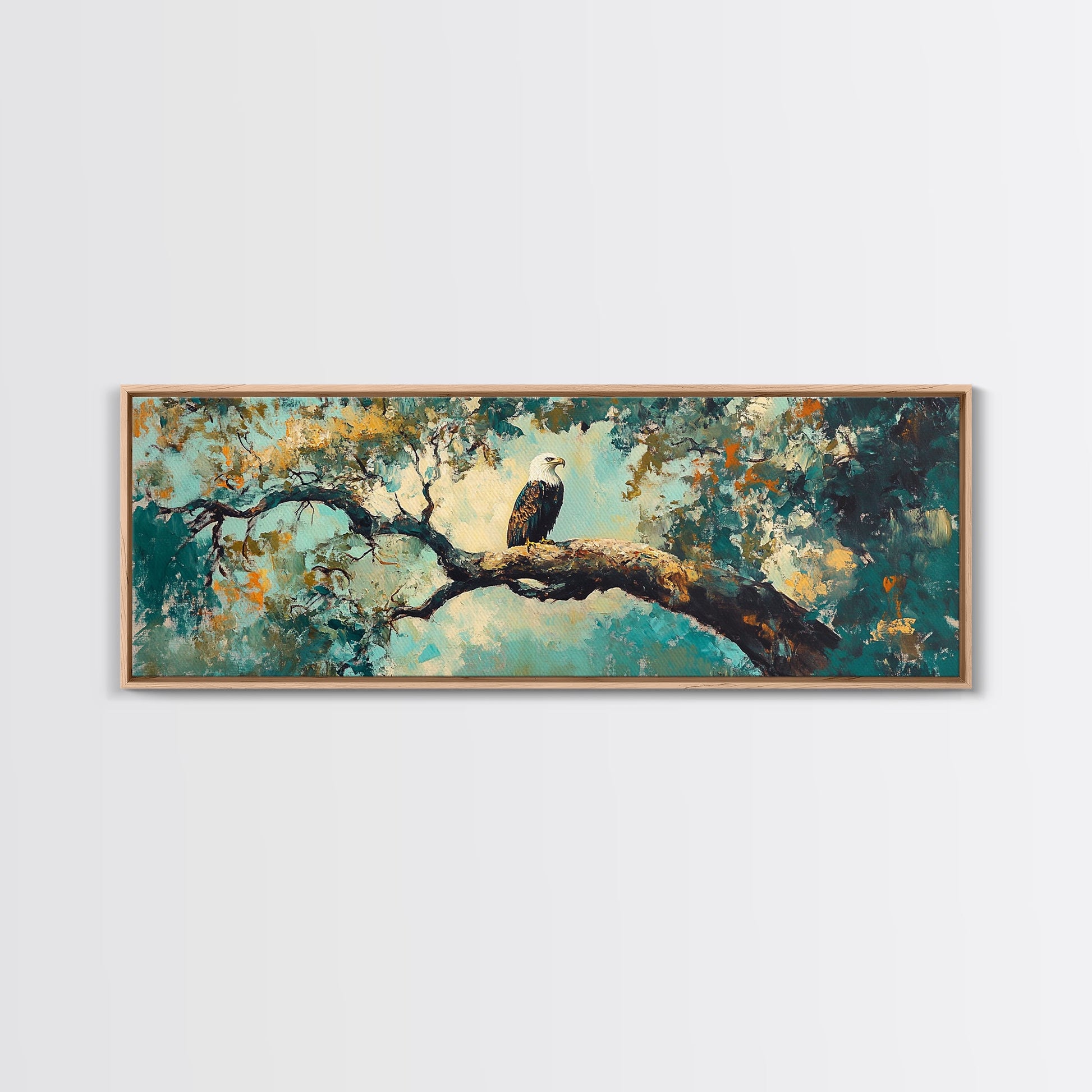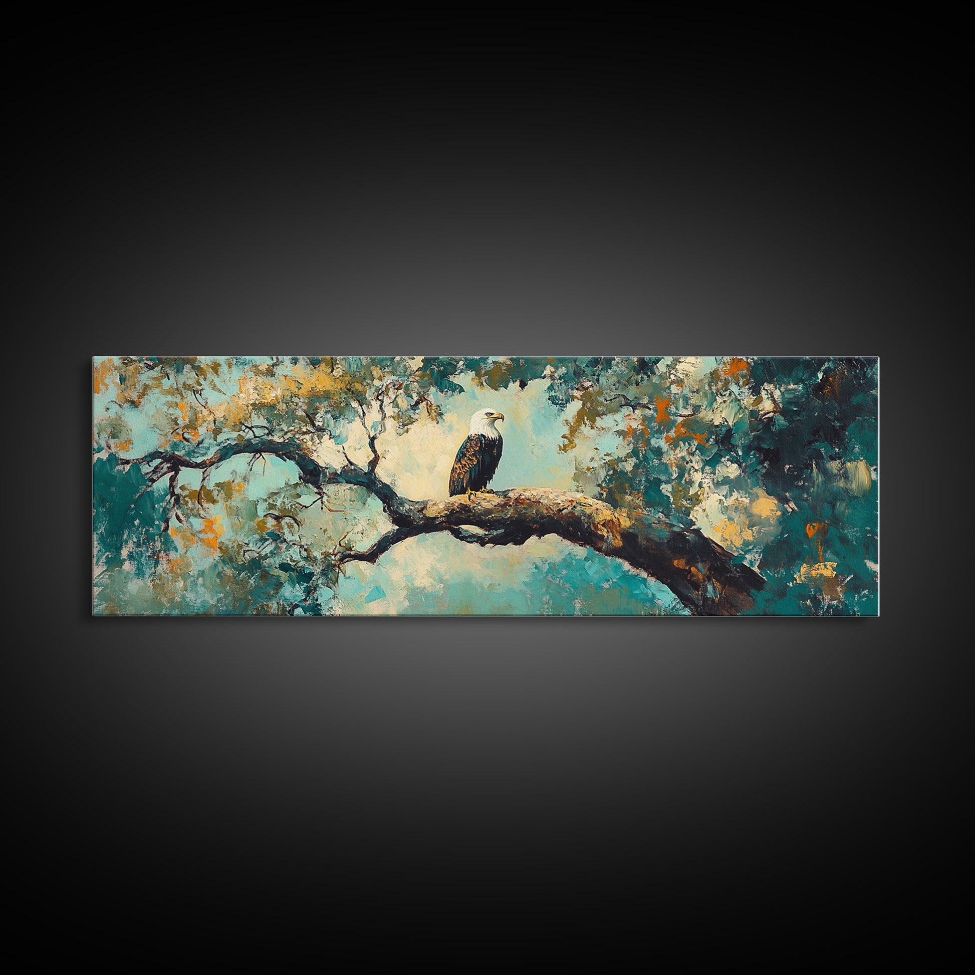 Eagle Painting, Framed Canvas Print, Bird Art, Forest At Dusk Painting, Moody Art, Extra Wide Art, Rustic Wall Art, Above Bed Art