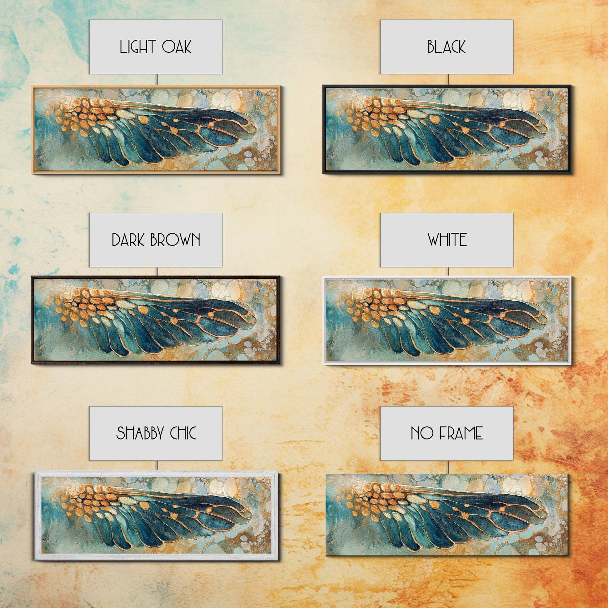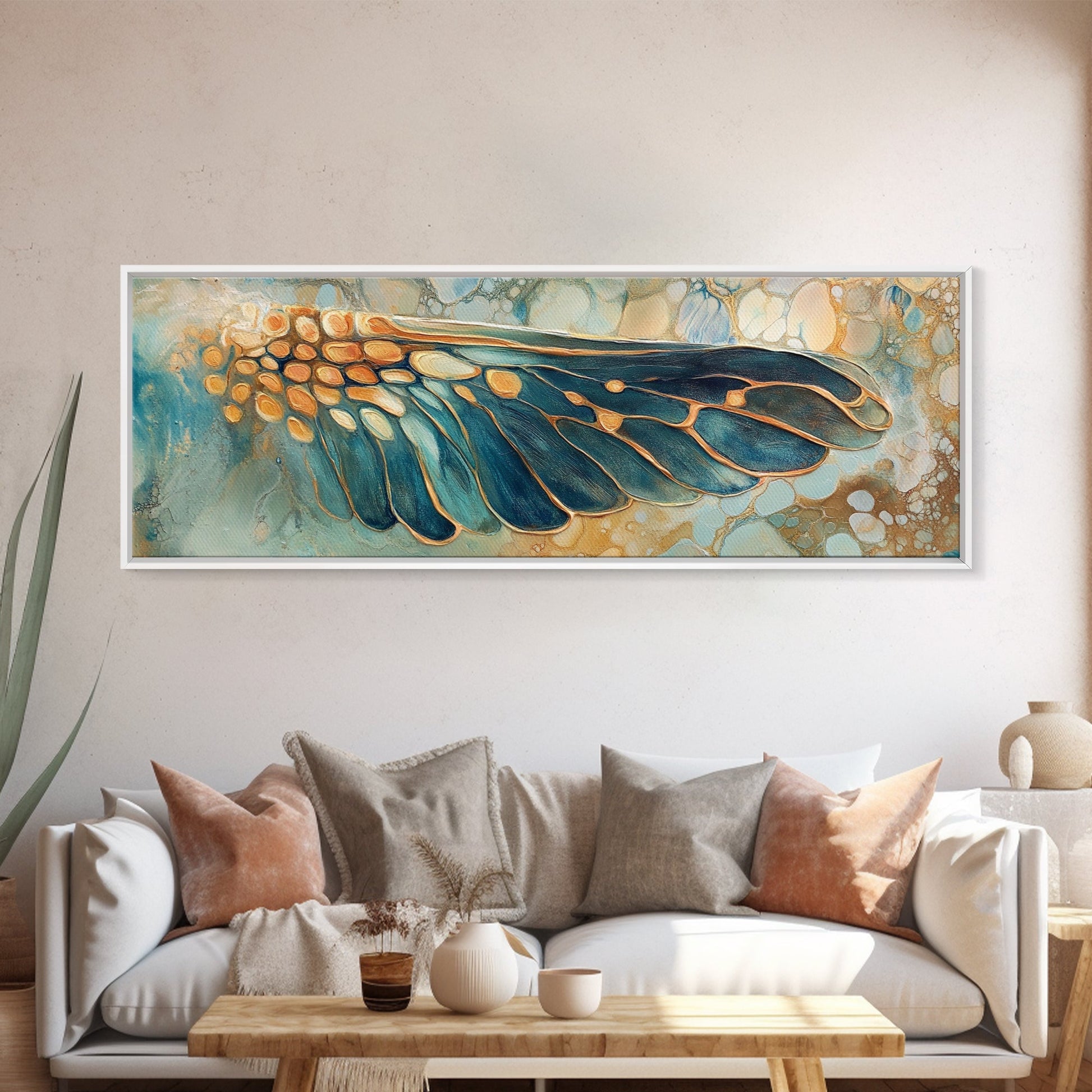 Elegant Butterfly Wing Abstract Art, Blue and Gold Nature Painting, Modern Minimalist Artwork, Bedroom or Office Wall Decor