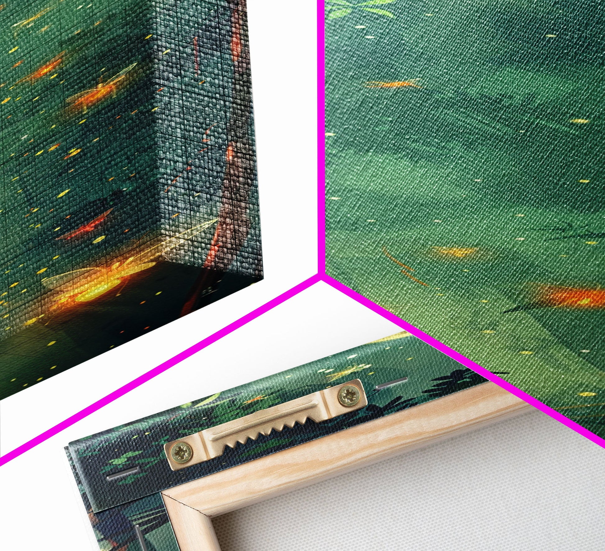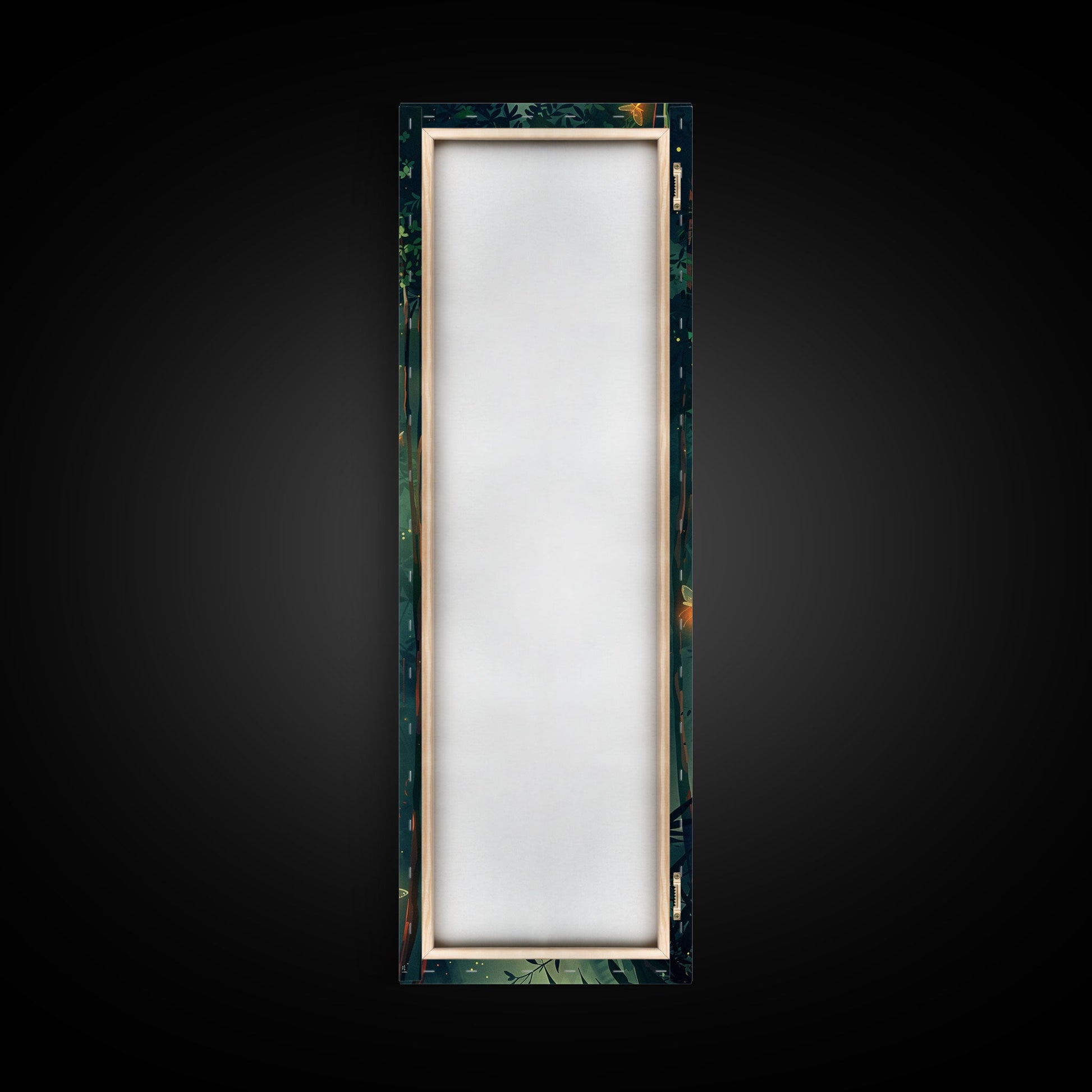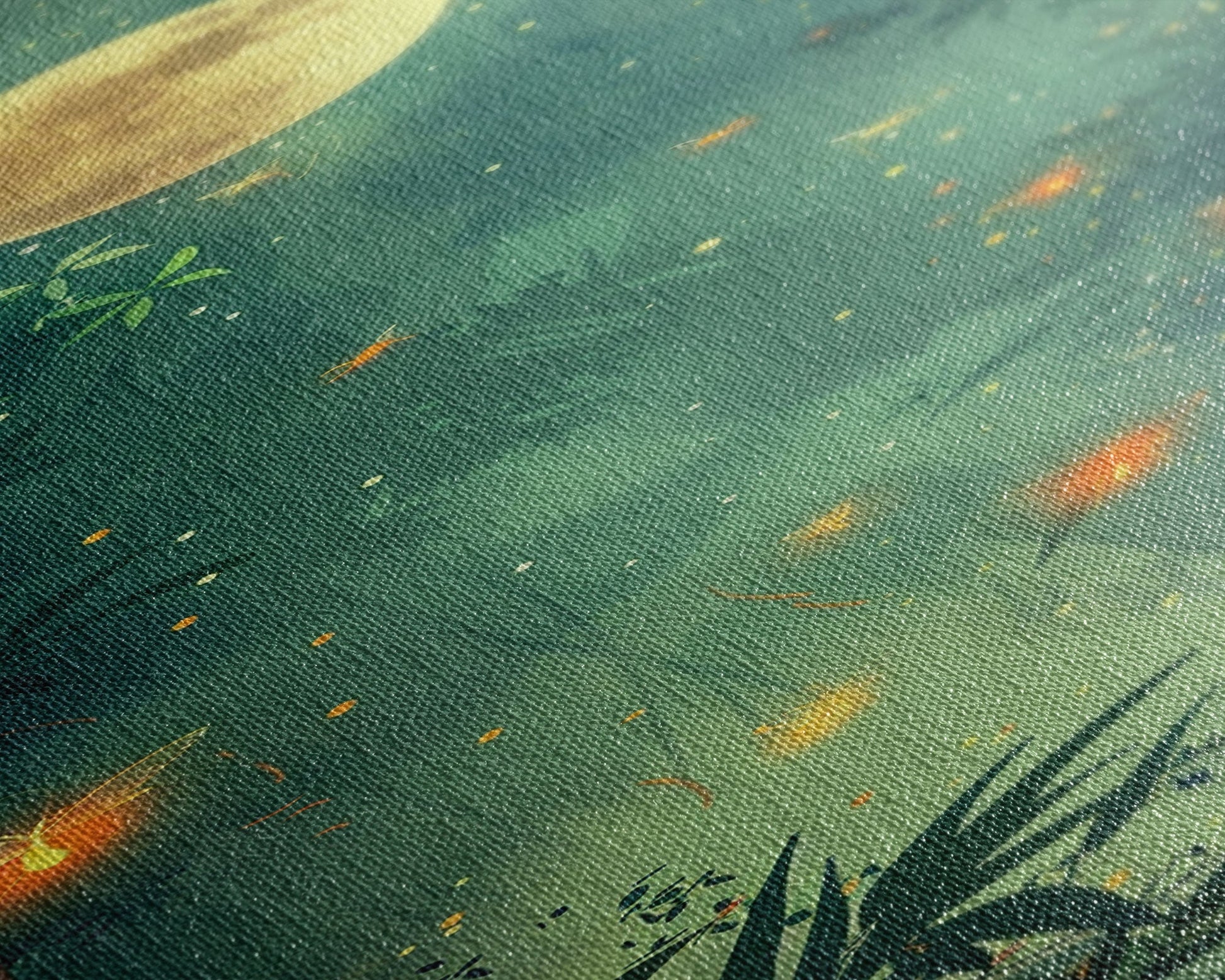Enchanting Fireflies Illuminating Nighttime Forest Scene Under Full Moon Tall Framed Canvas Print Adding Magical Touch