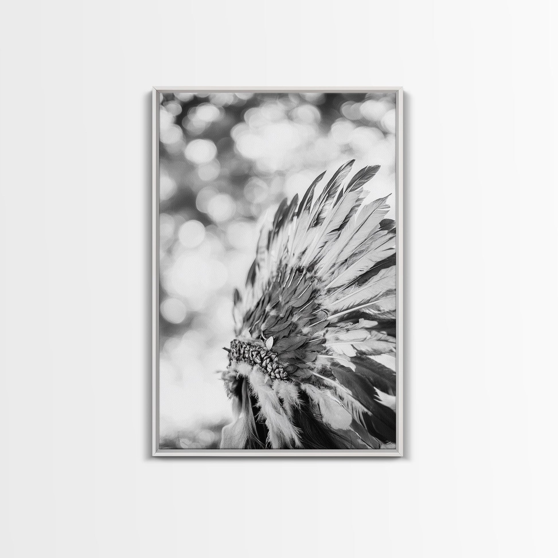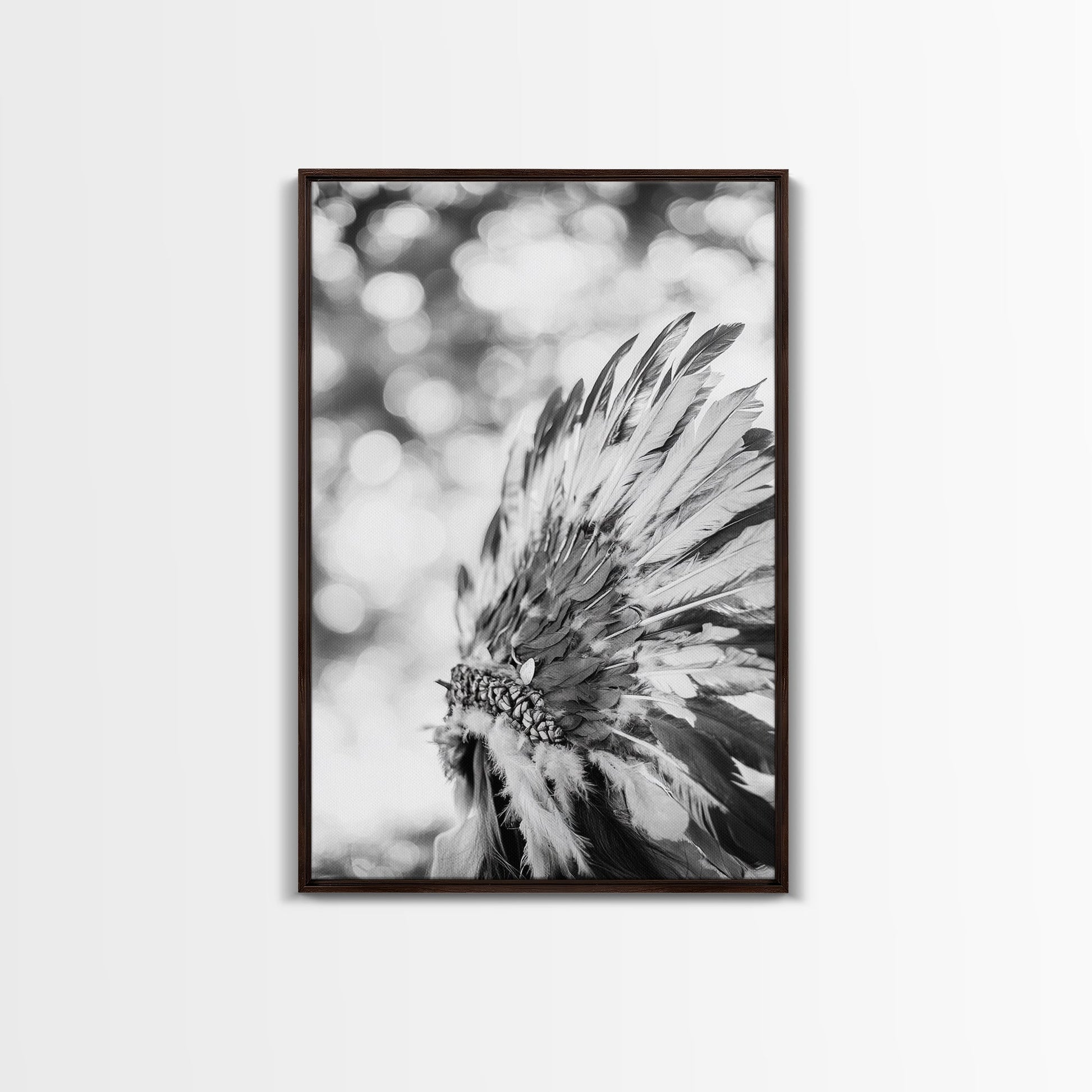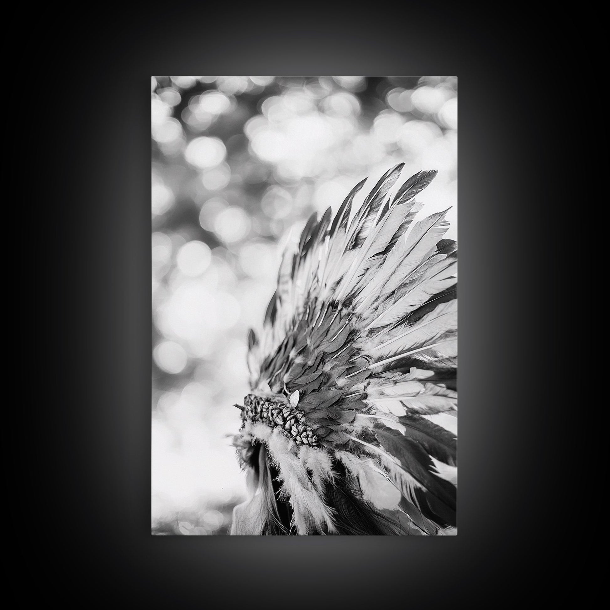 Feather Headdress, Native Style, Tribal Detail, Canvas Print, Boho Wall Decor, Cultural Art, Bedroom Accent, Earthy Minimalism
