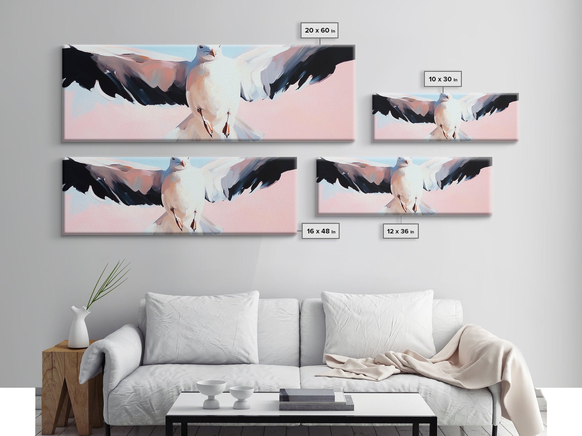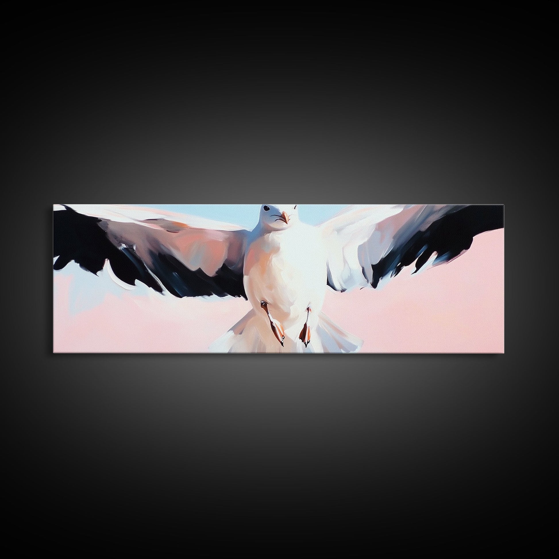 Flying Seagull, Coastal Bird, Ocean Breeze, Nautical Theme, Minimalist Art, Framed Canvas Print, Beach House Wall Art, Seaside Decor