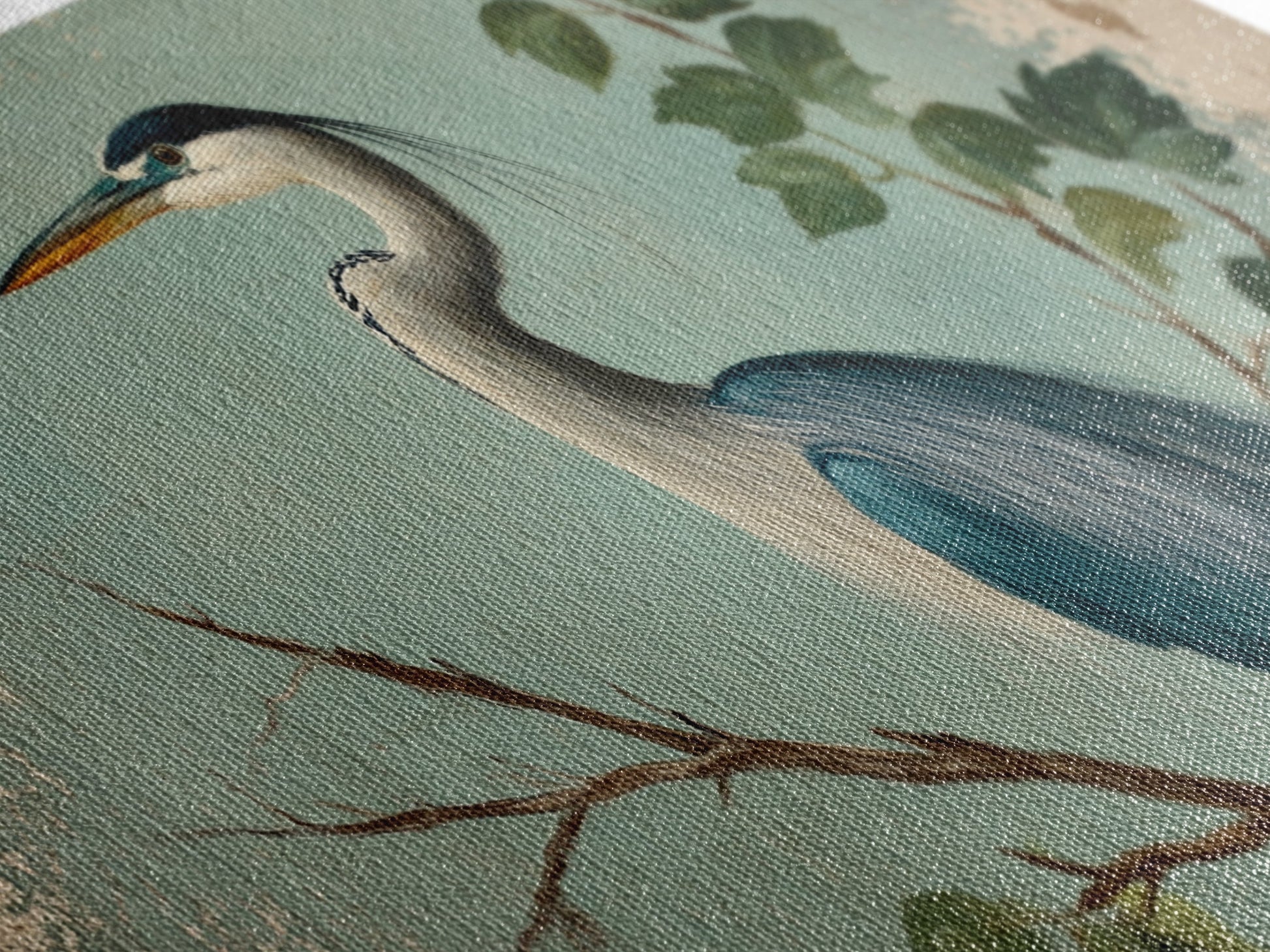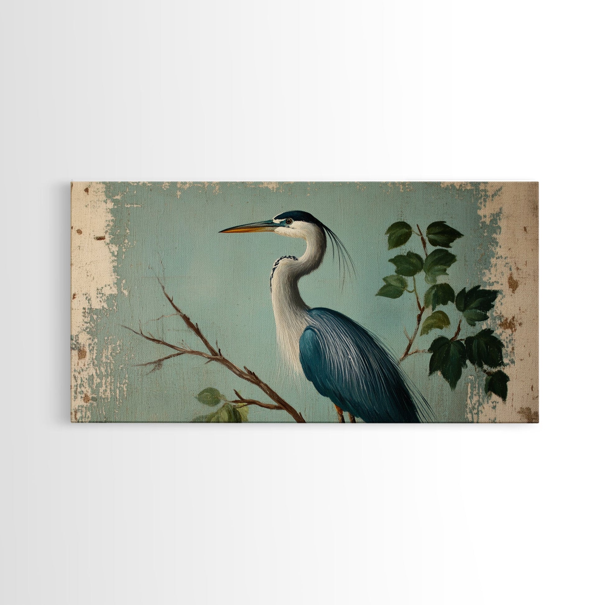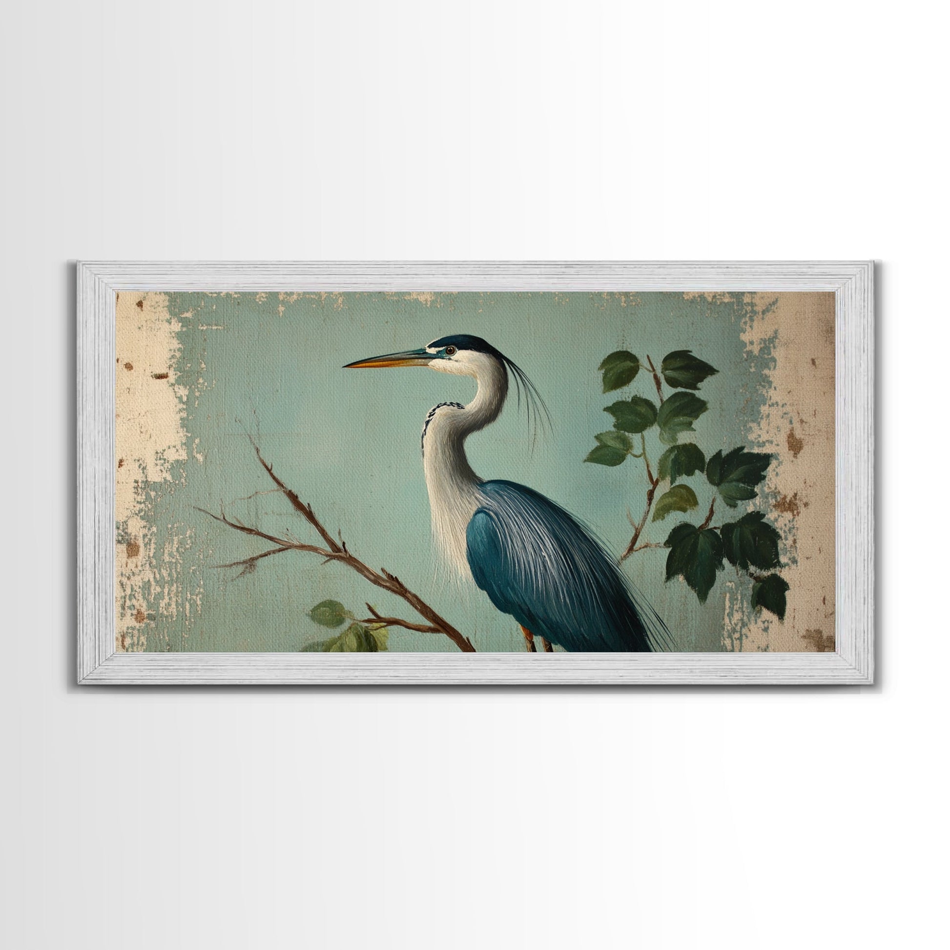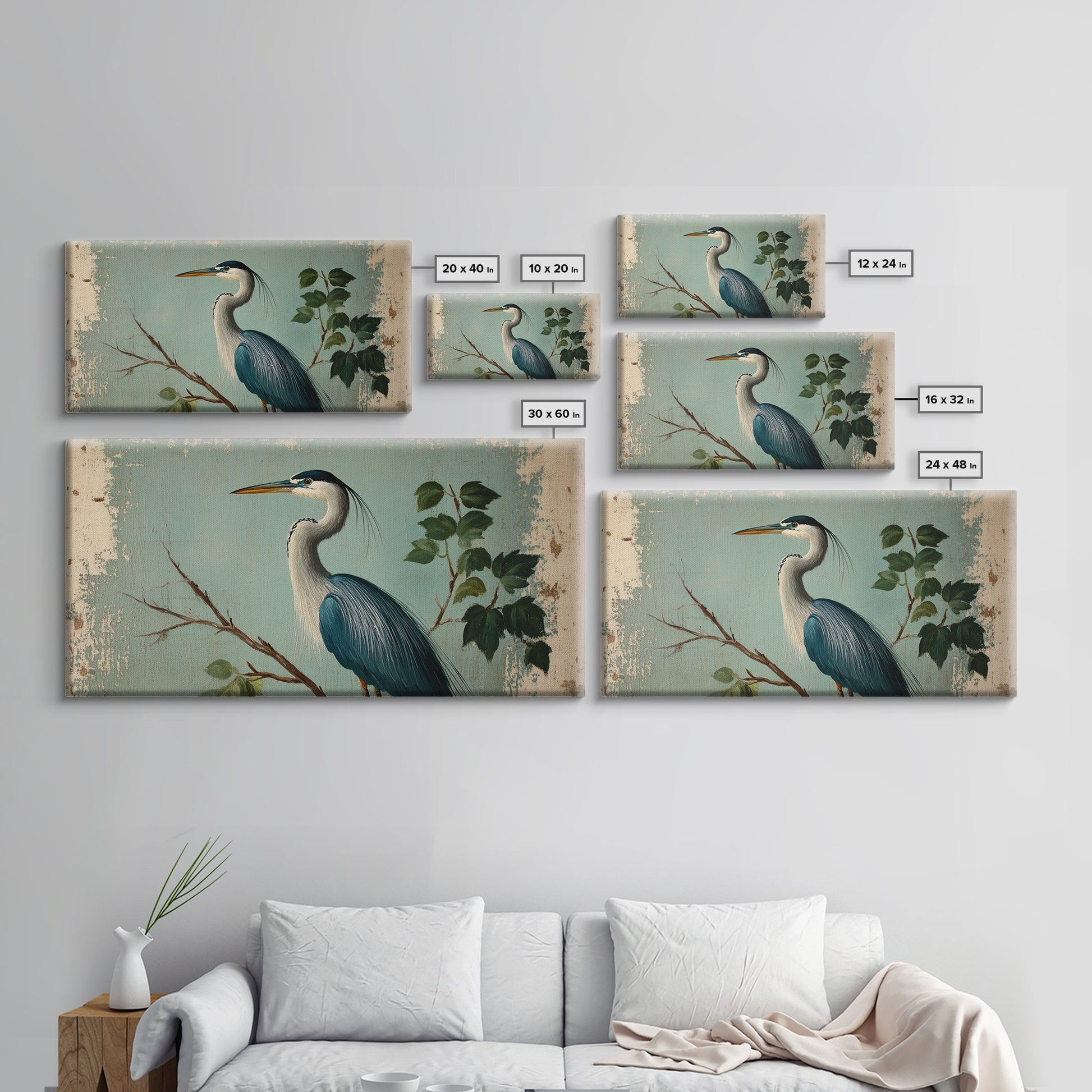 Funky Painting Print of a Blue Heron, Framed Canvas Print, Ready To Hang Wall Art, Great Blue Heron, Extra Large Bird Picture Painting