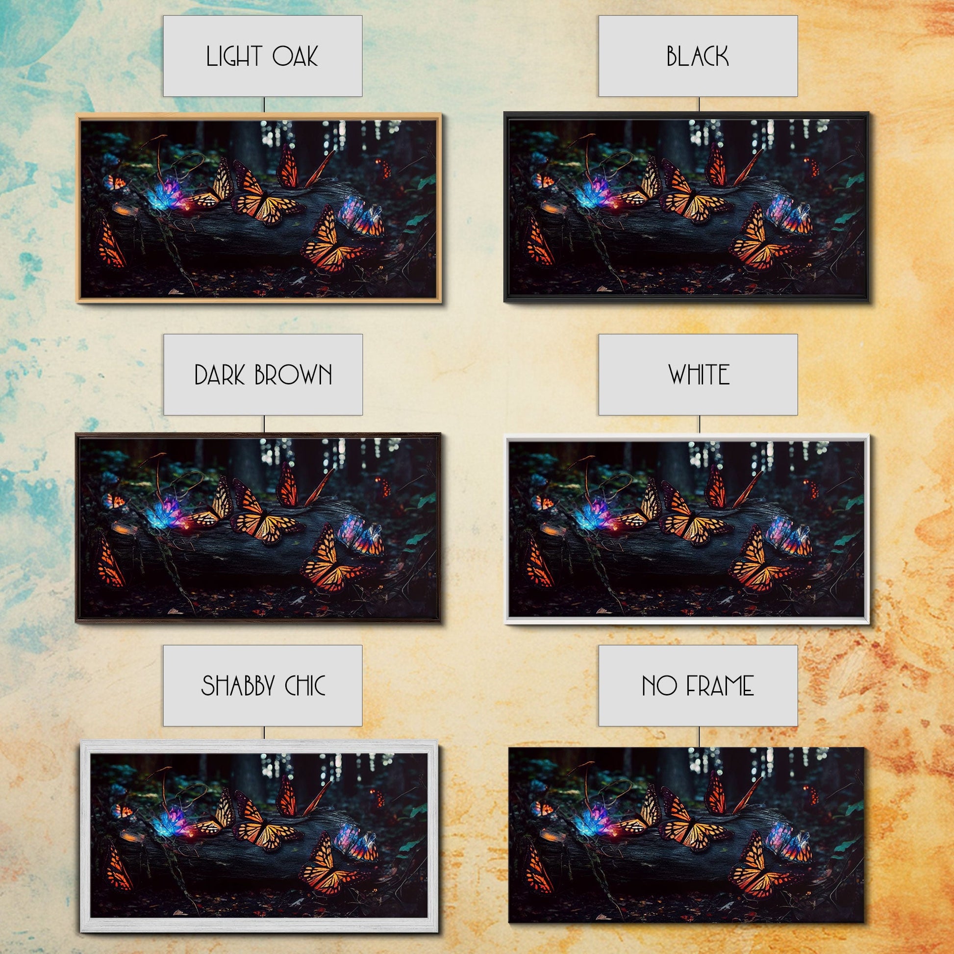 Glowing butterflies, fantasy forest wall art, framed canvas print, mother's day, mom gift, monarch butterflies