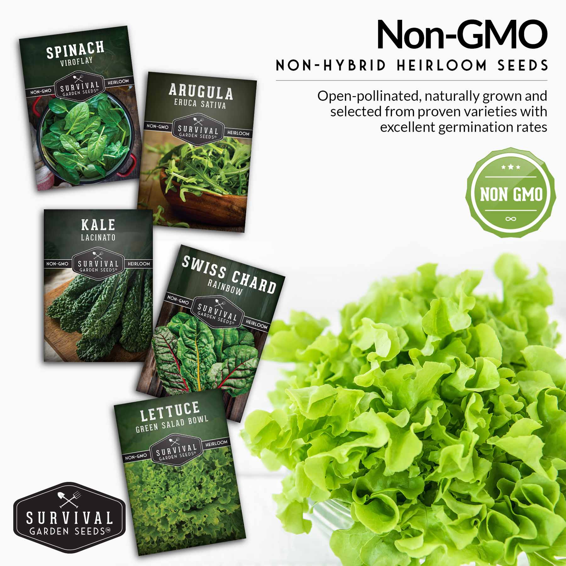 Grow a steady supply of nutritious leafy vegetables with the Greens Seeds Collection from Survival Garden Seeds. This curated mix includes five heirloom varieties known for their flavor, versatility, and dependable performance in gardens of all kinds. Whether you’re growing indoors, in containers, in raised beds, or using hydroponic or aquaponic systems, these greens deliver reliable, nutrient-dense harvests throughout the year.