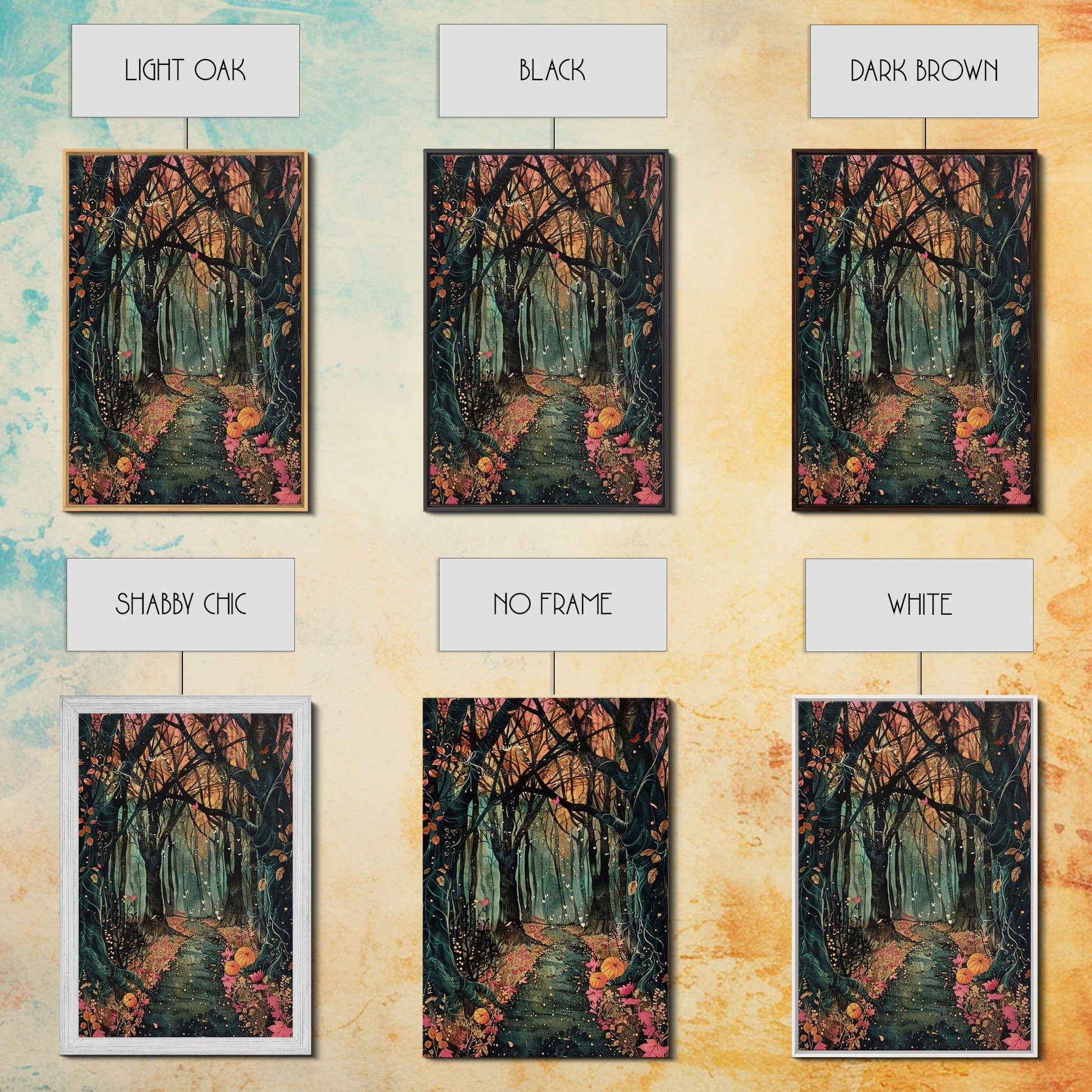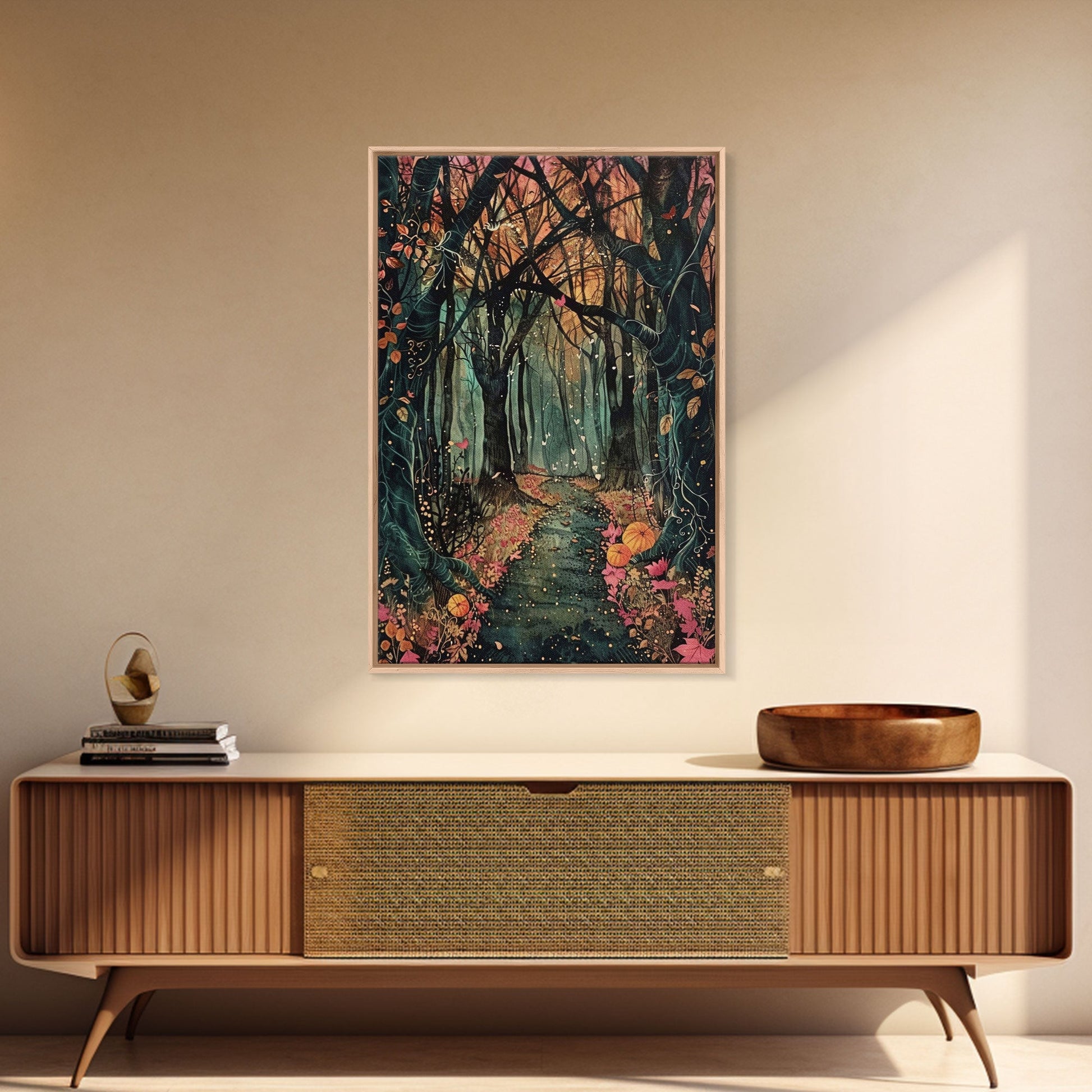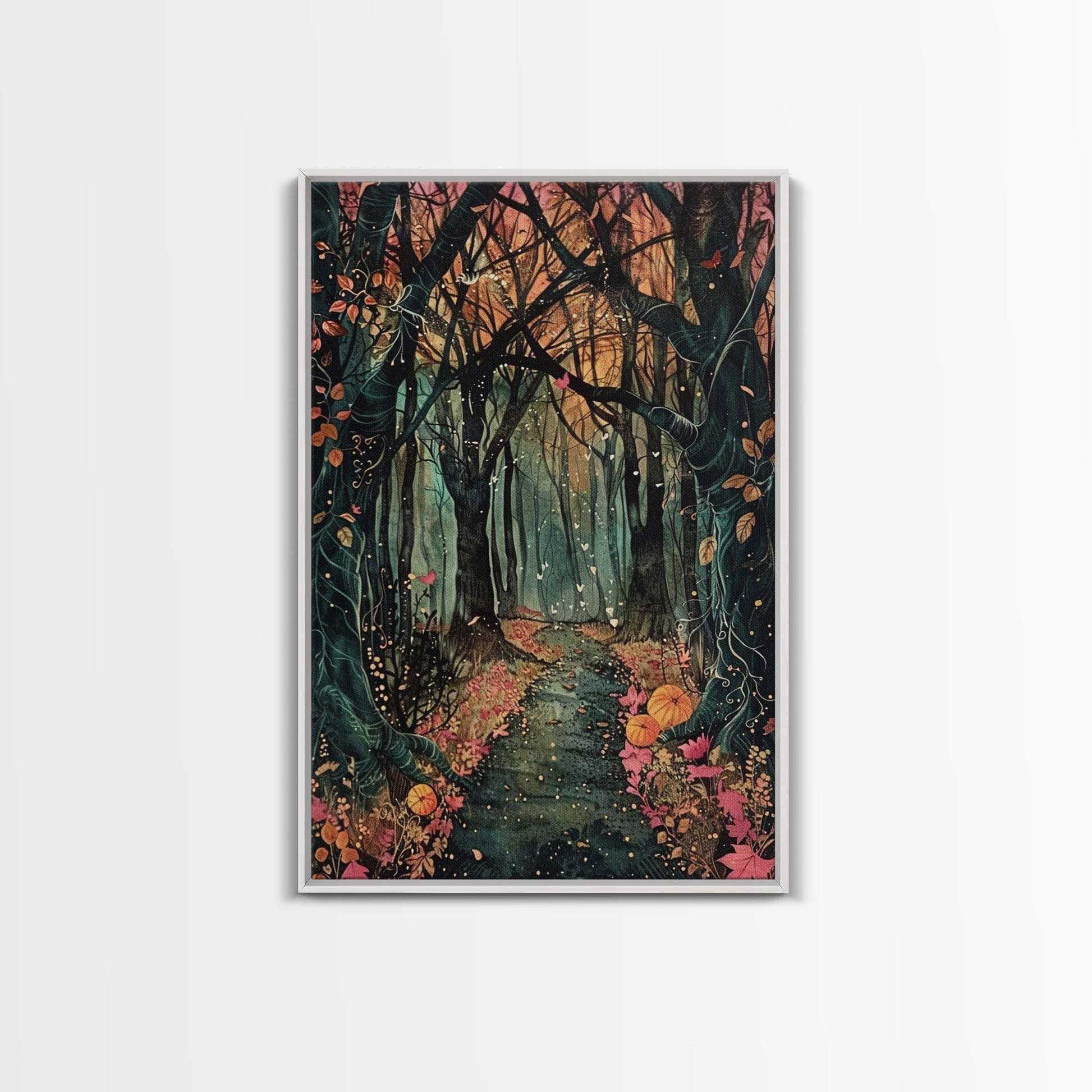 Haunted Pathway Through the Woods Framed Canvas Print, Spooky Forest Art, Halloween Night Scene, Mysterious Path Decor, Framed Canvas Print