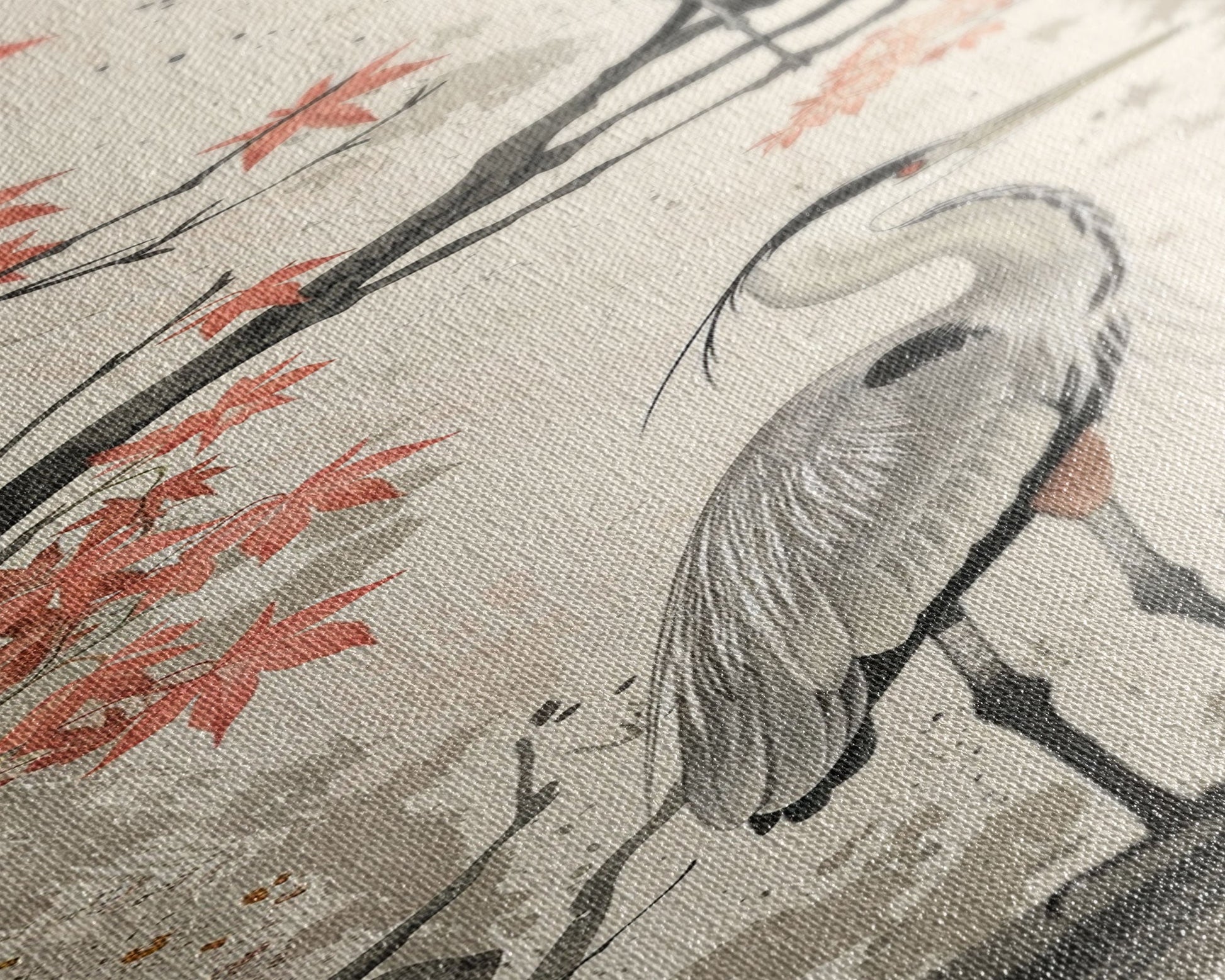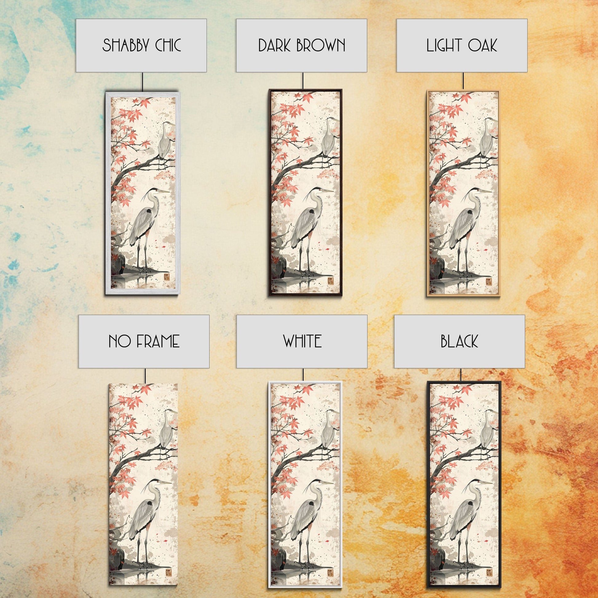 Herons On Autumn Branches Skinny Art Wood Block Print Japanese Style Art Framed Canvas Print Tall Art Ukiyo-e Art