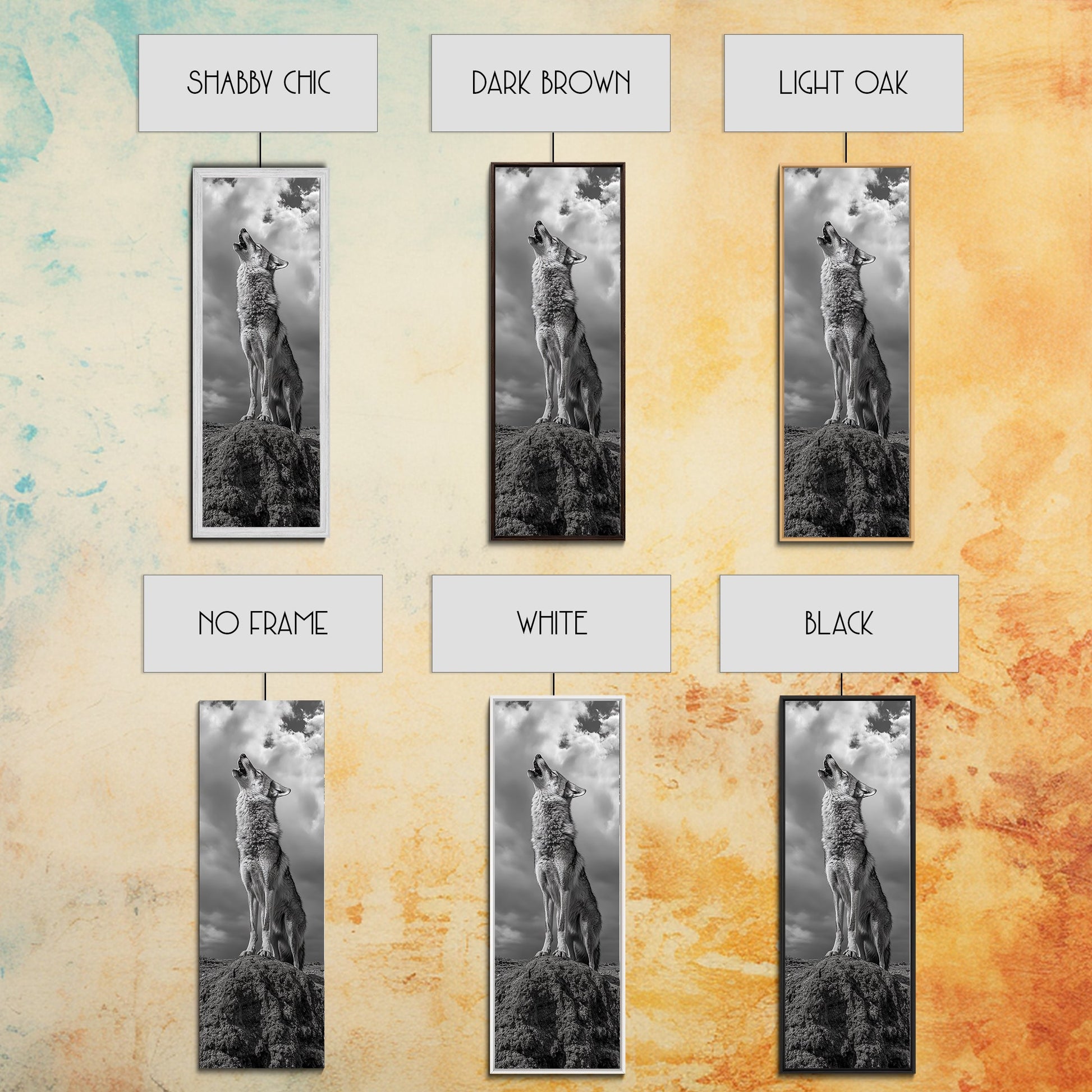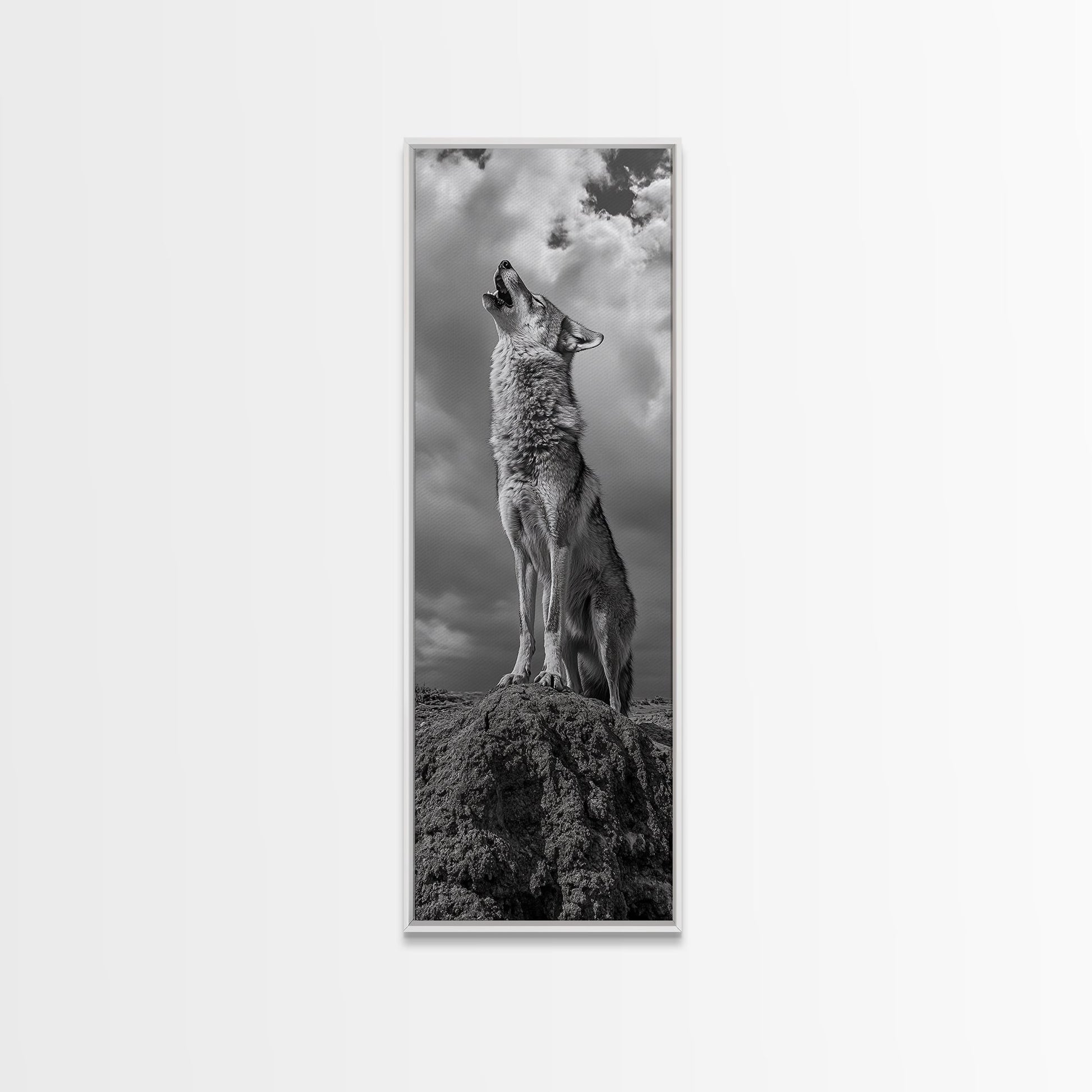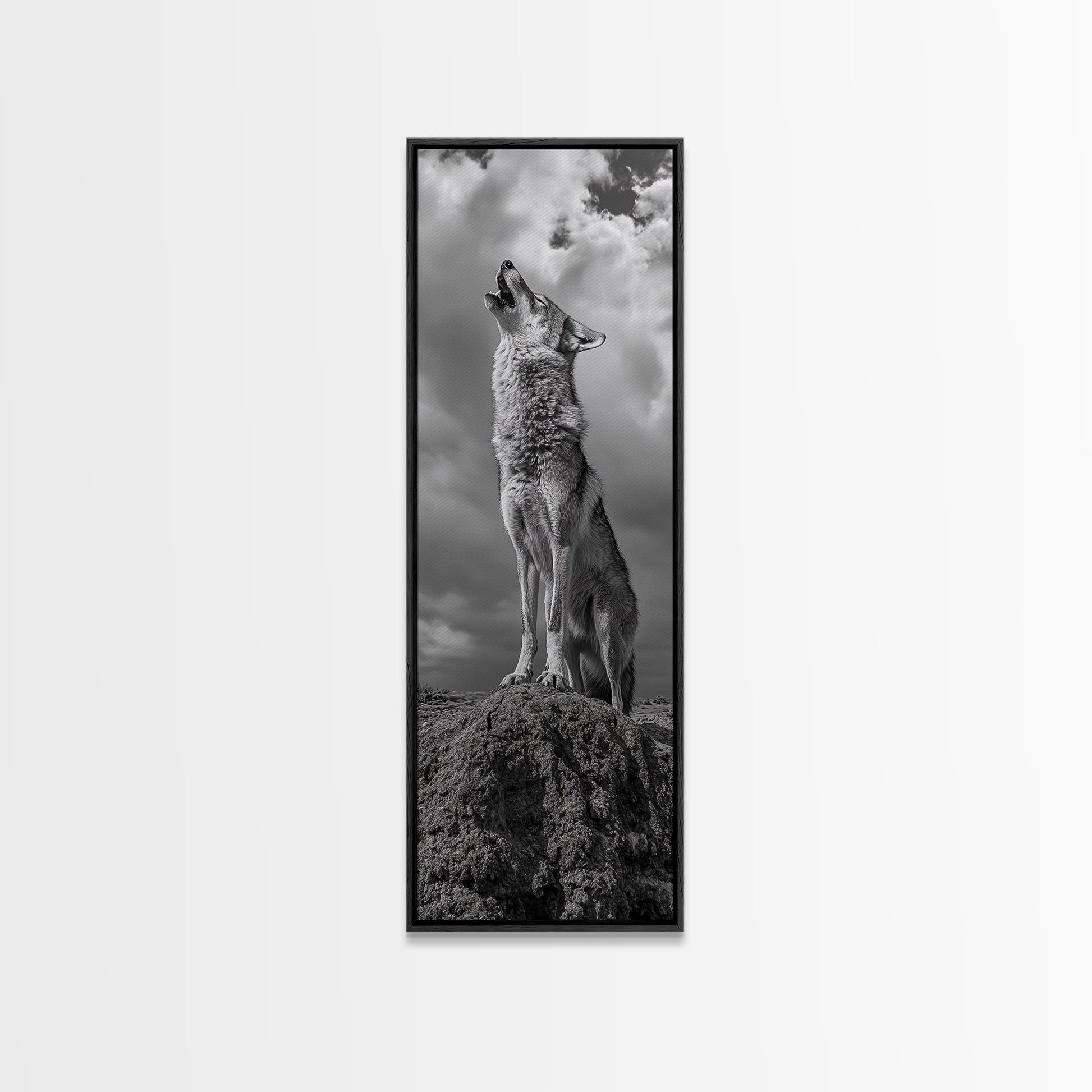Howling Coyote, Framed Canvas Print, southwest wall art, rustic wall art, wildlife photography, desert landscape art, cowboy art, boho home decor