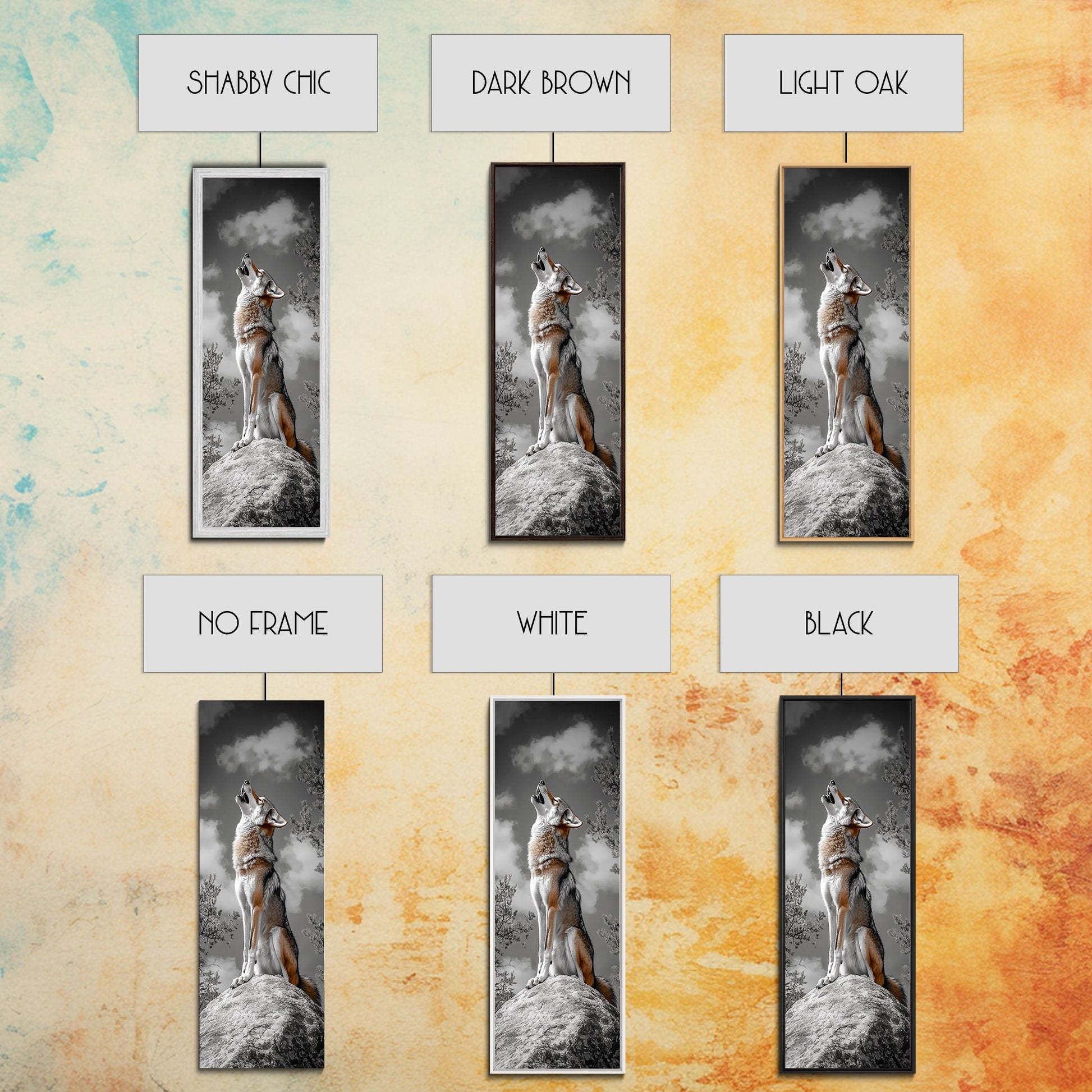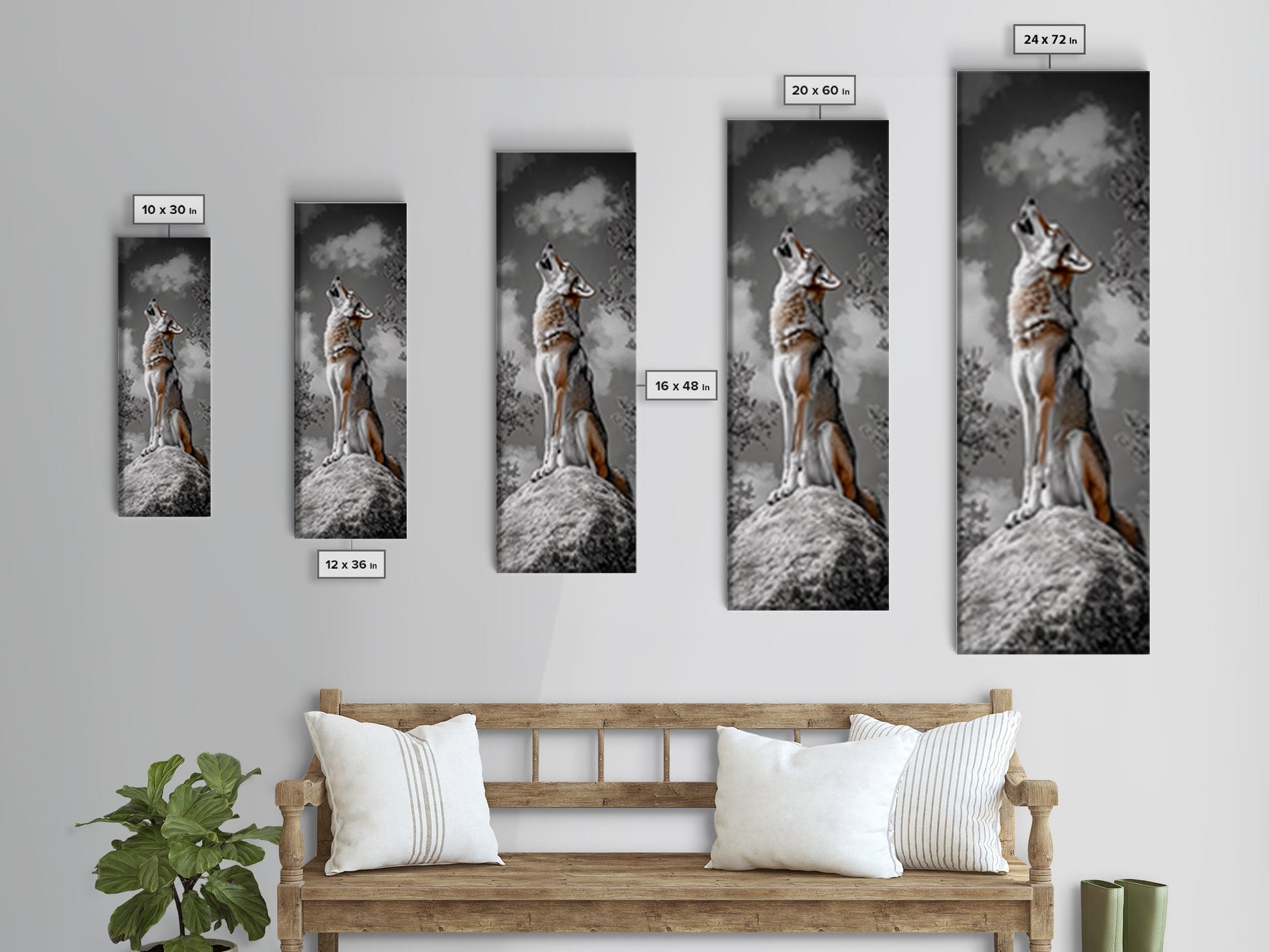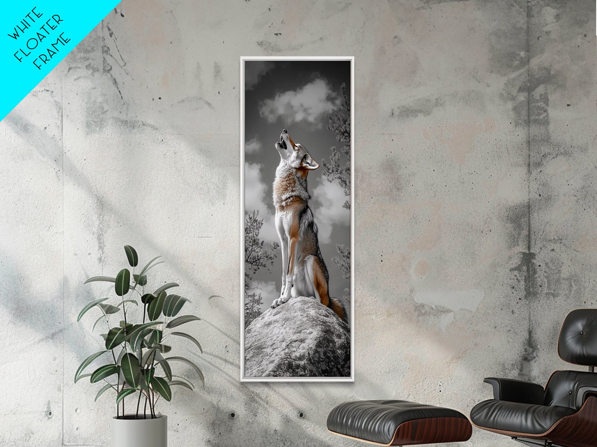 Howling Coyote on Rock Framed Canvas Print | Rustic Western Wall Art | Wildlife Painting | Moody Art | Farmhouse Decor | Gift Idea