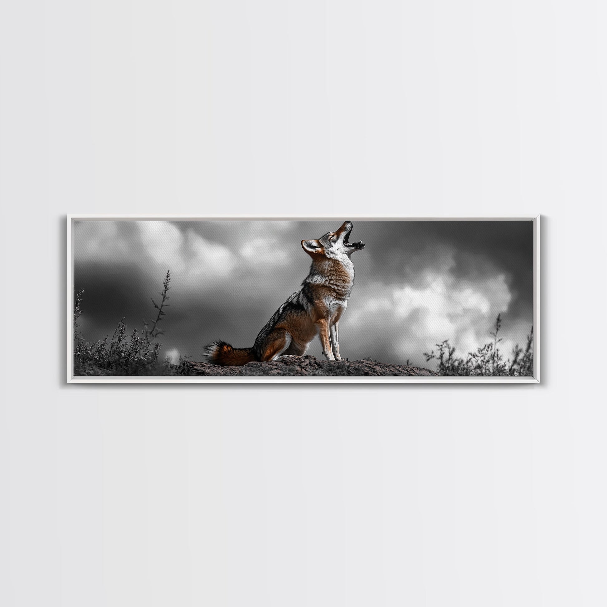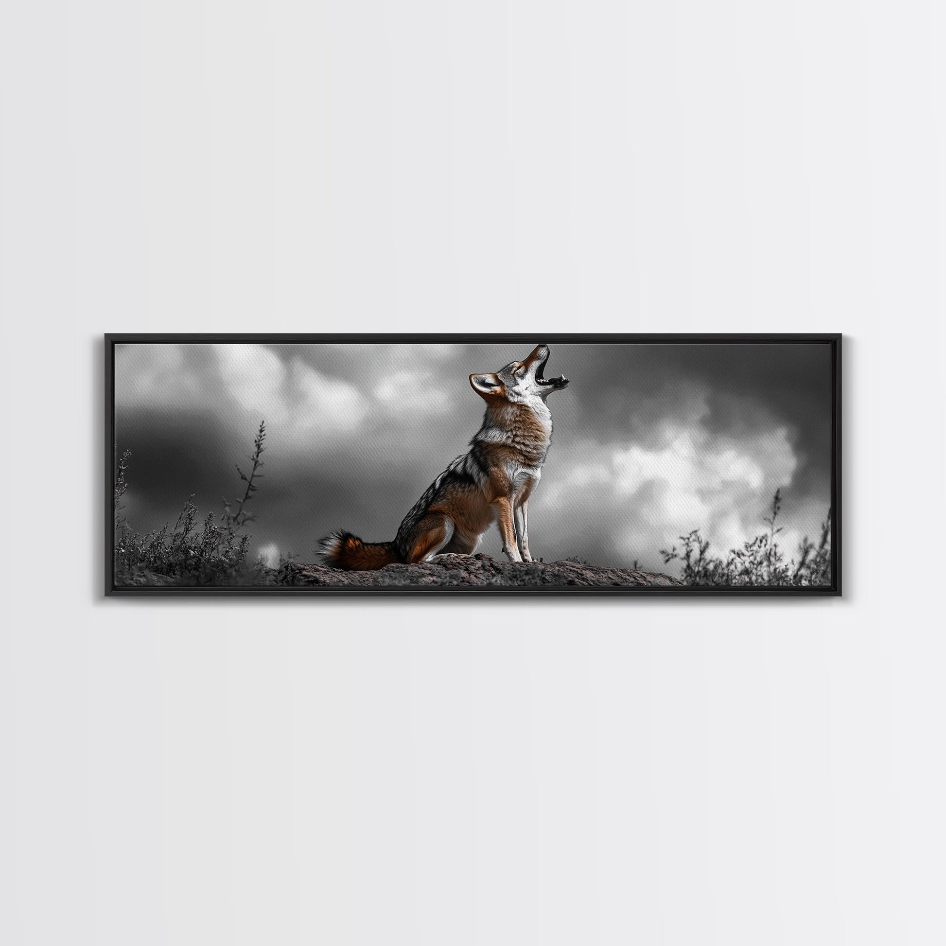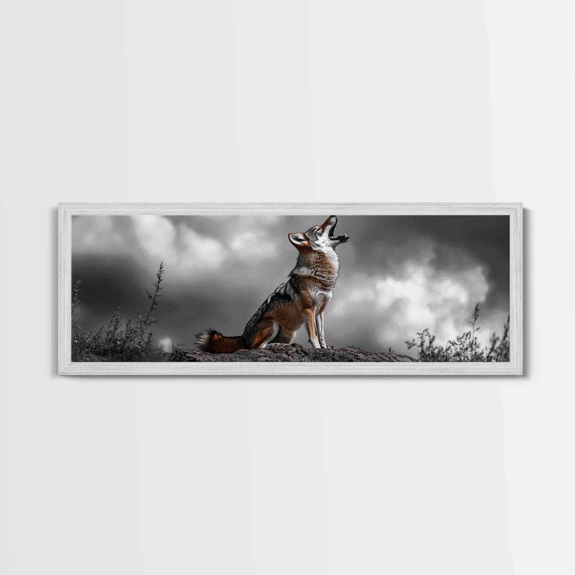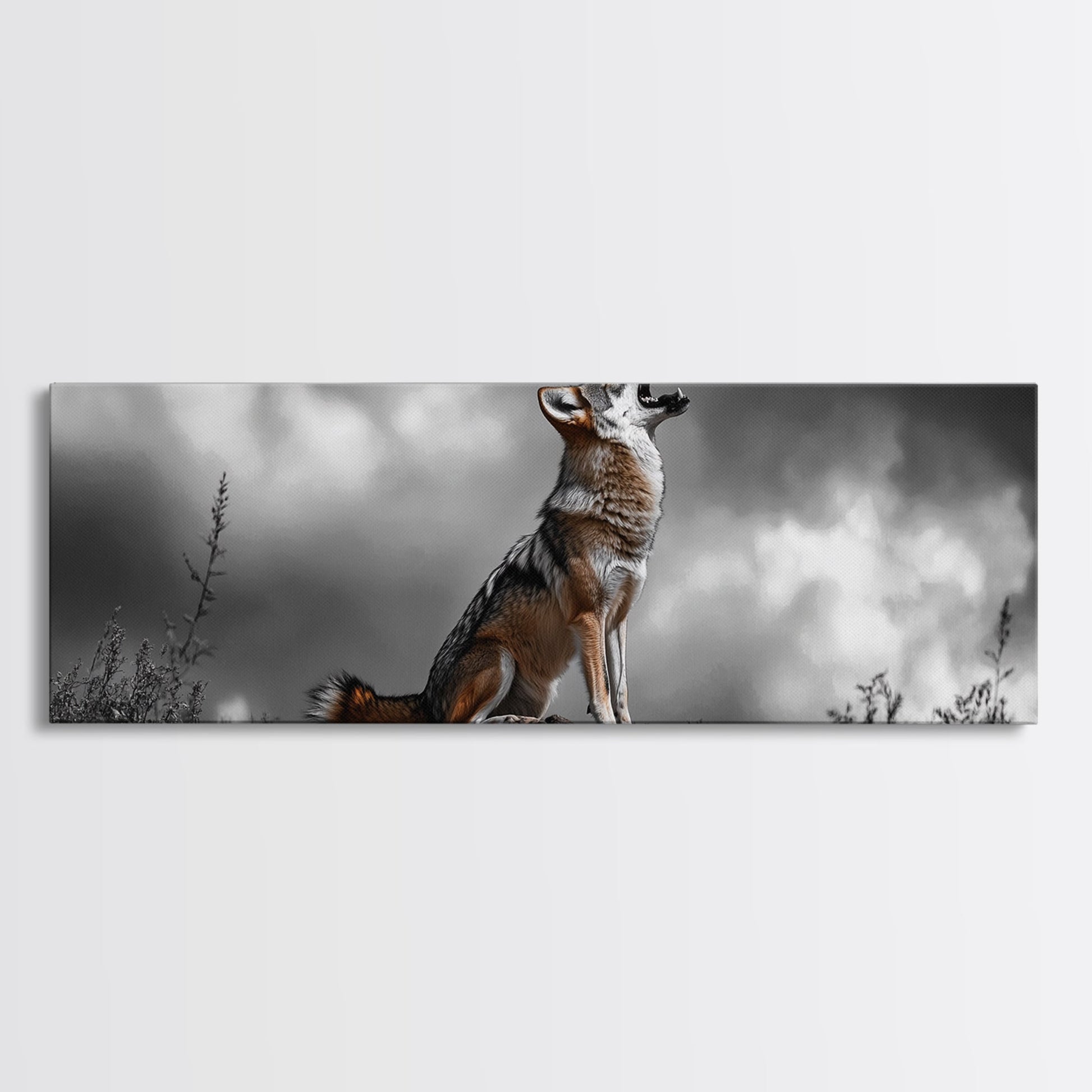 Howling Coyote, Wildlife Art, Nature Wall Art, Rustic Decor, Moody Art, Above Sofa Art, Horizontal Wall Art, Canvas Print