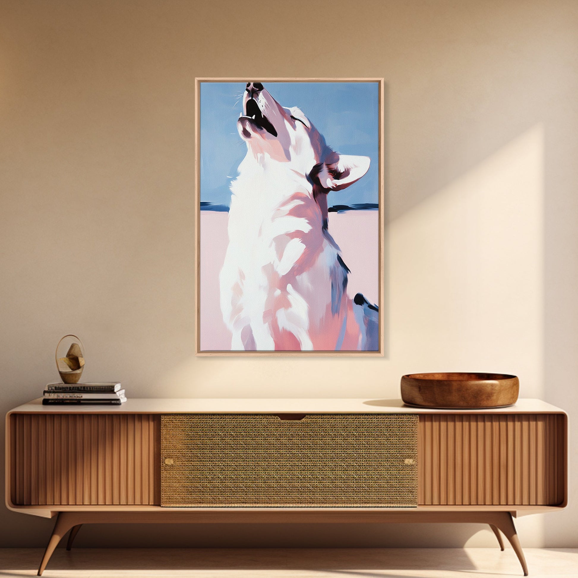 Howling Wolf, moody art, rustic decor, southwest wall art, zen wall art, framed canvas print, wabi sabi art, forest painting