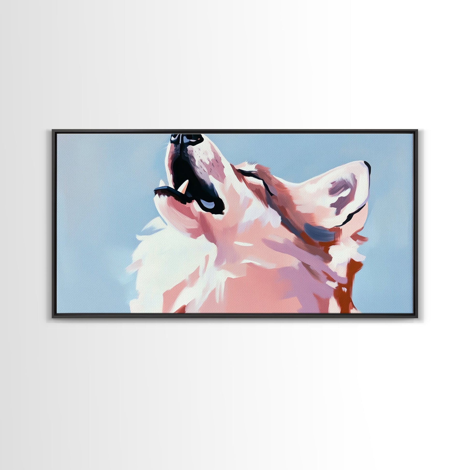 Howling Wolf, Wildlife Art, Nature Print, Blue Sky, Framed Canvas Print, Rustic Wall Art, Lodge Decor, Animal Lover Gift