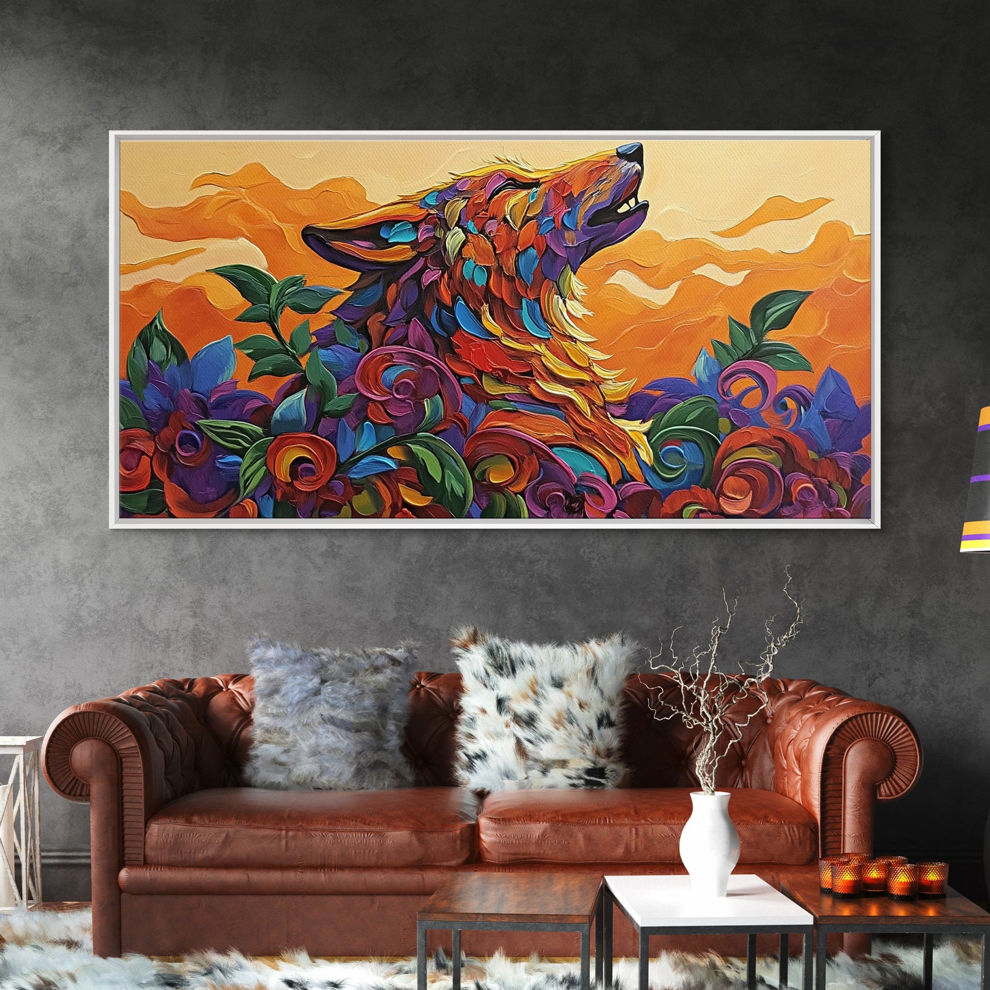 Howling Wolf, wolf painting, southwestern wall art, dark romance painting, framed canvas print, moody art, above bed wall art