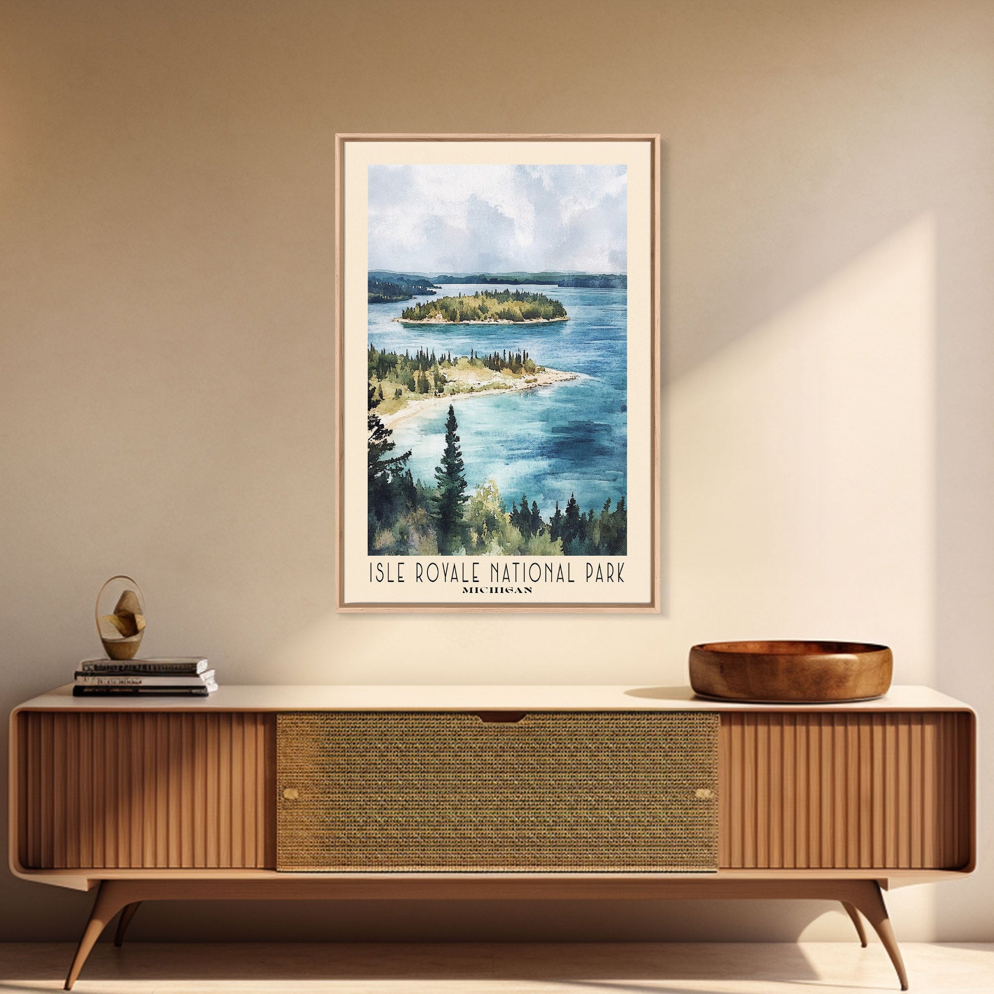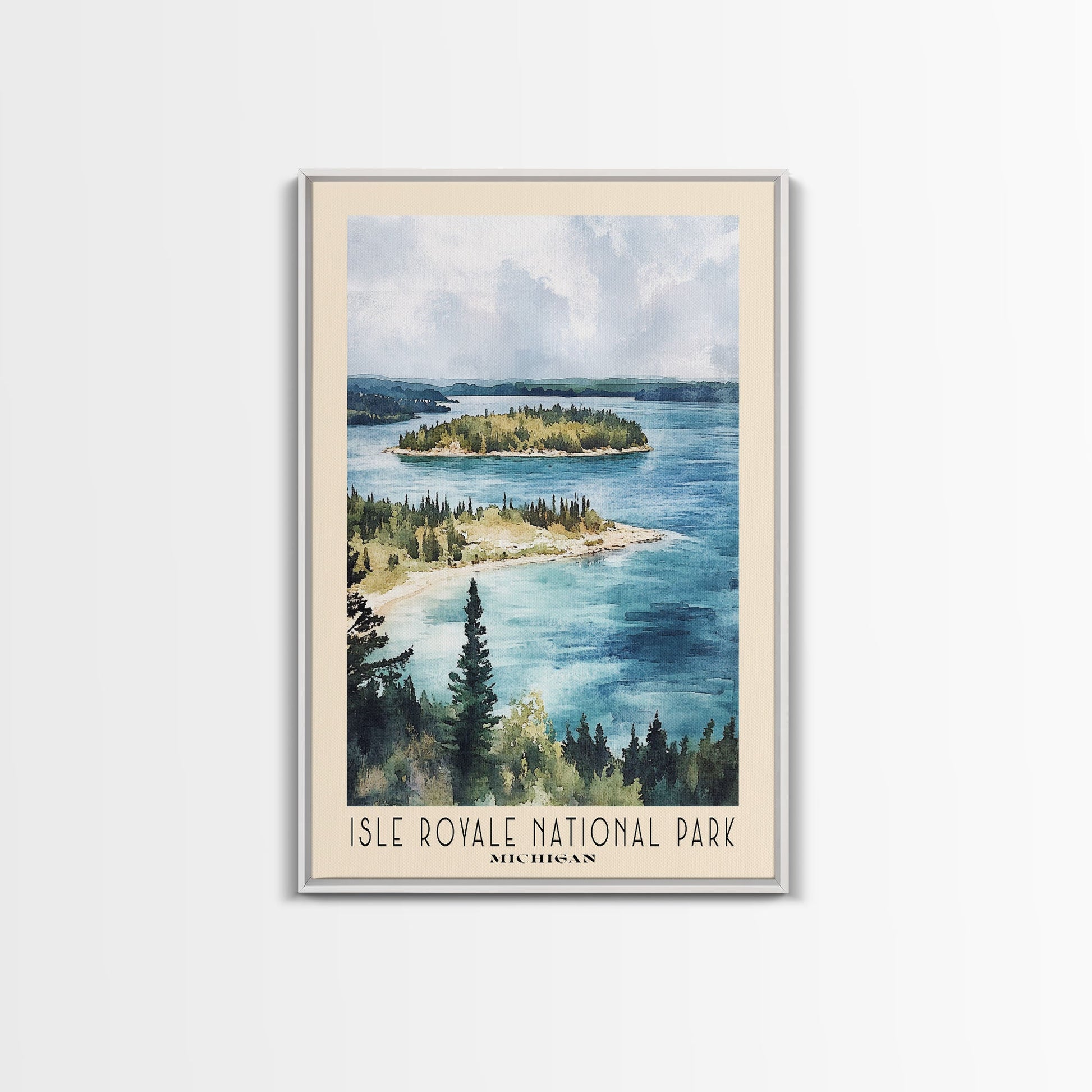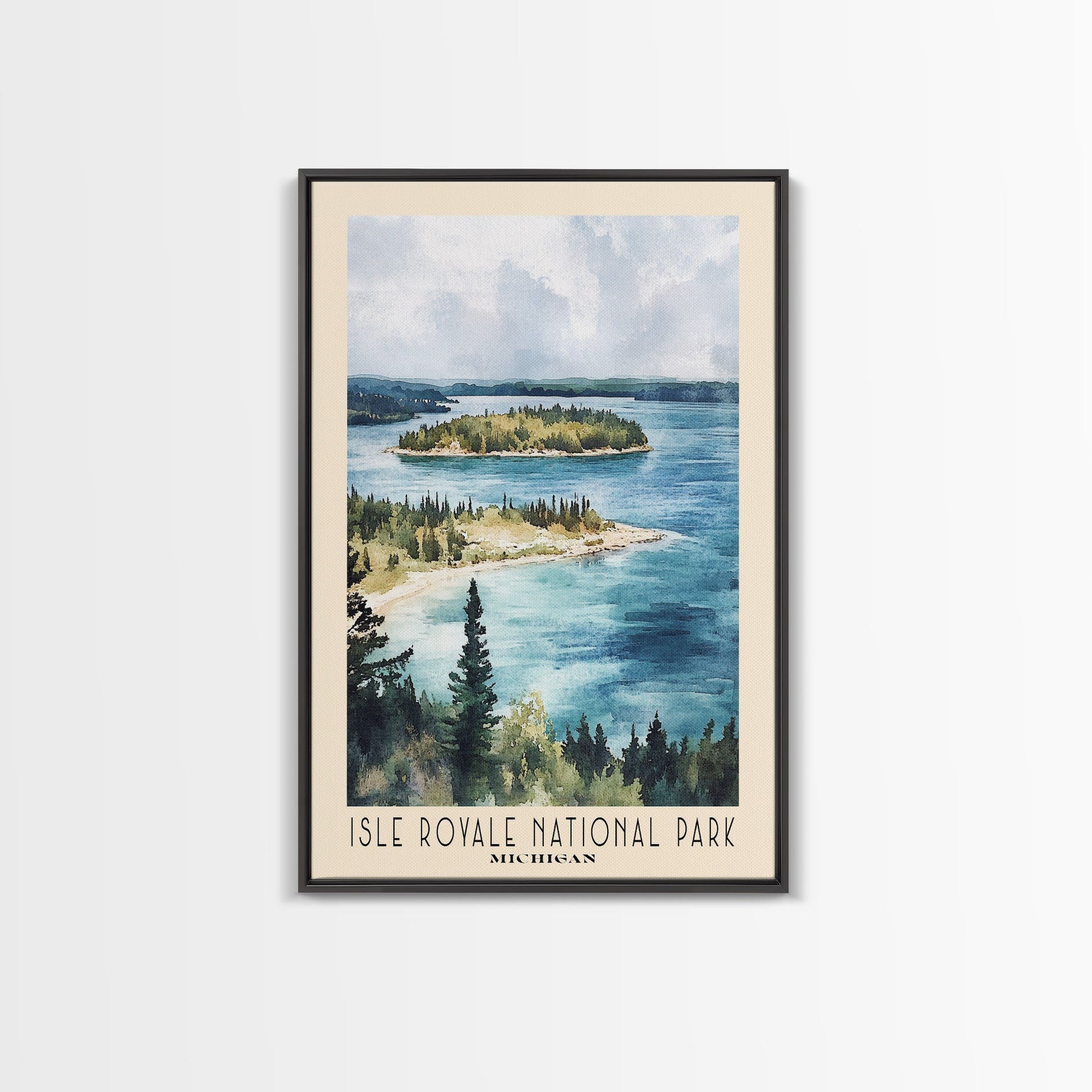 Isle Royale National Park, Michigan Watercolor Print, Vacation Gift, Michigan Wall Art, Beach Painting, Beach Decor, Large Wall Art, Wood Frame Art