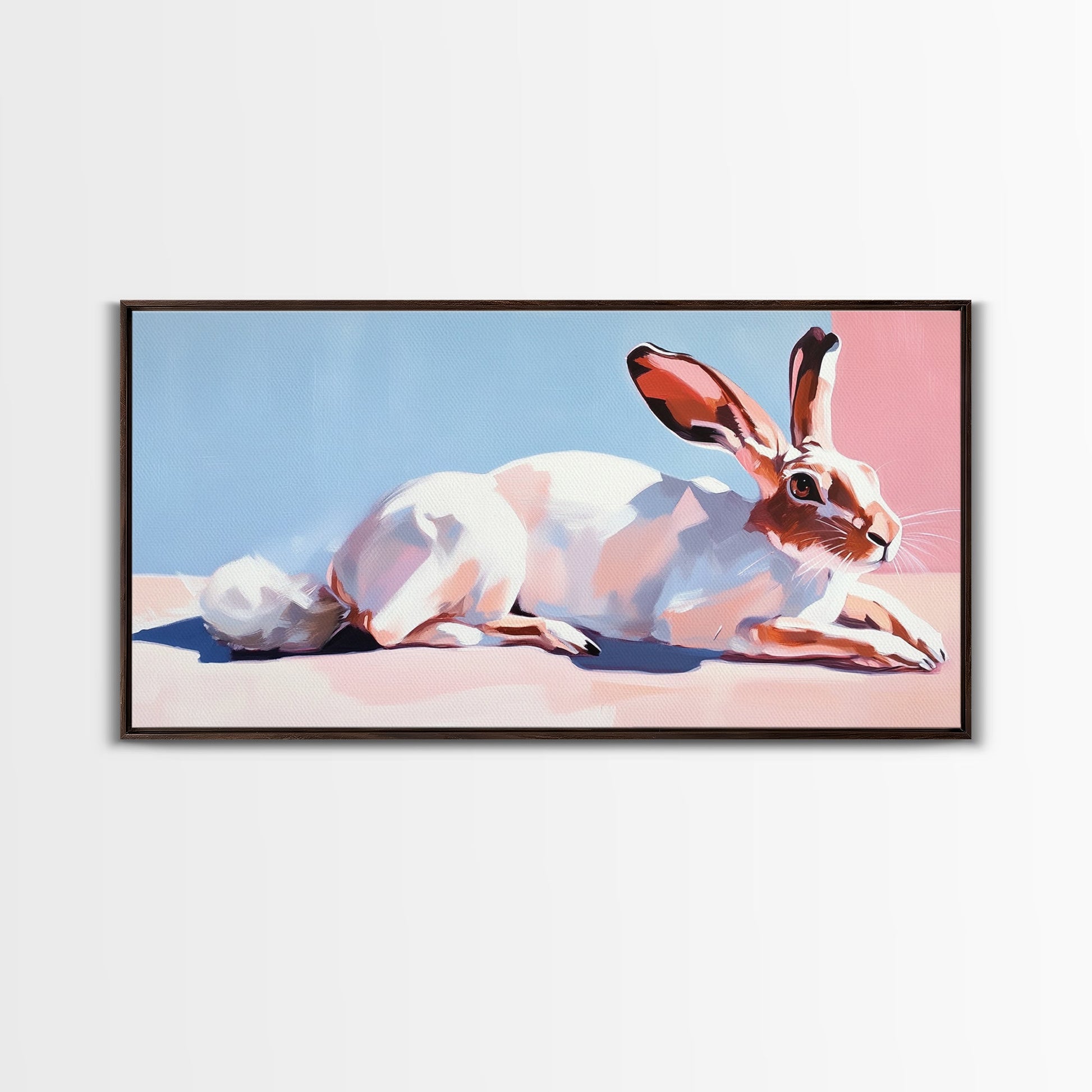 Jackrabbit, desert wildlife, whimsical art, framed canvas print, pink wall art, gift idea, light pink wall art, above sofa art