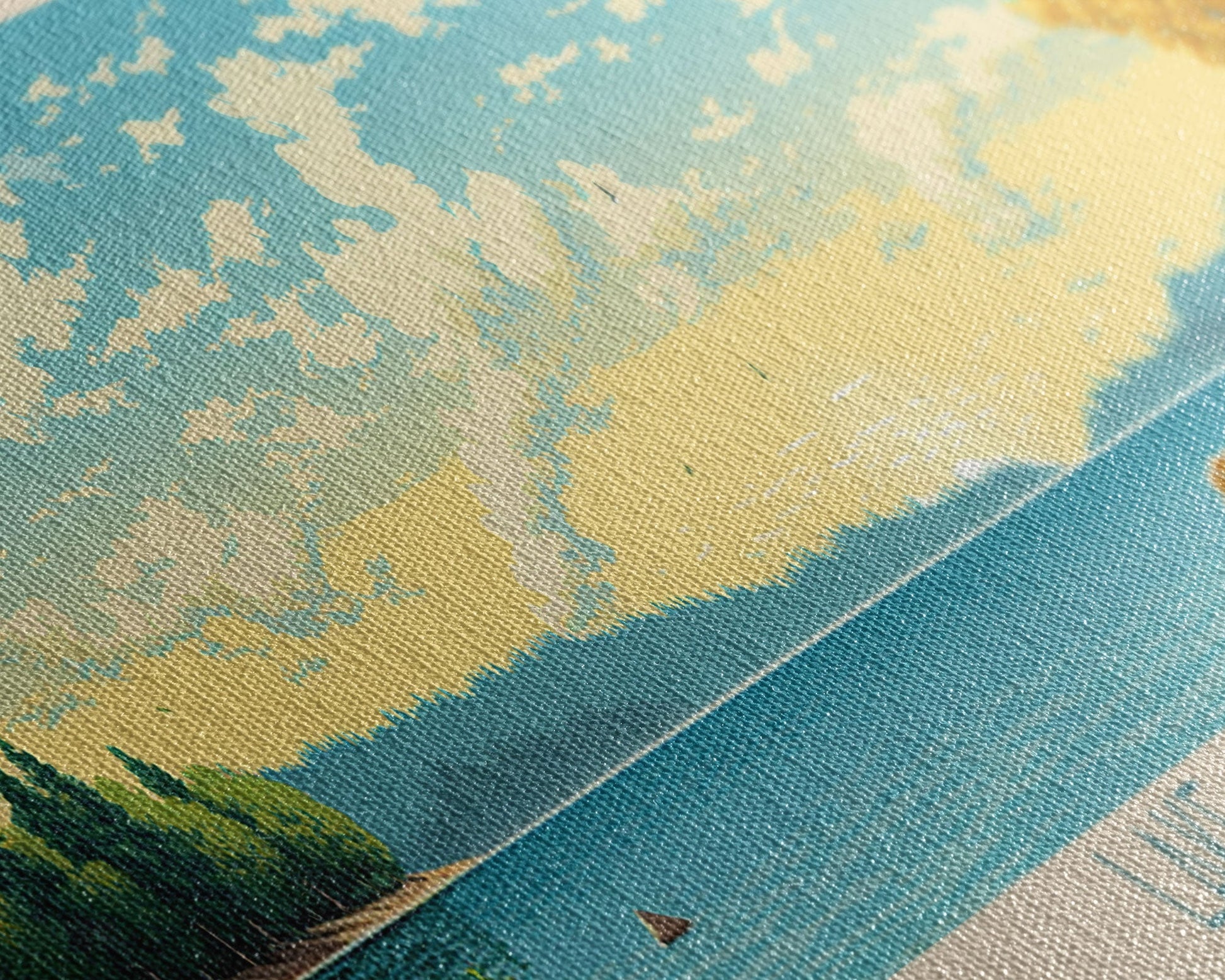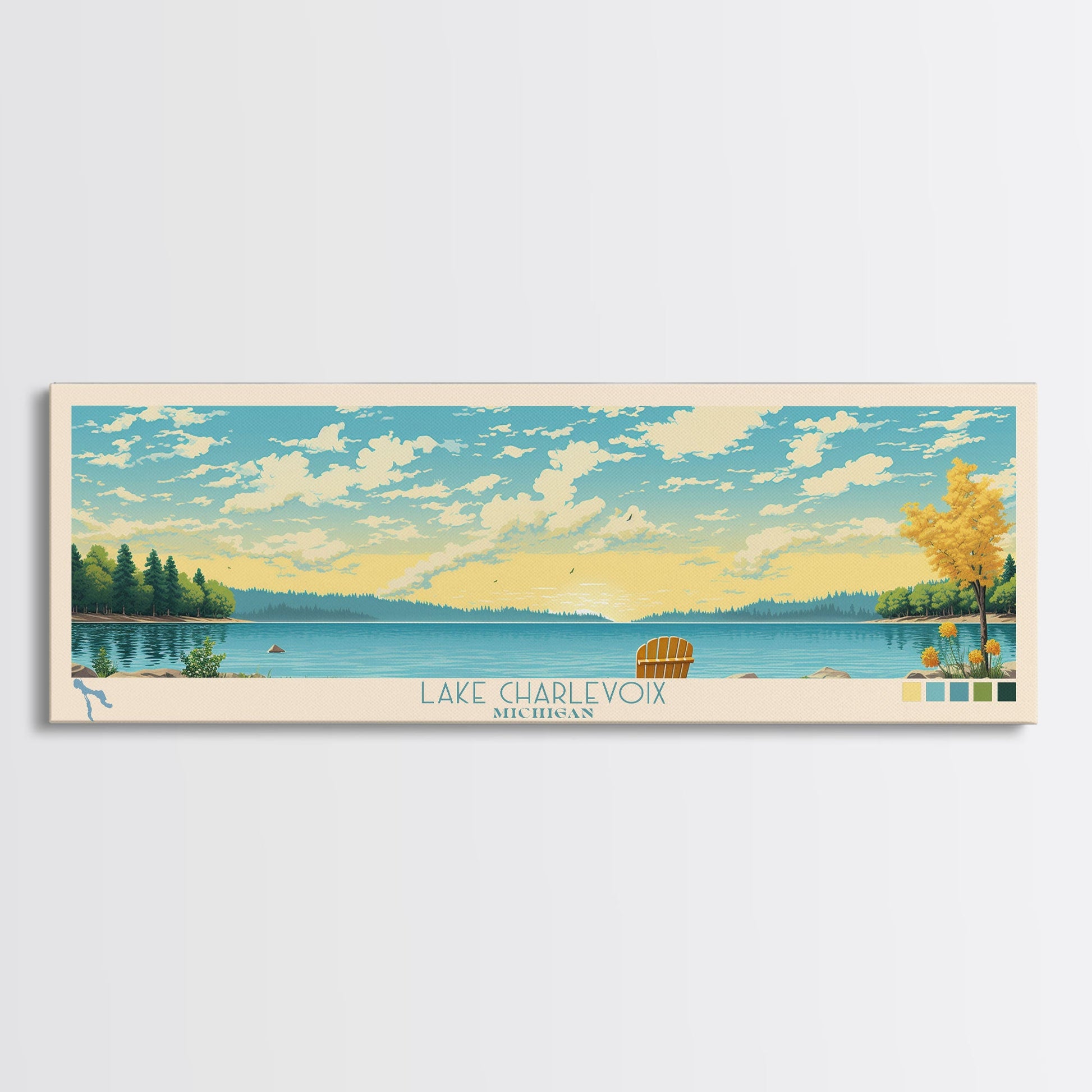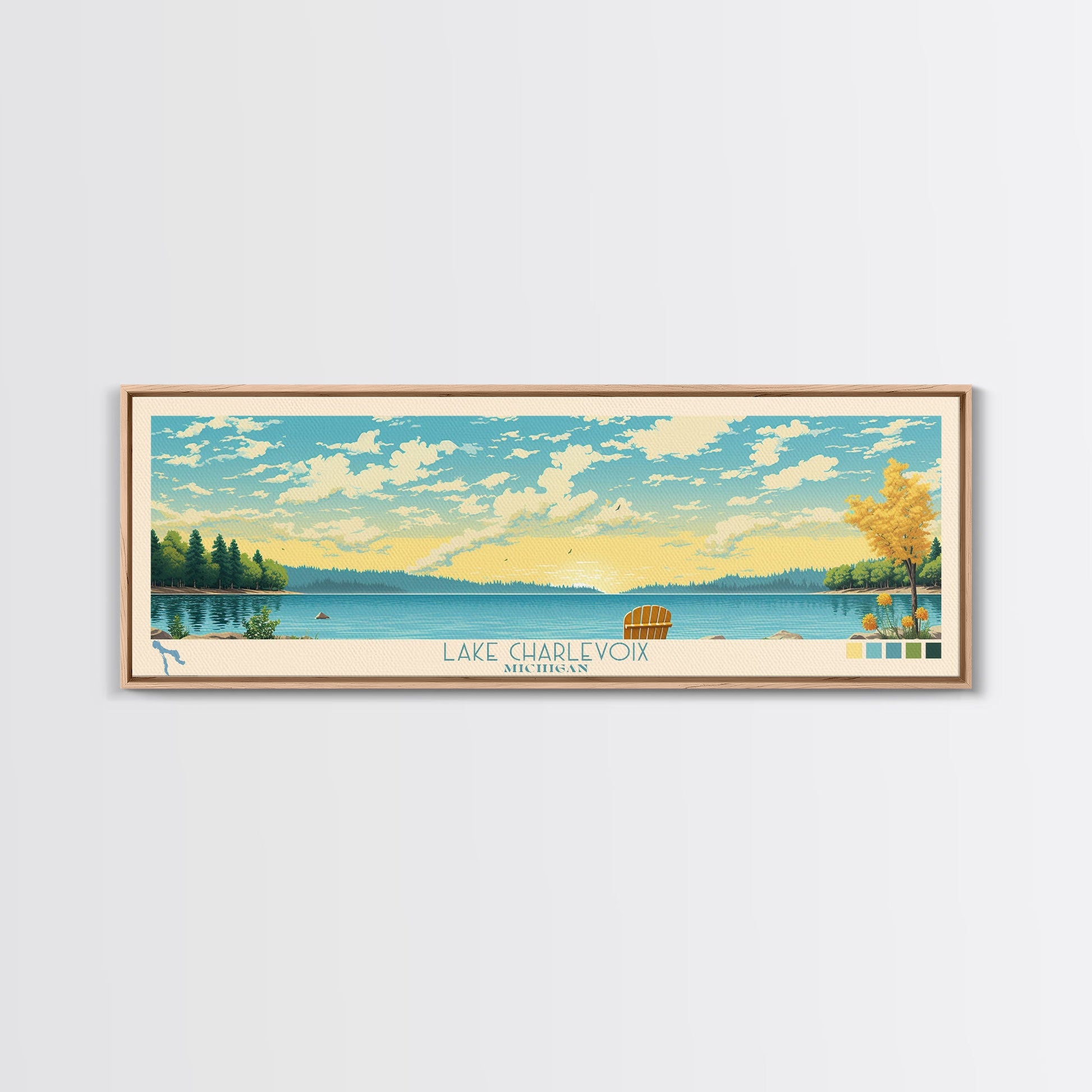 Lake Charlevoix Michigan Framed Canvas Print, Panoramic Wall Art, Midcentury Modern, Pop Art, Bedroom Decor, Travel Poster, Living Room Art