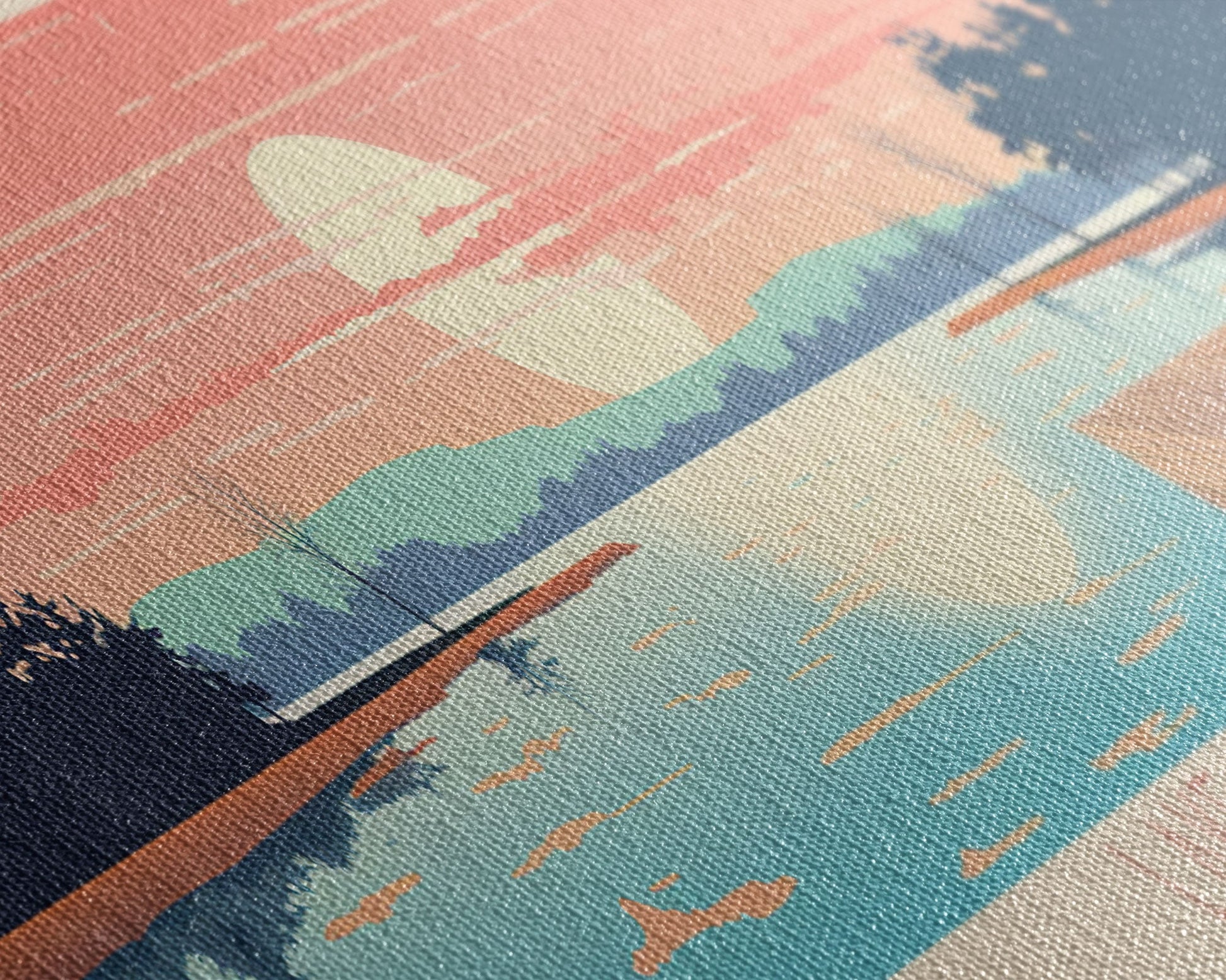 Lake Muskegon Michigan Framed Canvas Print, Panoramic Wall Art, Midcentury Modern, Pop Art, Living Room Decor, Travel Poster