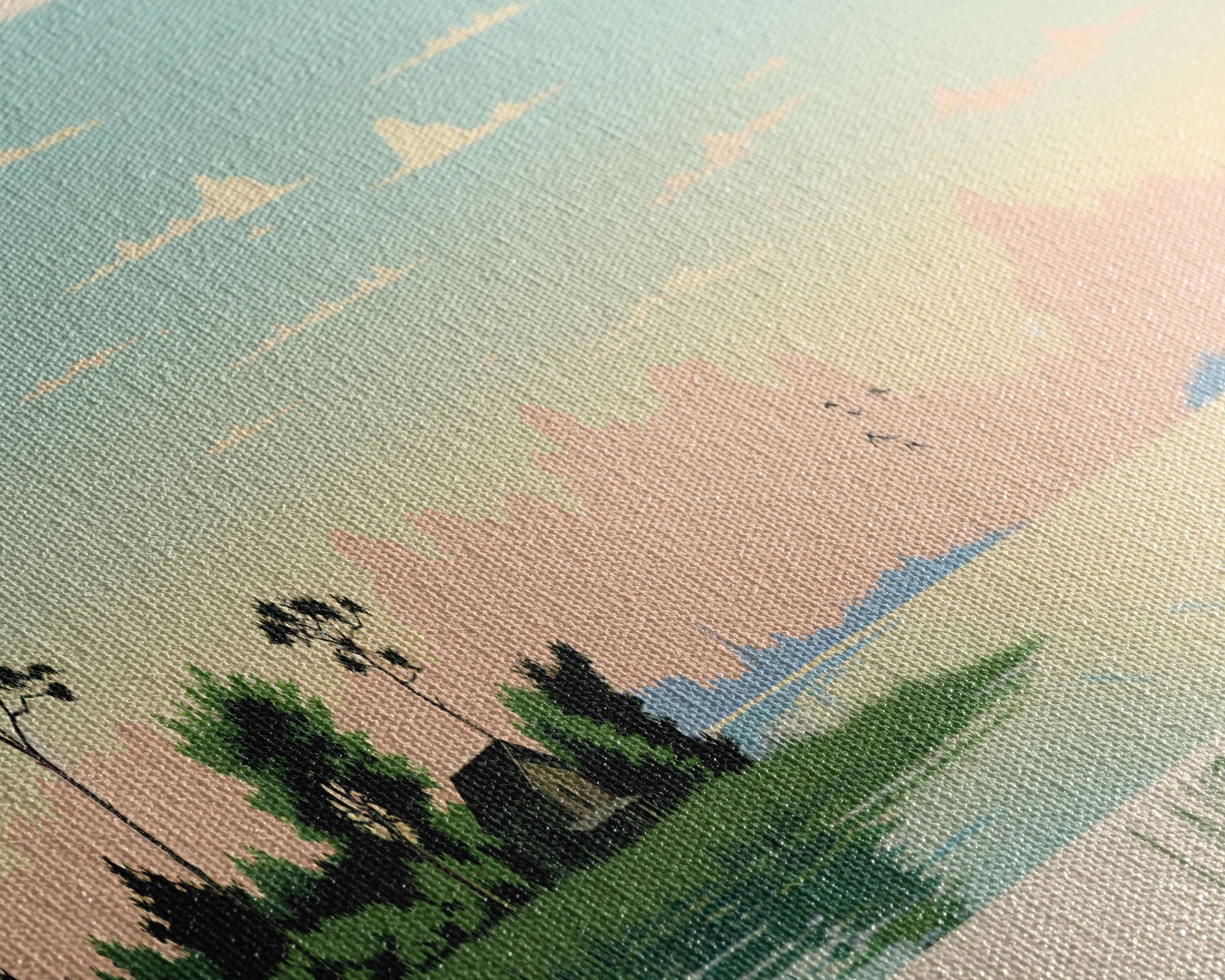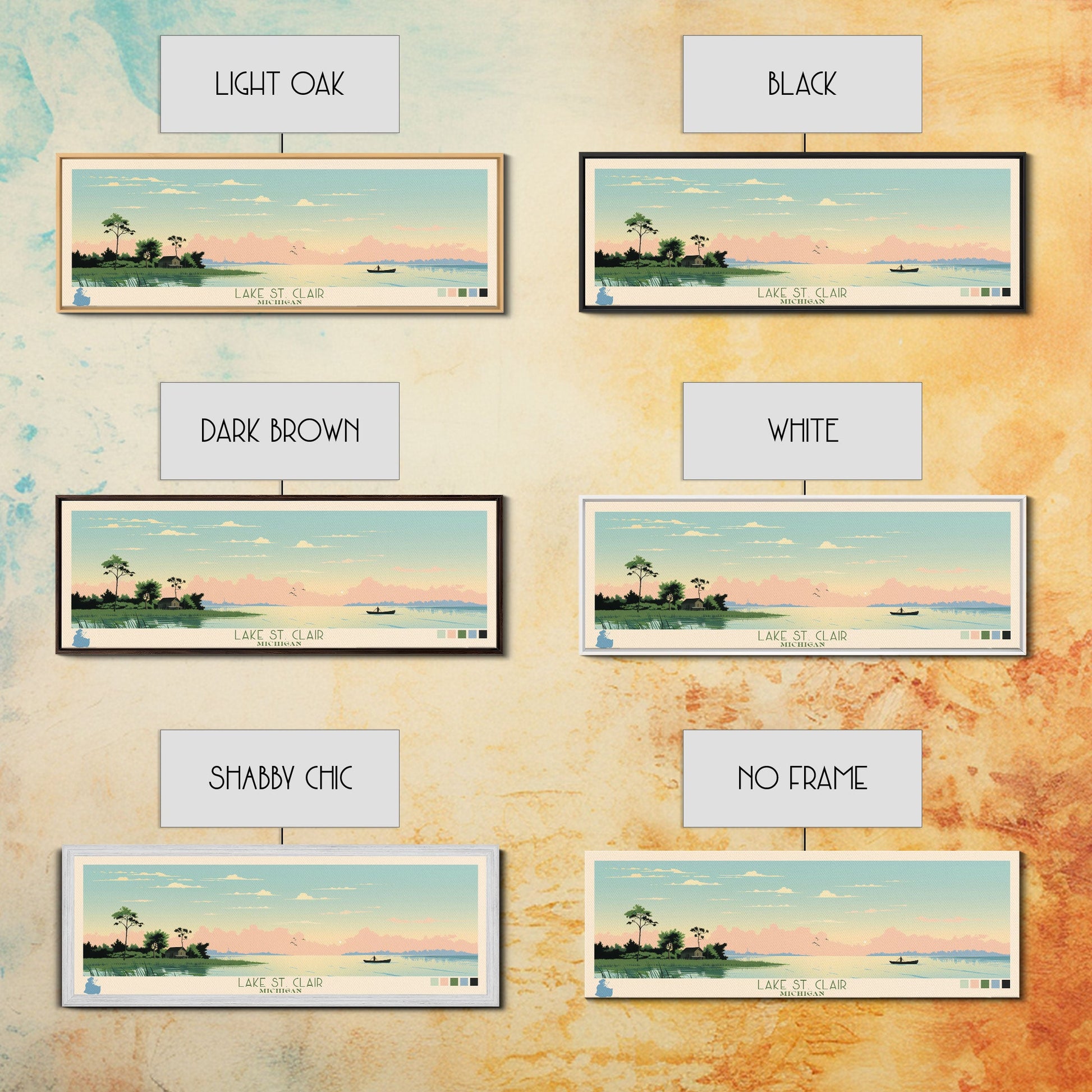 Lake St. Clair Michigan Framed Canvas Print, Panoramic Wall Art, Midcentury Modern, Pop Art, Bedroom Art, Travel Poster, Lake House Decor