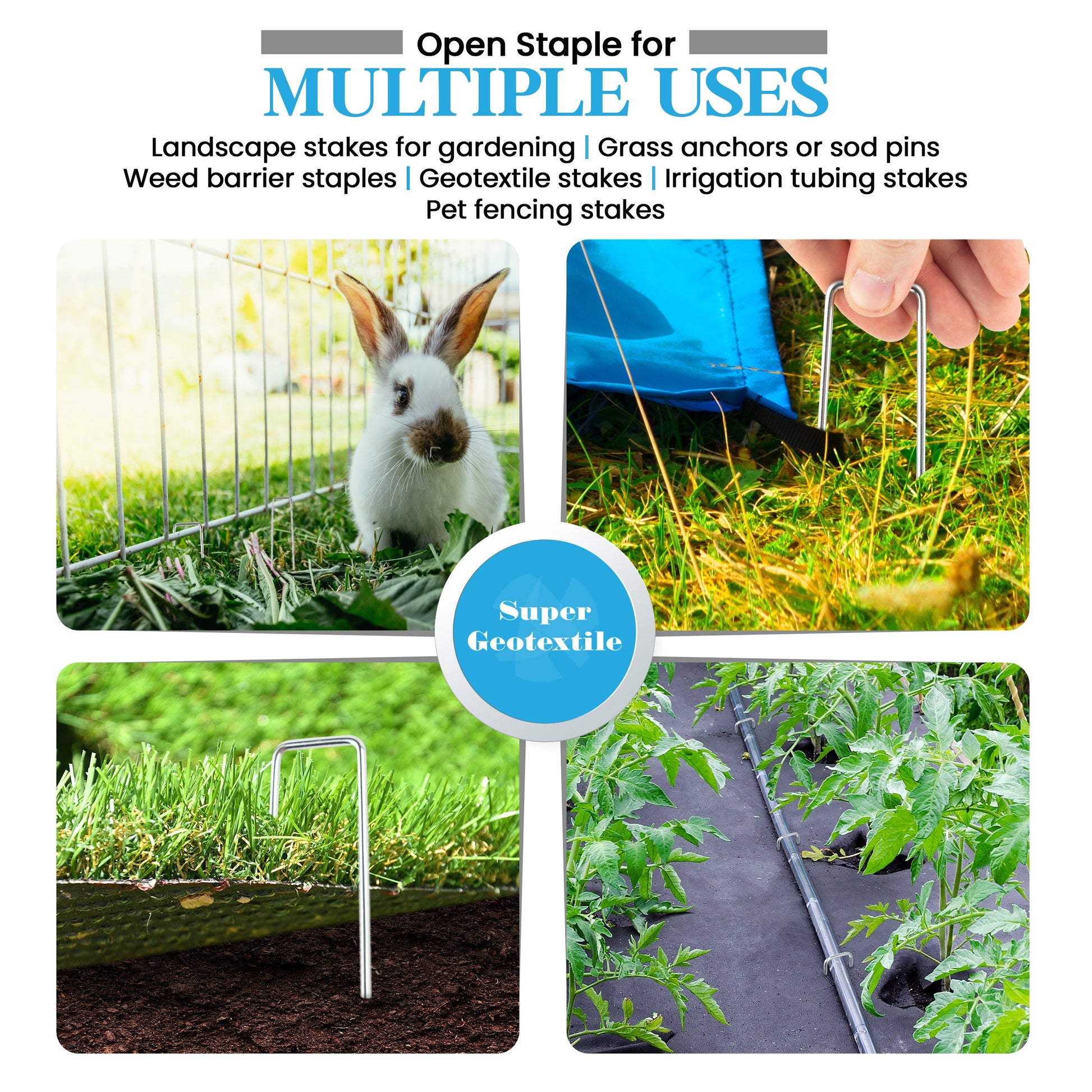 Landscape Staples - Heavy Duty 11 Gauge Galvanized U-Shaped Sod Pins for Weed Barrier and Landscaping