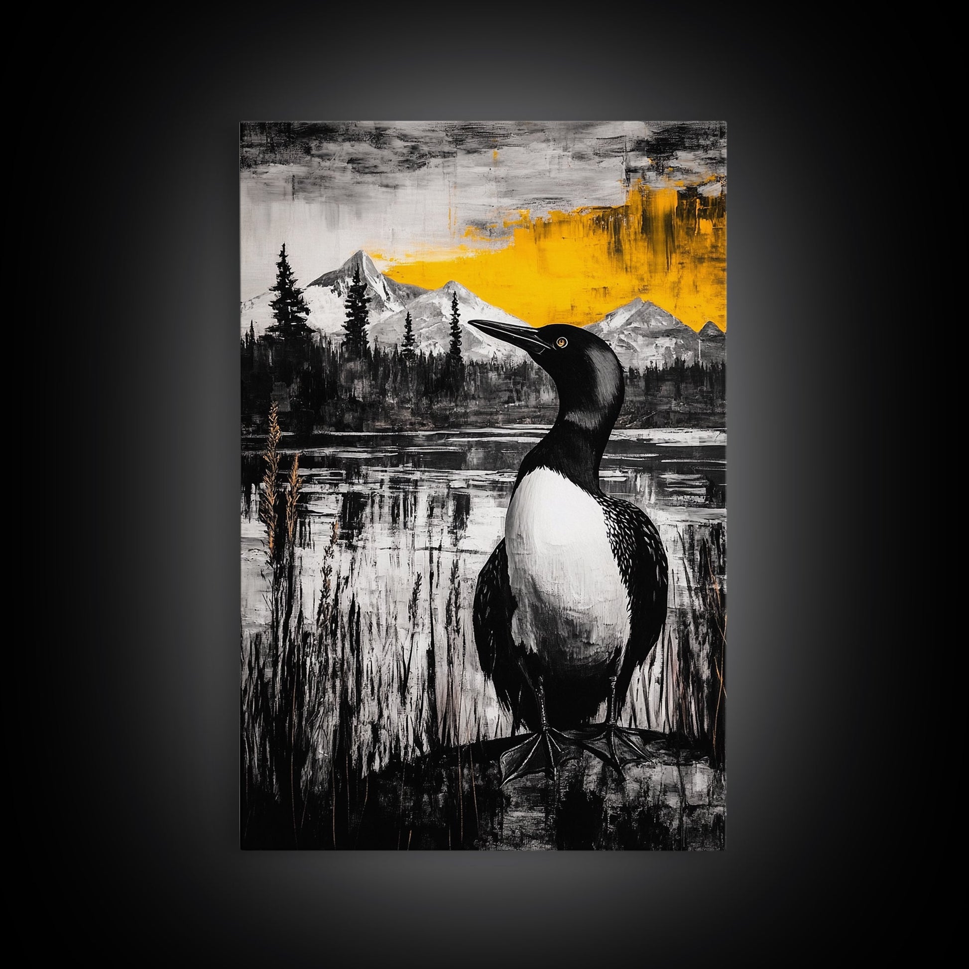 Loon, Mountain Sunset, Wildlife Wall Art, Canvas Print, Fall Decor, Rustic Home, Cabin Aesthetic, Nature Photography, Lodge Art