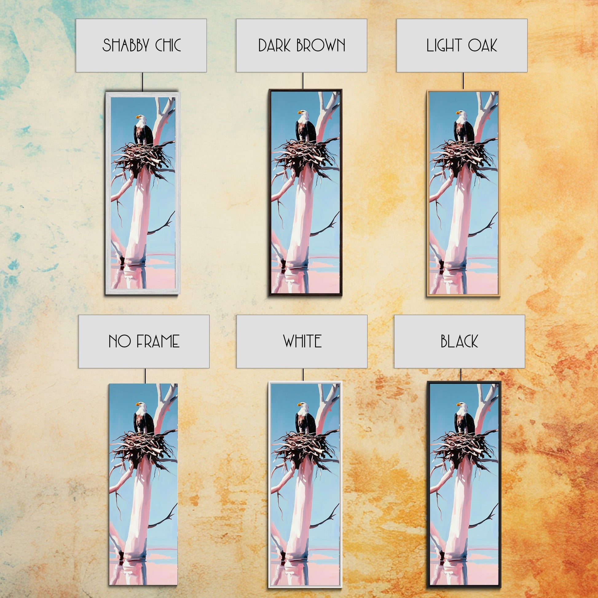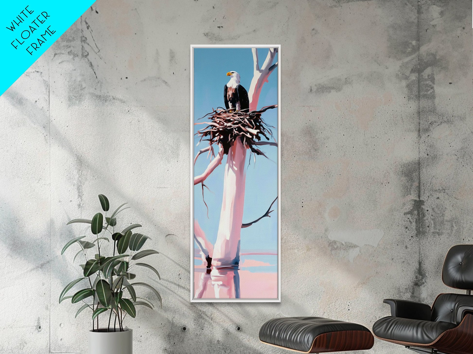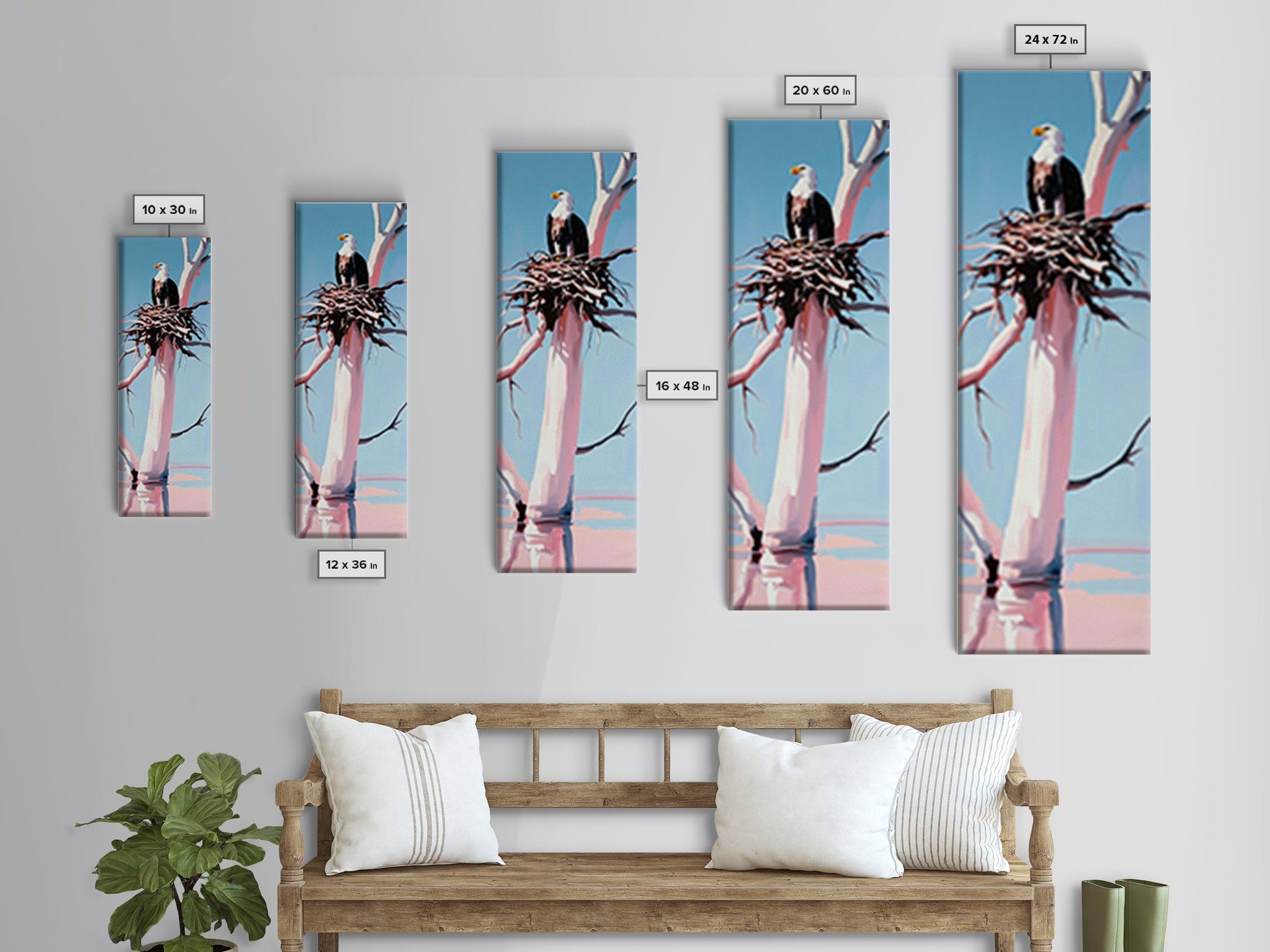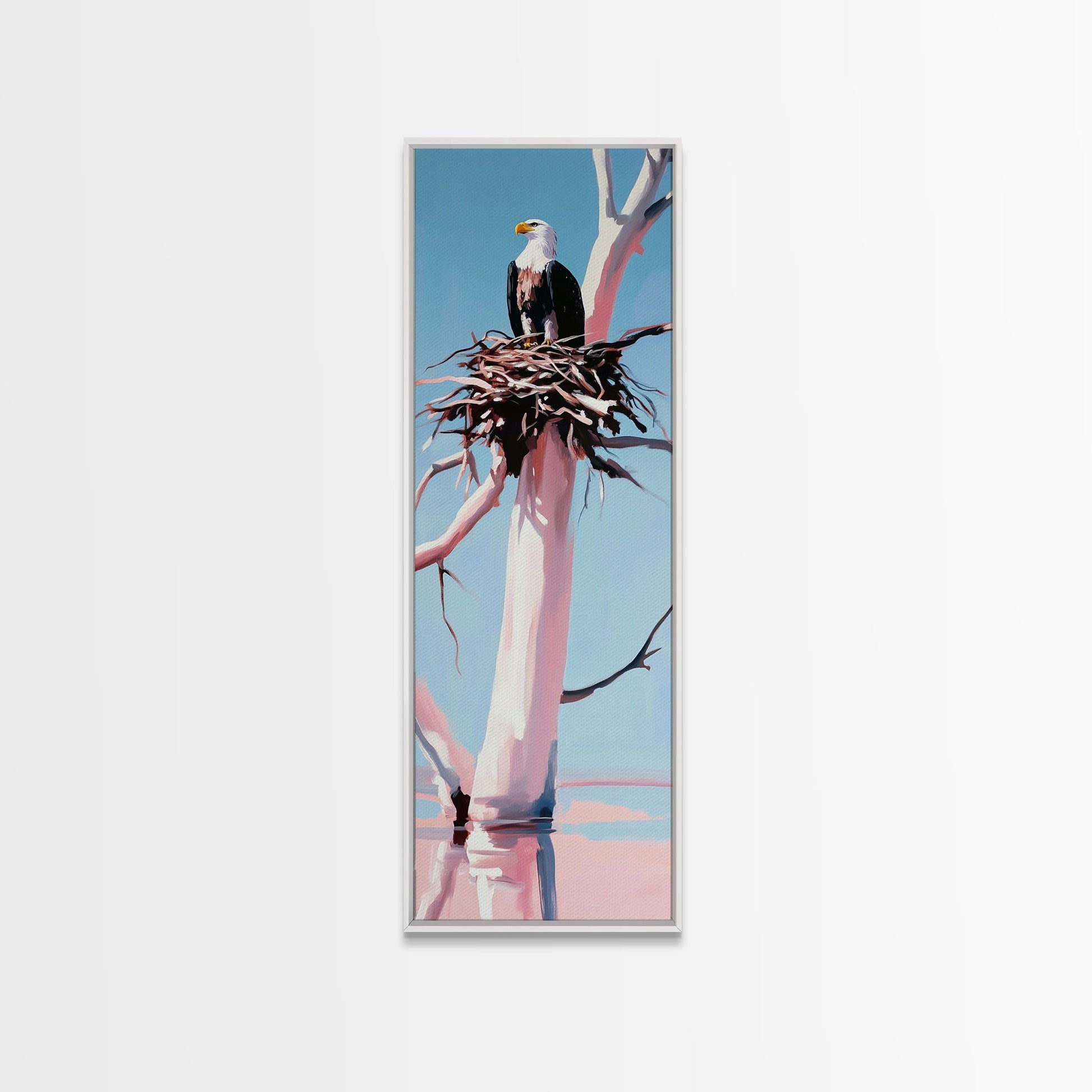 Majestic Eagle Nest, Framed Canvas Print, wildlife art, bird art, rustic wall art, pine tree art, tall narrow art, farmhouse décor, gift idea