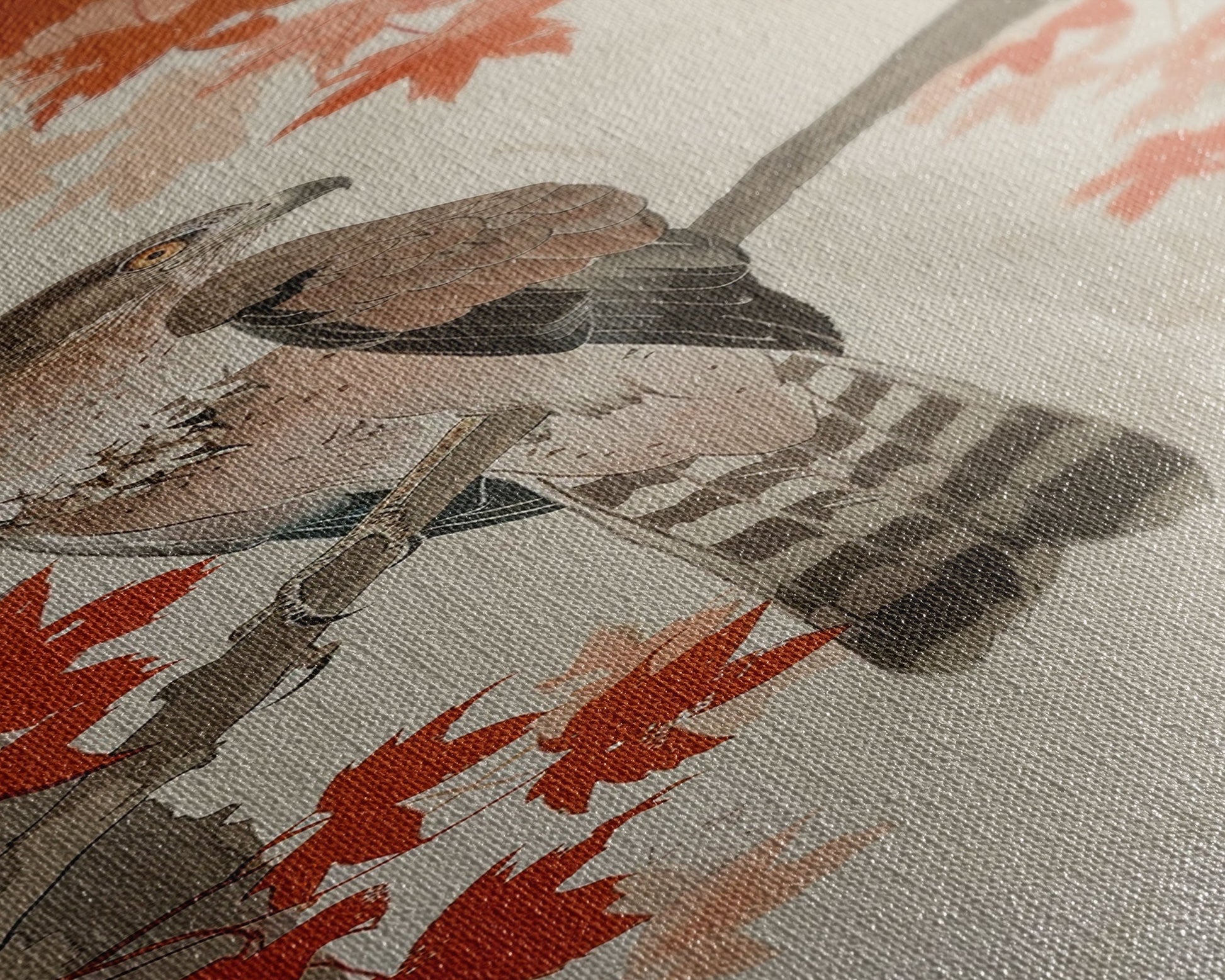 Majestic Hawk Perched Among Autumn Leaves, Framed Canvas Print In Skinny Tall Style, Japanese Style Art For Feng Shui Wall Art