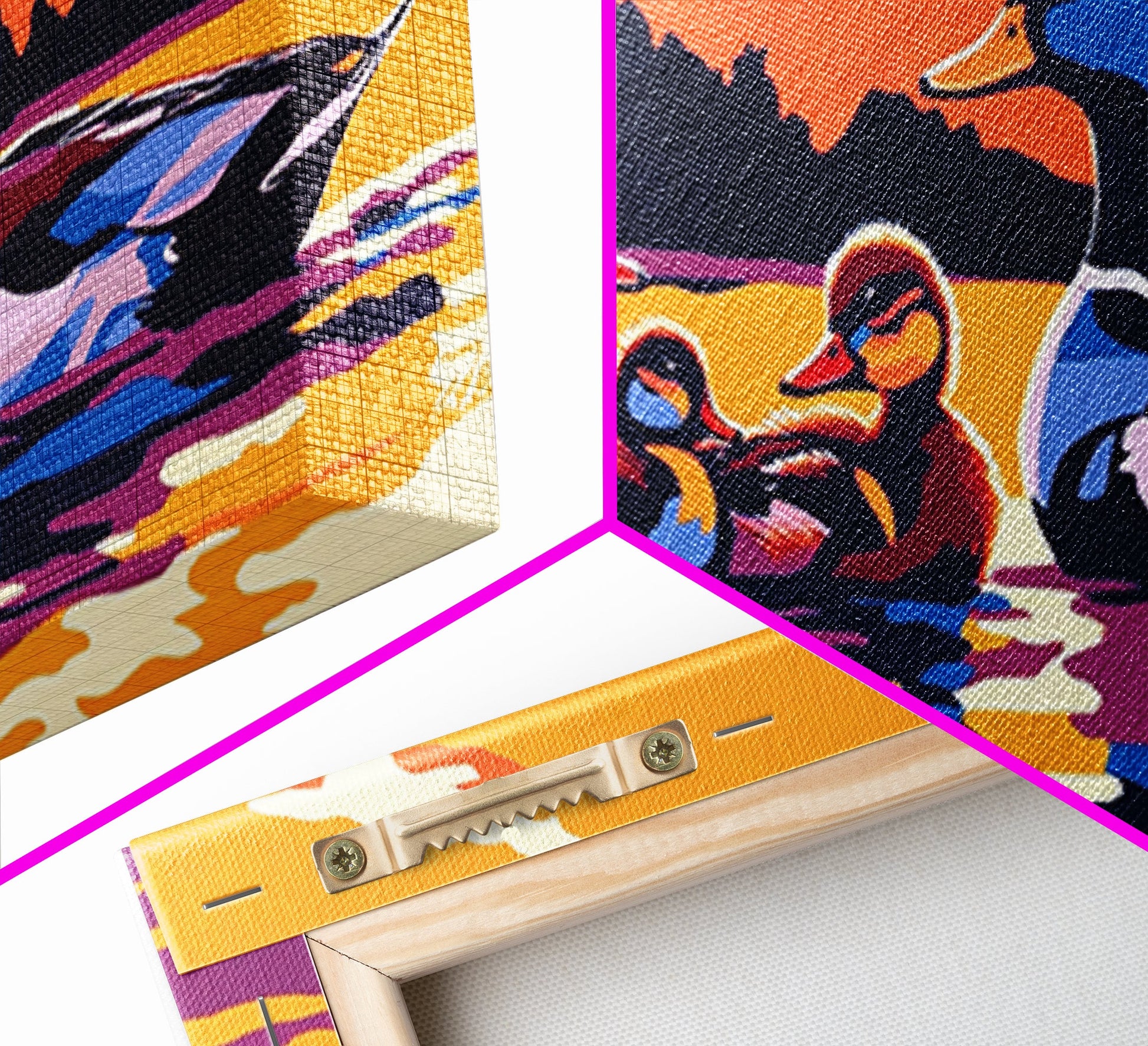 Hello and thank you for taking the time to view our modern high quality giclée artwork! We offer both posters and stretched canvas prints. Our posters are printed on Ultra Matte 60 lb / 230 GSM high quality photo paper, with a thickness of 10 mil. Our canvases are printed on museum grade 350 GSM canvas material with ECO friendly archival grade ink, then hand stretched and stapled over premium, FSC certified and shrink resistant frames. Designed and built to last a lifetime.