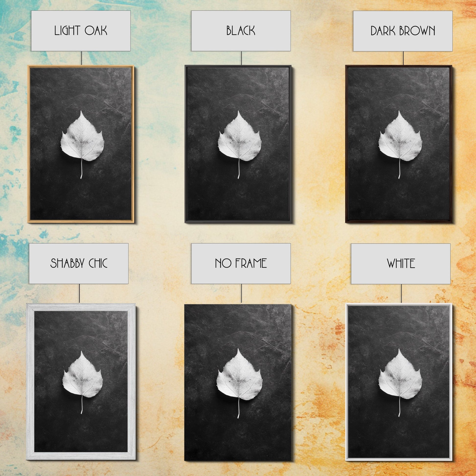 Monochrome Leaf, Nature Minimal, Still Life, Moody Art, Framed Canvas Print, Fall Wall Art, Kitchen Decor, Neutral Modern Aesthetic
