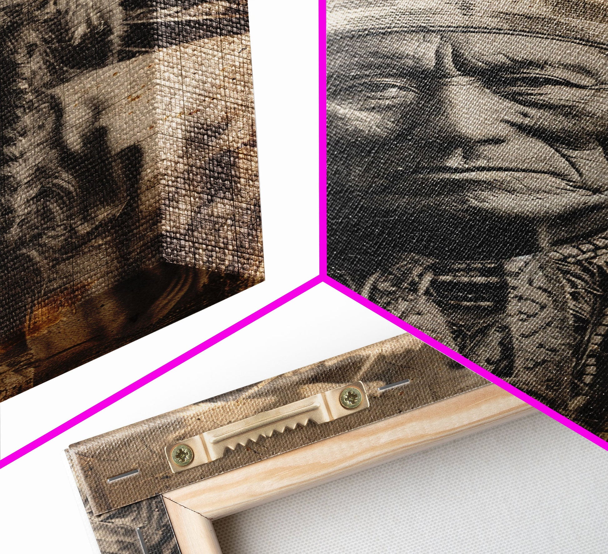 Native American Chief Portrait - Sepia Canvas Print, Historical Wall Art, Indigenous Art for Home, Rustic Native American Decor