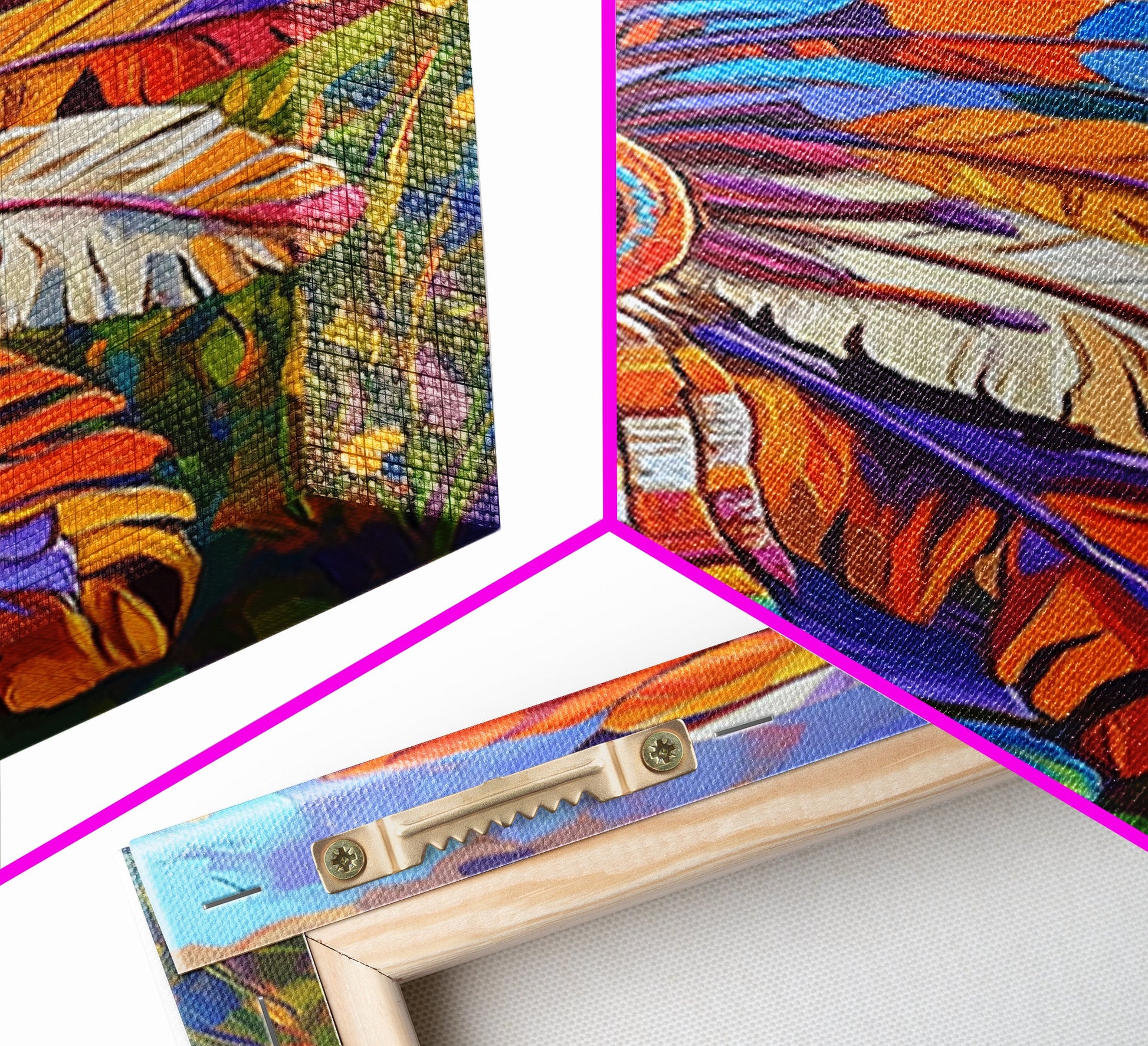*Optional frames add a total of 1.5 inches to each dimension, for example a 10x20 canvas with a frame will be 11.5 by 21.5 inches total. All framed canvas are 1.5" total depth.