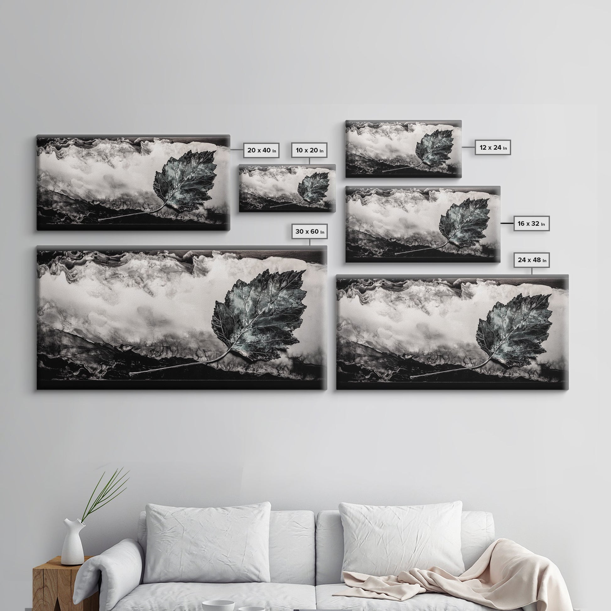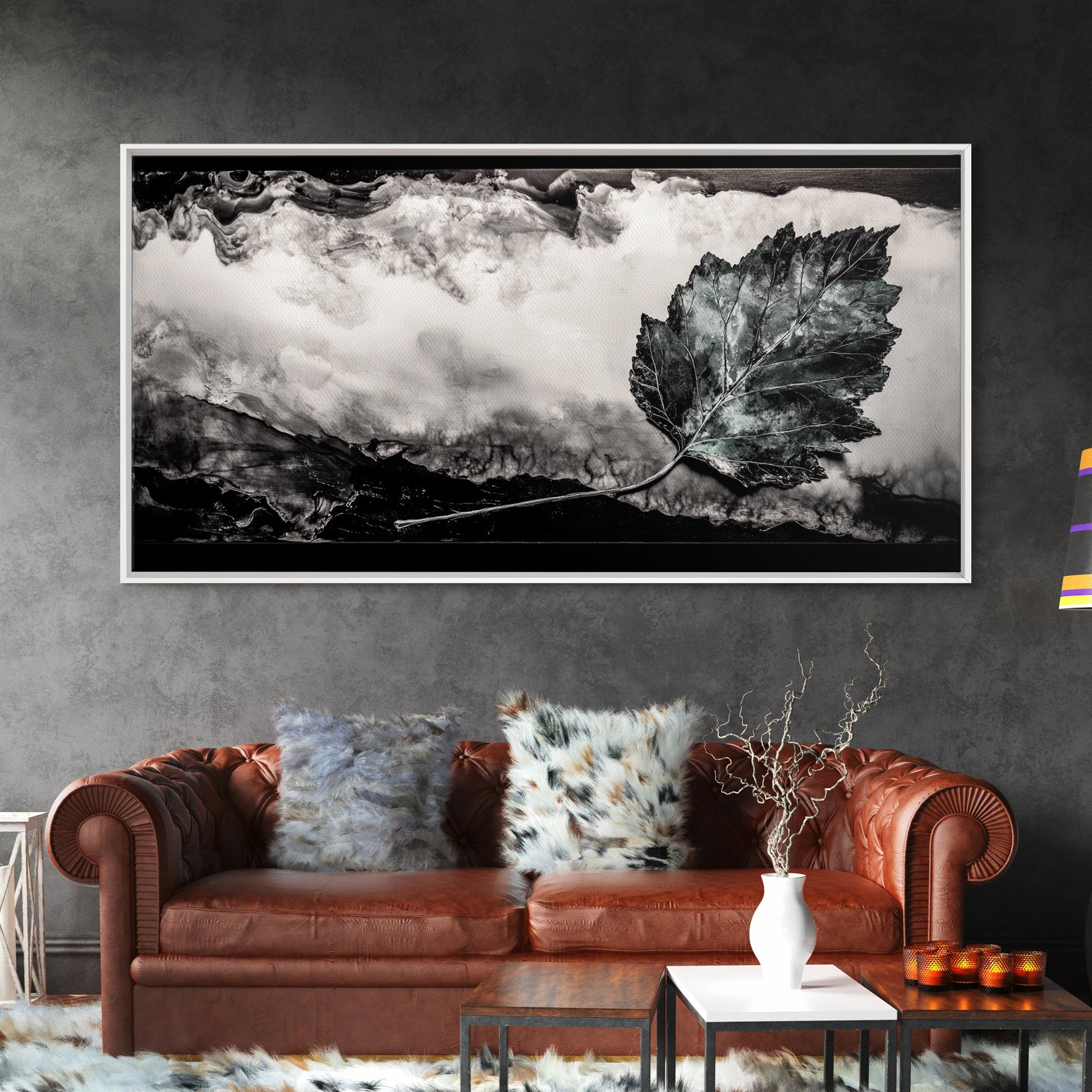 Nature Leaf Art, Monochrome Painting, Abstract Botanical Prints, Black and White Art, Modern Wall Decor, Framed Canvas Print, Rustic Art