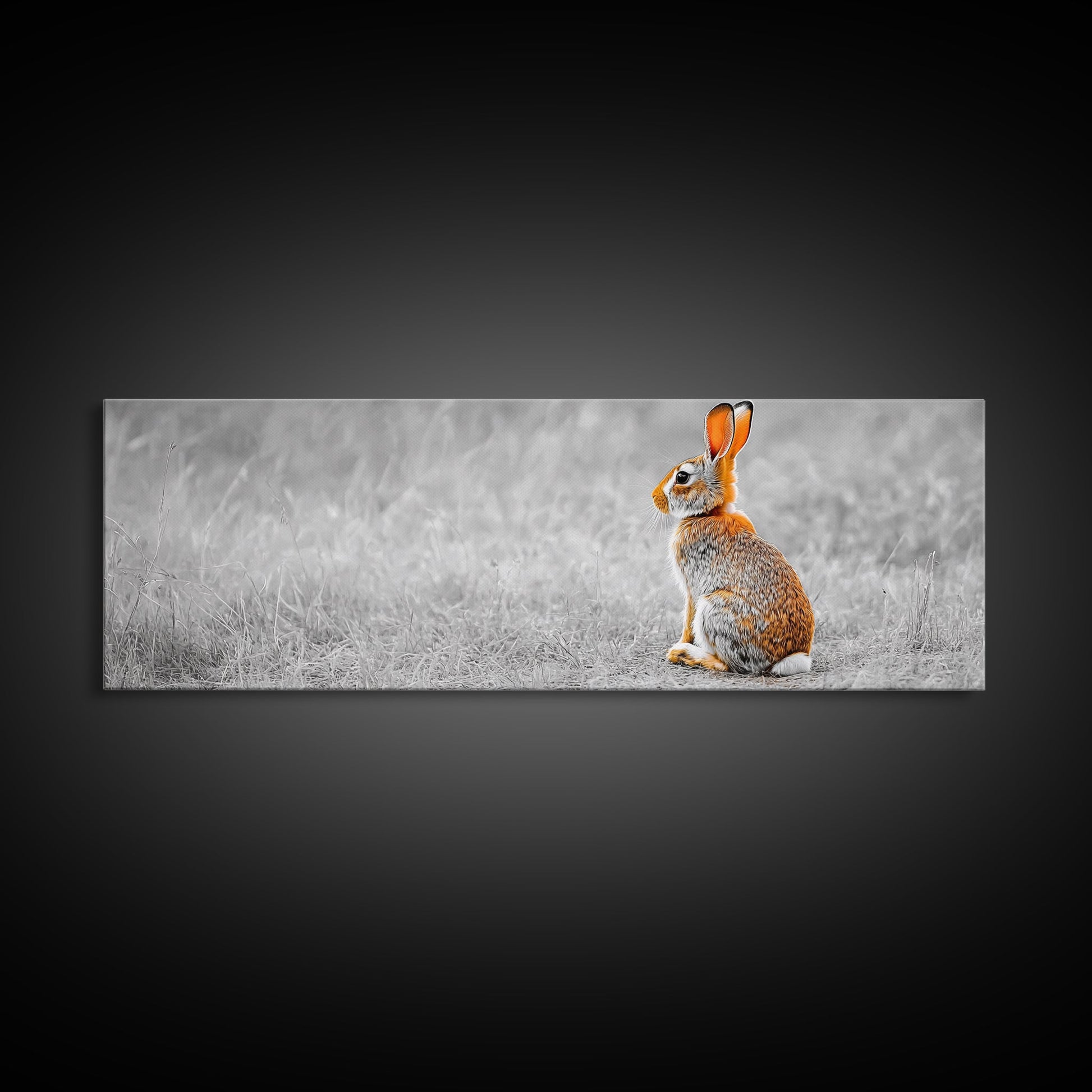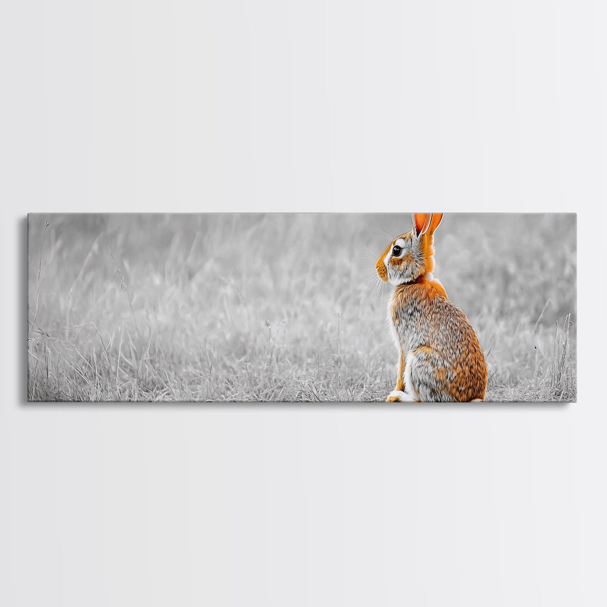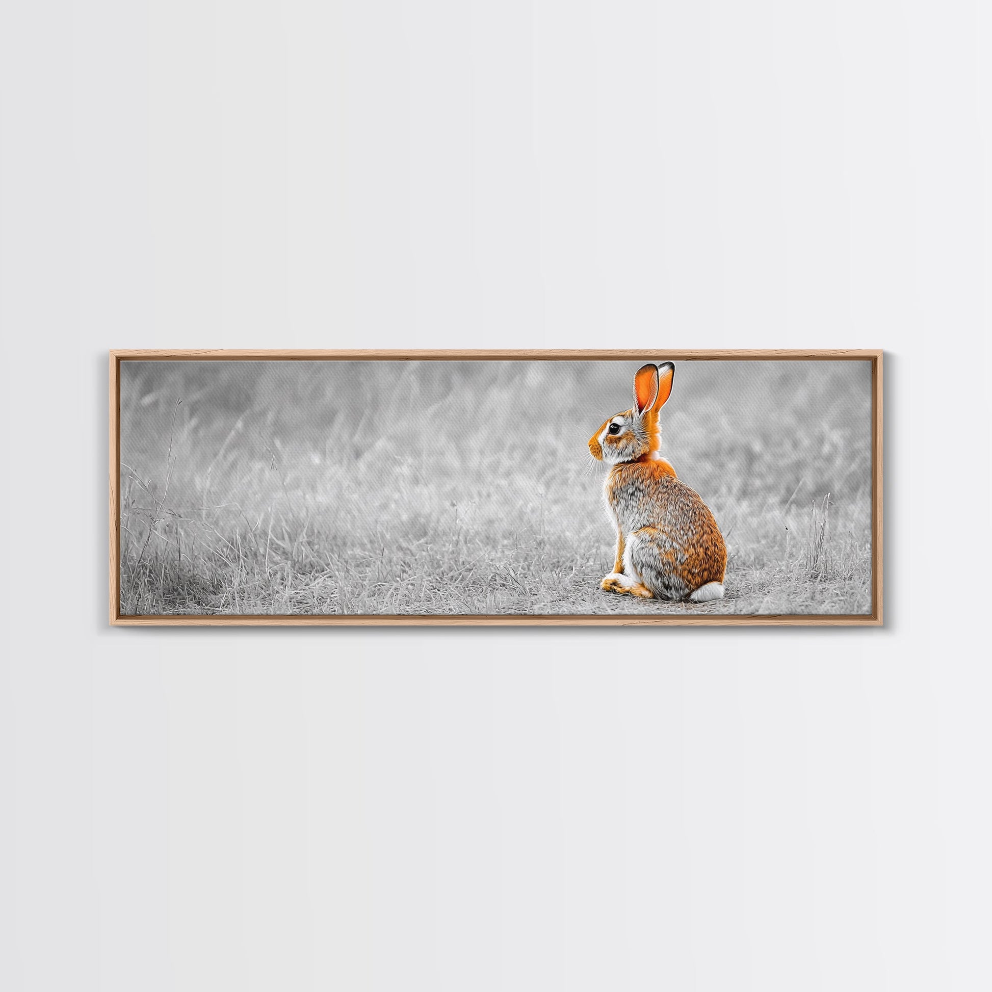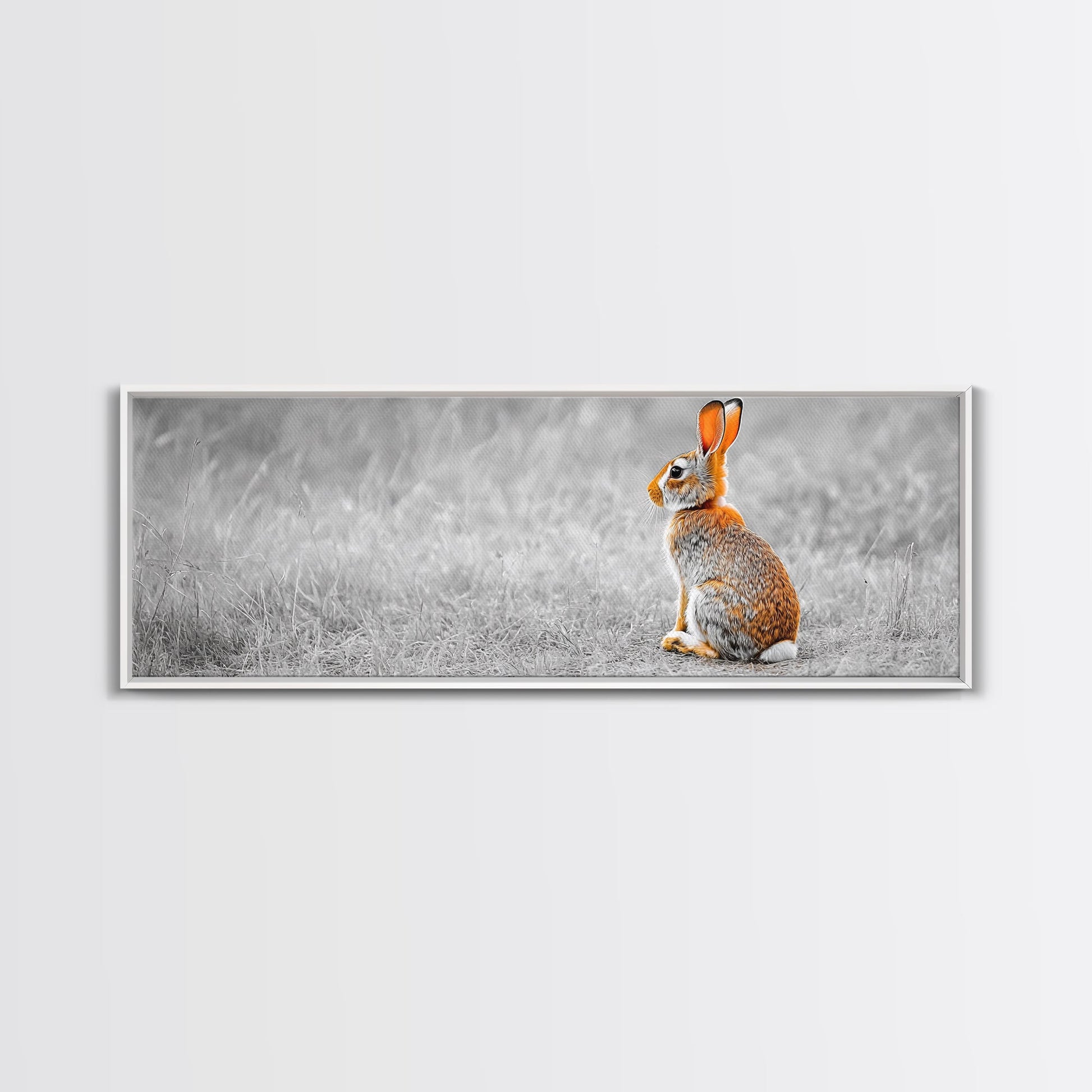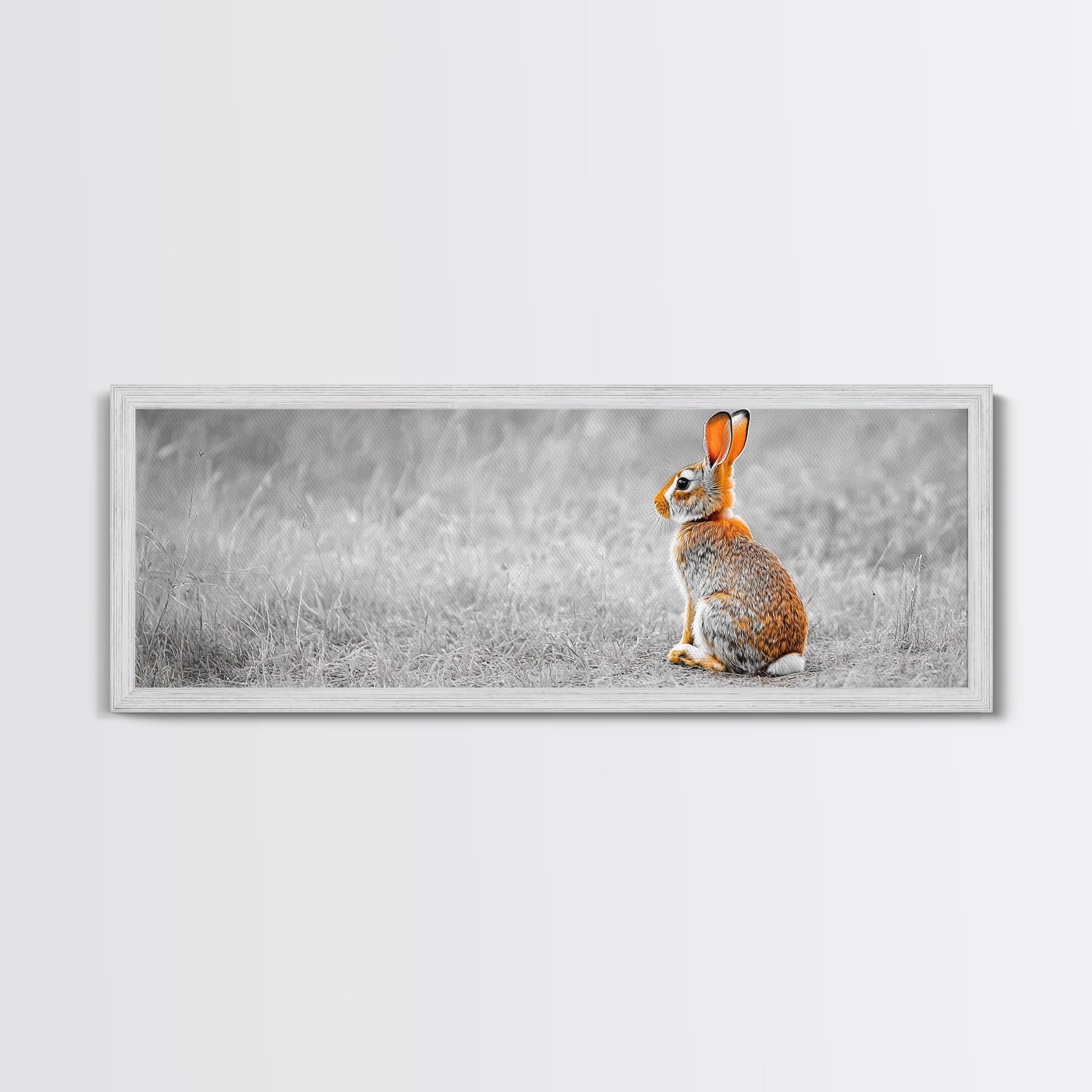 Orange Rabbit, Grass Field, Whimsical Nature, Framed Canvas Print, kids room wall art, nursery animal print, neutral nursery, woodland boho